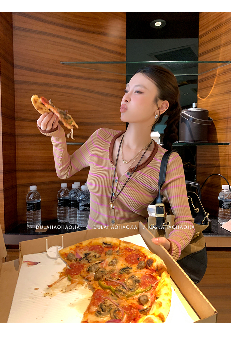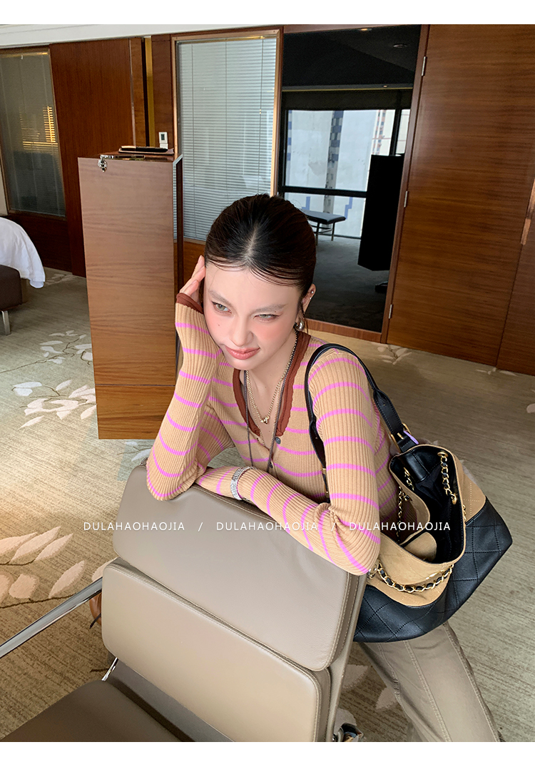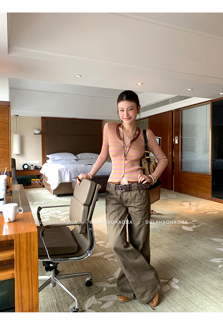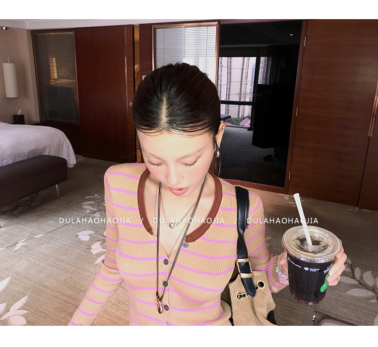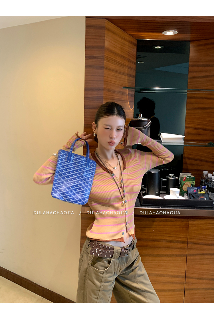 DULA Weaving Color Stripe Long-Sleeve Knit Cardigan