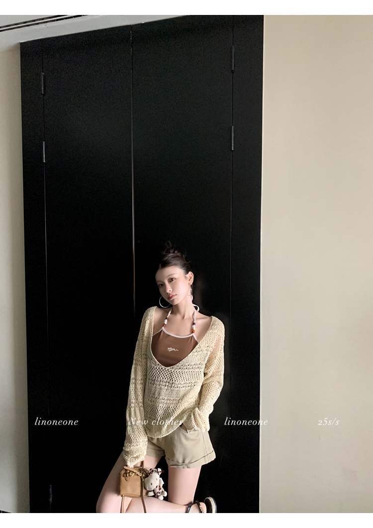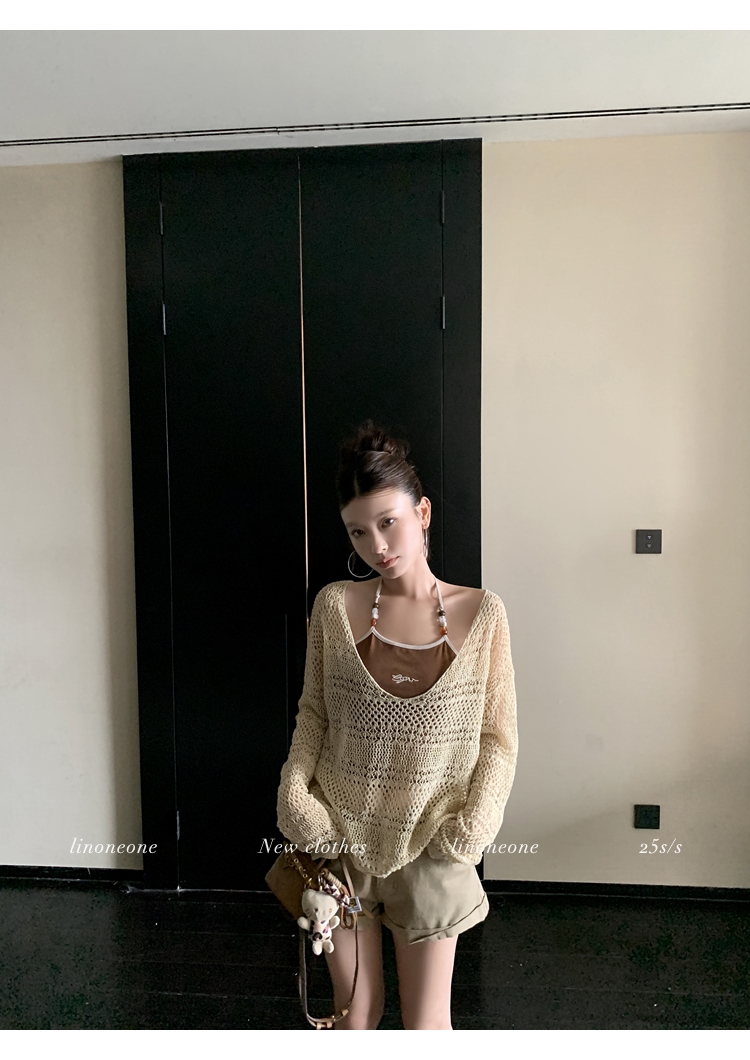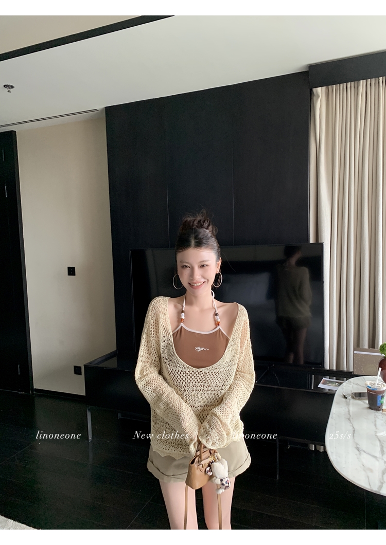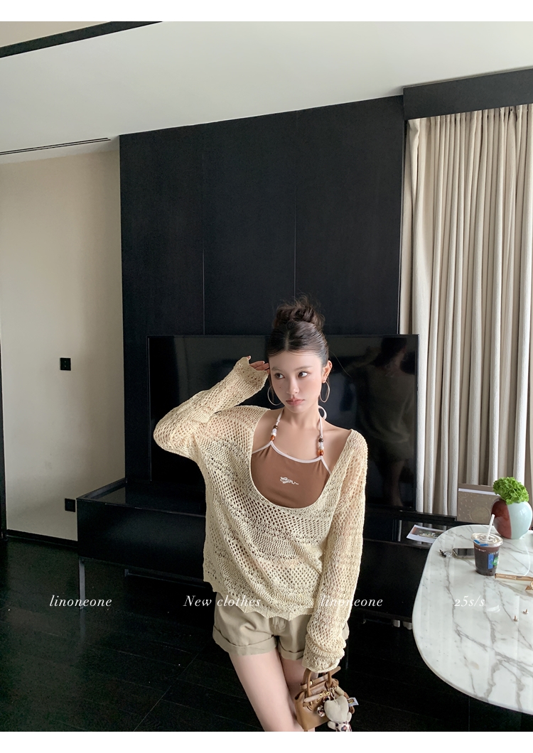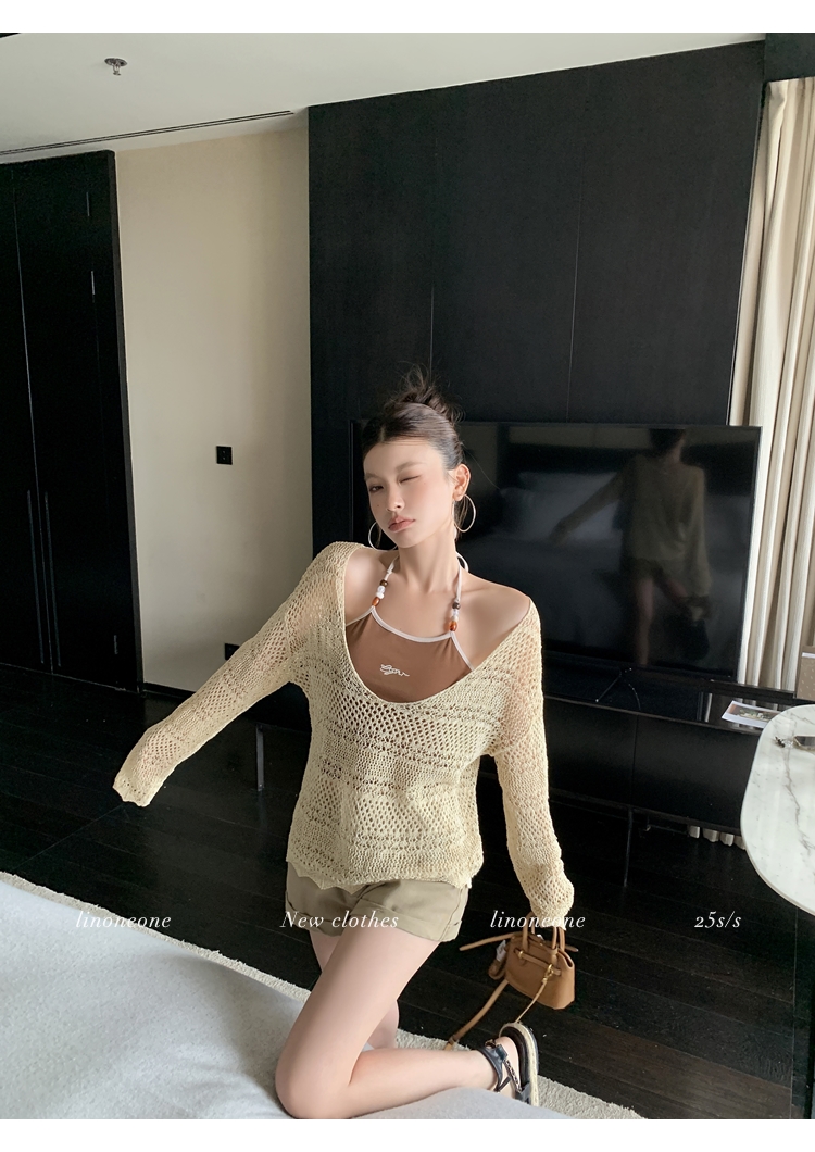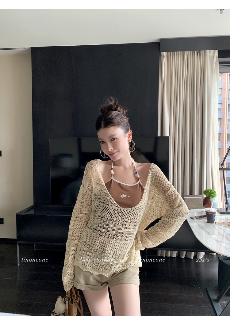 LIN Music Festival Lazy Khaki Long Sleeve Sunscreen Knitted Sweater
