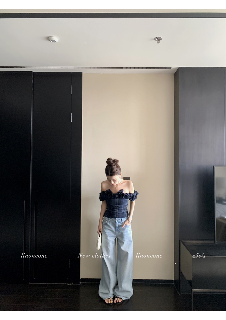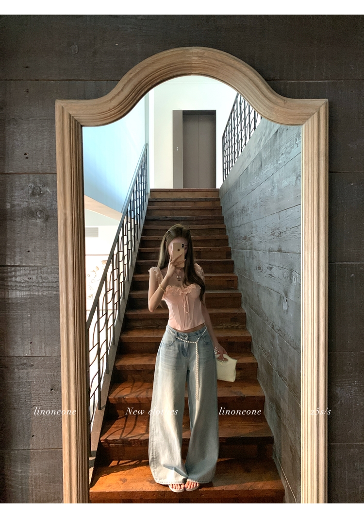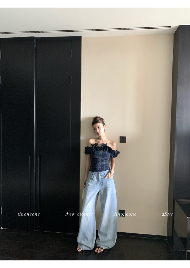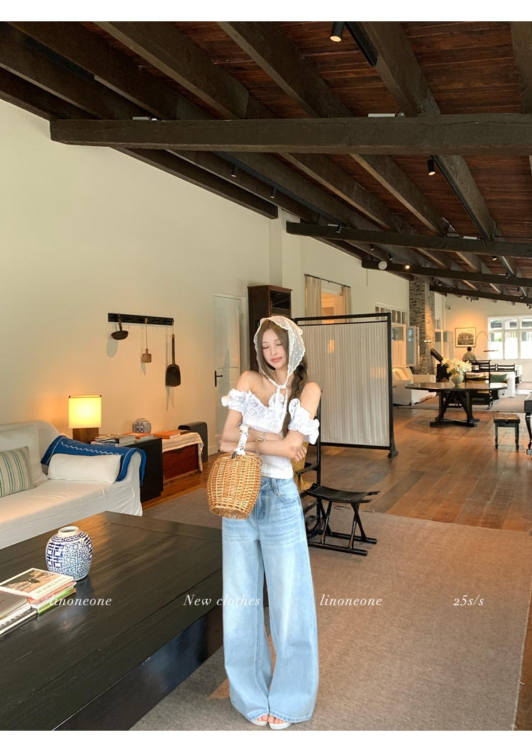 LIN All-match Light Washed Blue Denim Wide-leg Pants