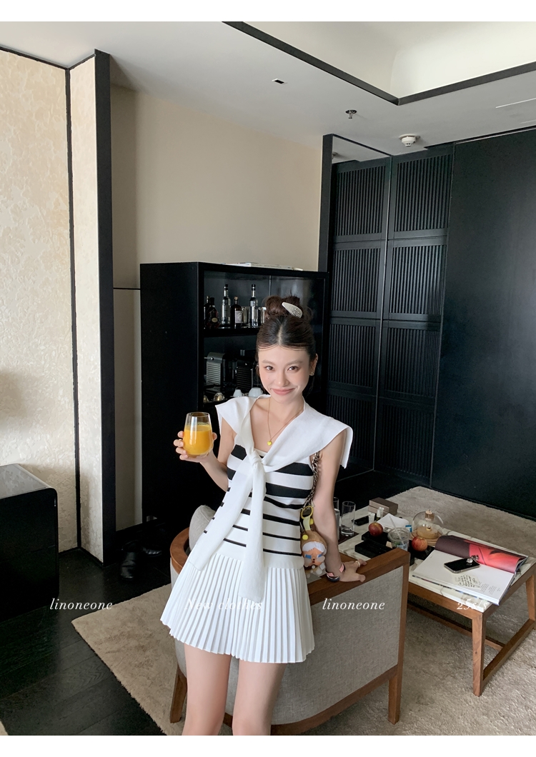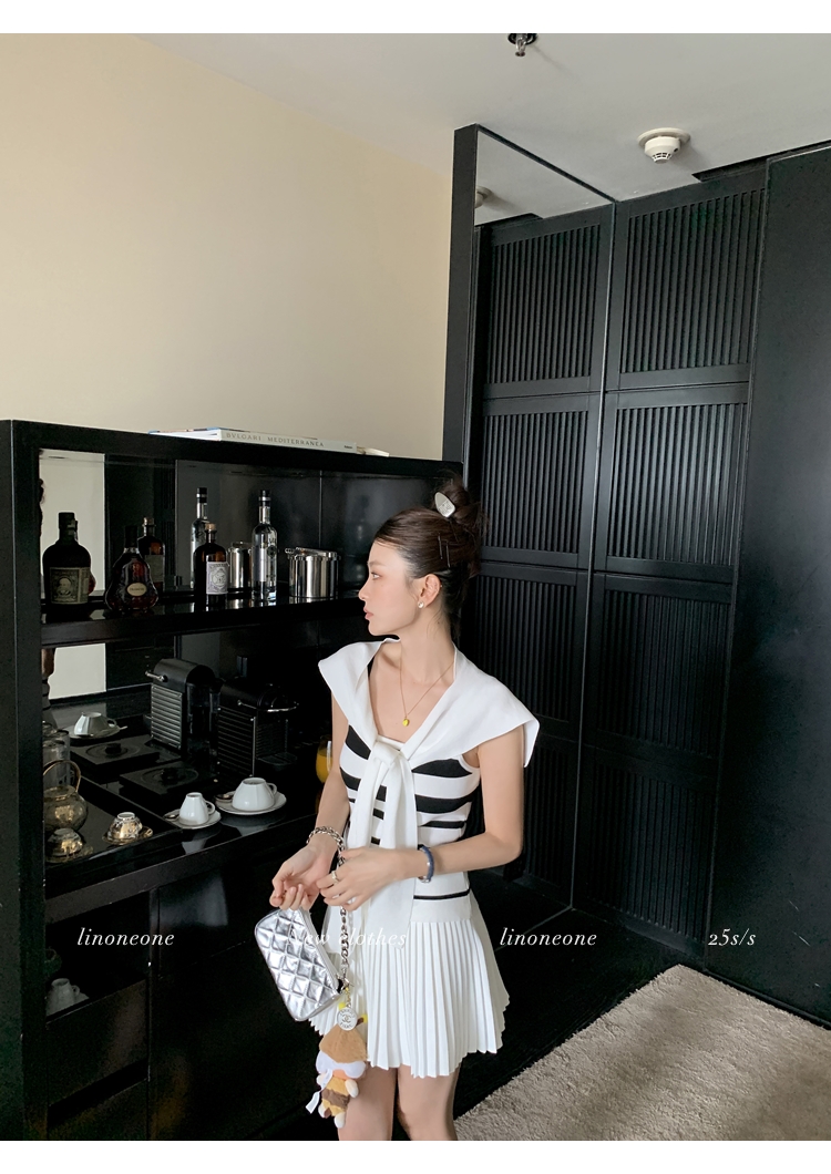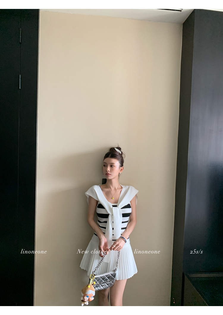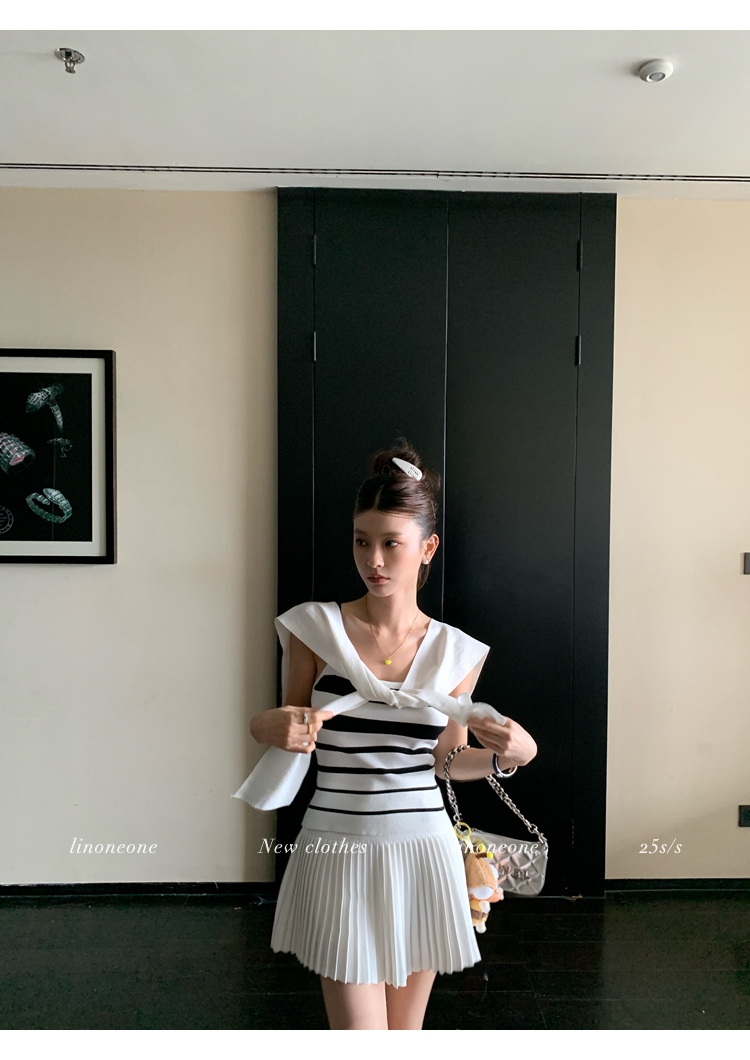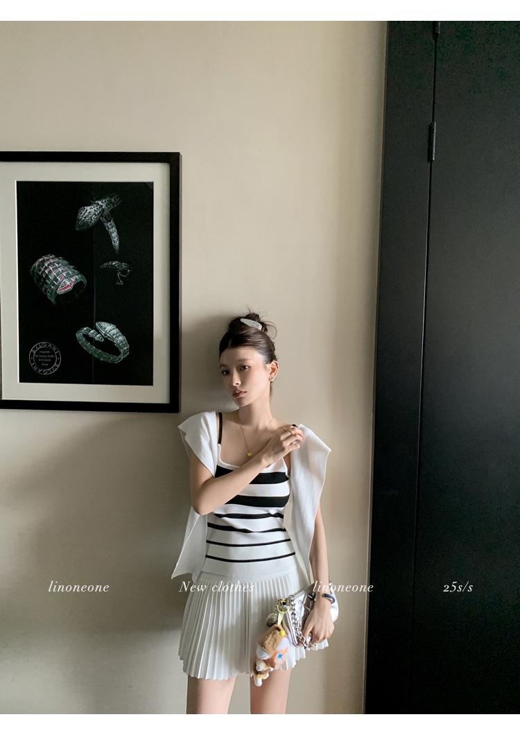 LIN casual white stretch sports pleated mini skirt