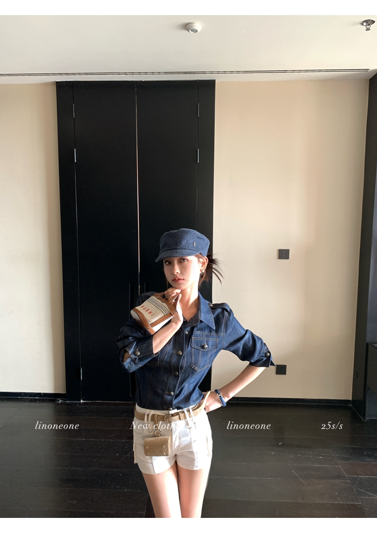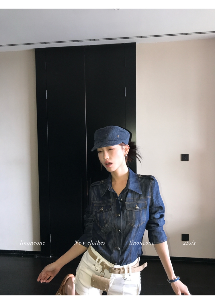 LIN vintage slim-fit lyocell linen denim shirt jacket
