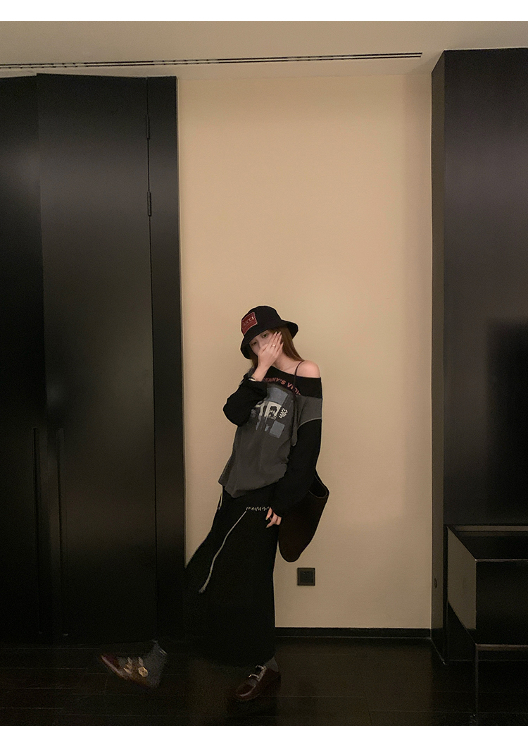 RZZ Line Dark Decomposed Soft Denim Midi Skirt
