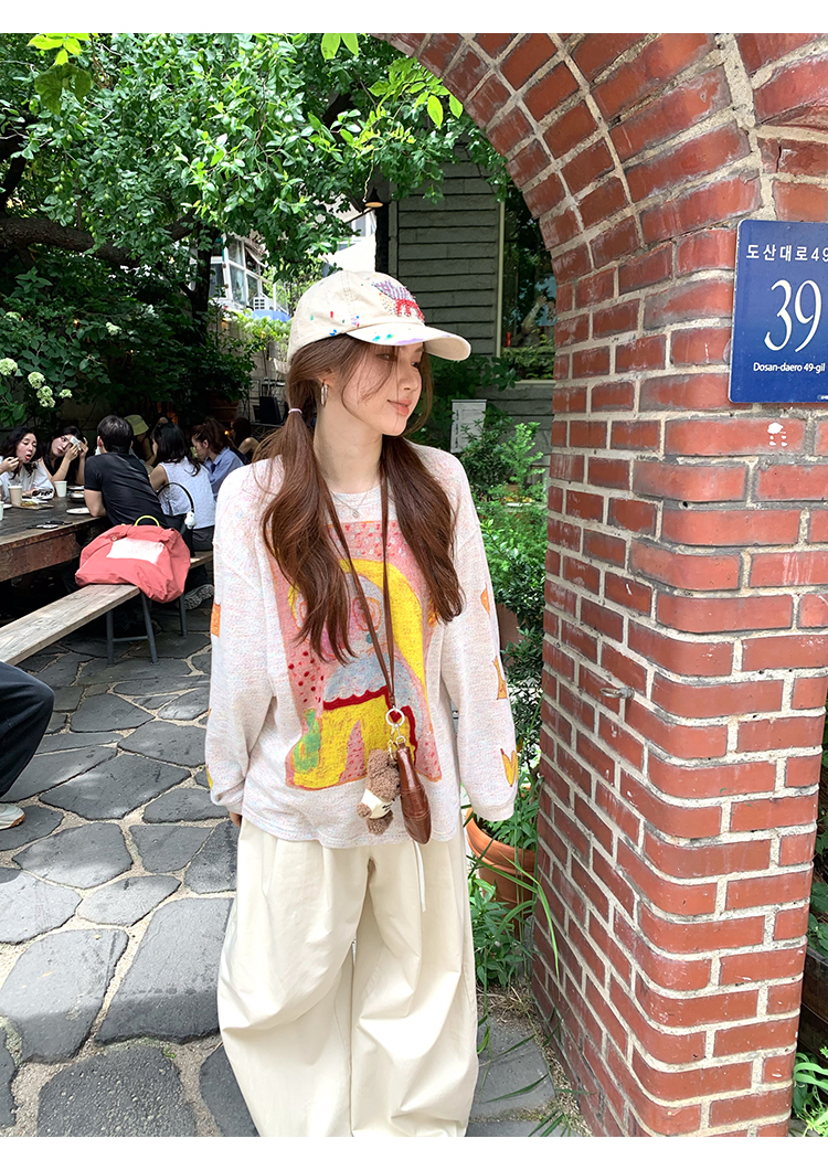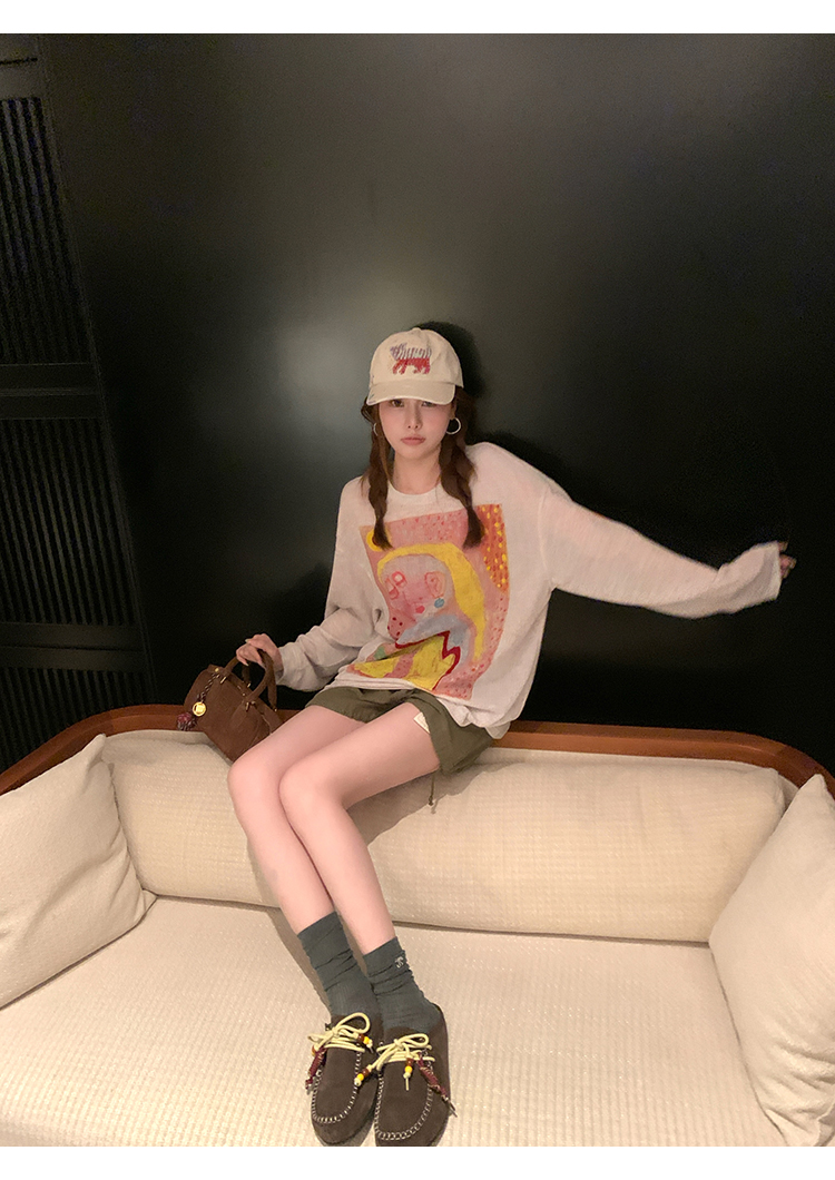 RZZ Floral Relaxed Retro Comfort Printed Sunscreen Long-Sleeve T-Shirt
