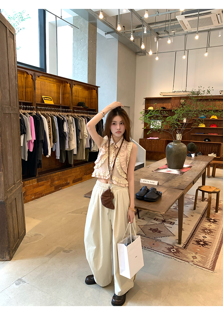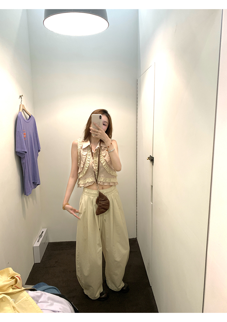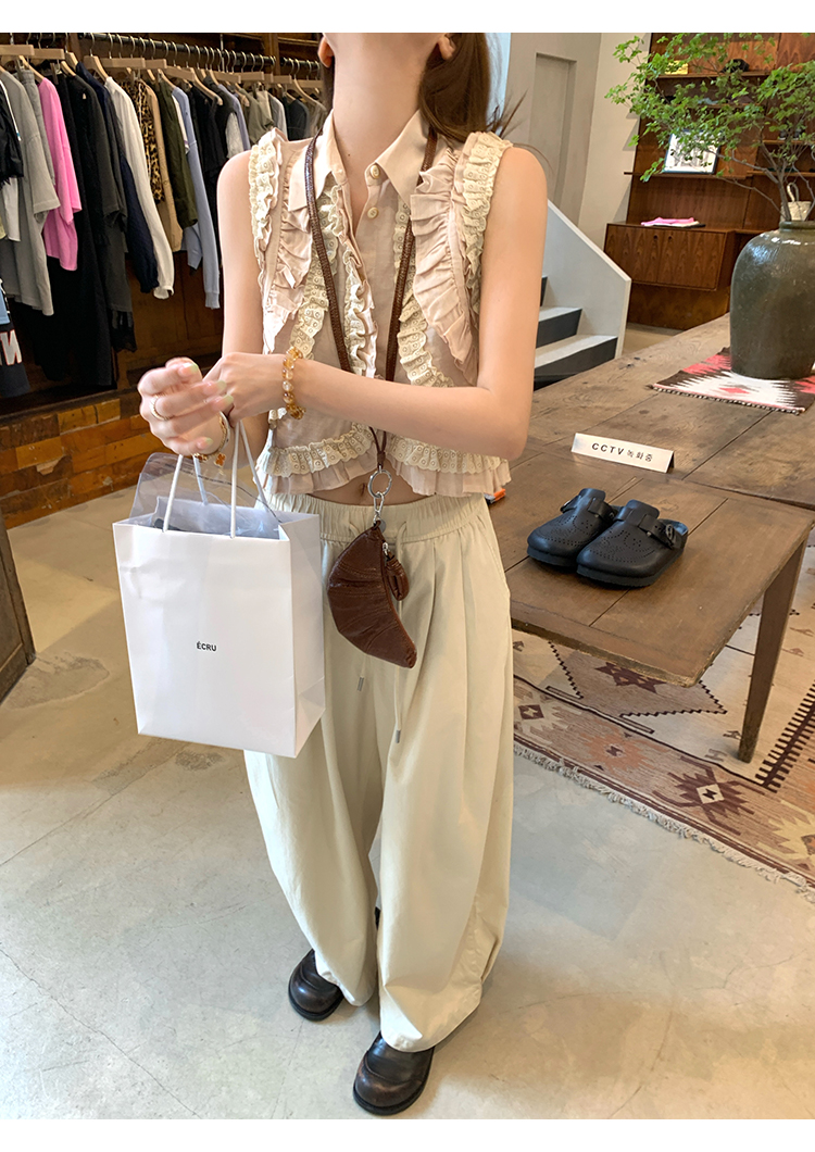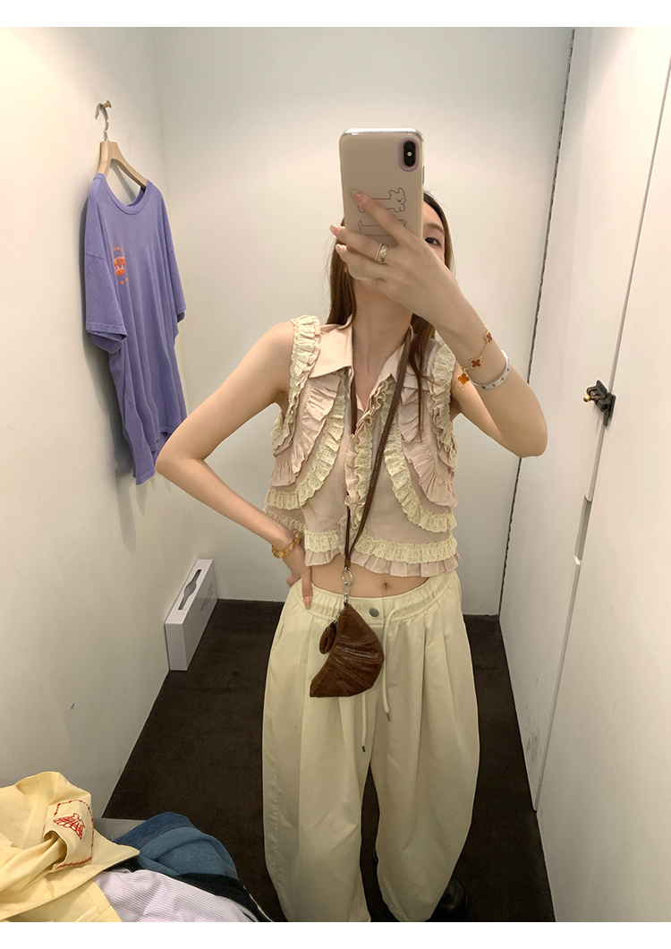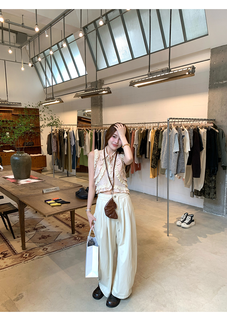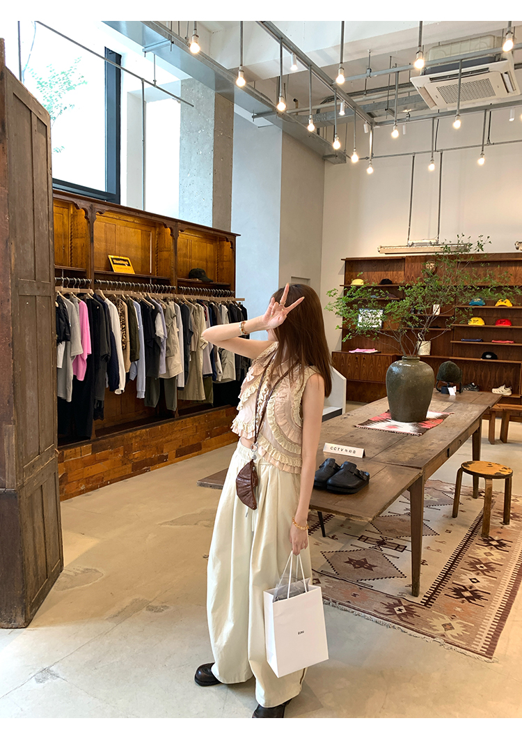RZZ Acetic Acid Flax Elegant Floral Sleeveless Top