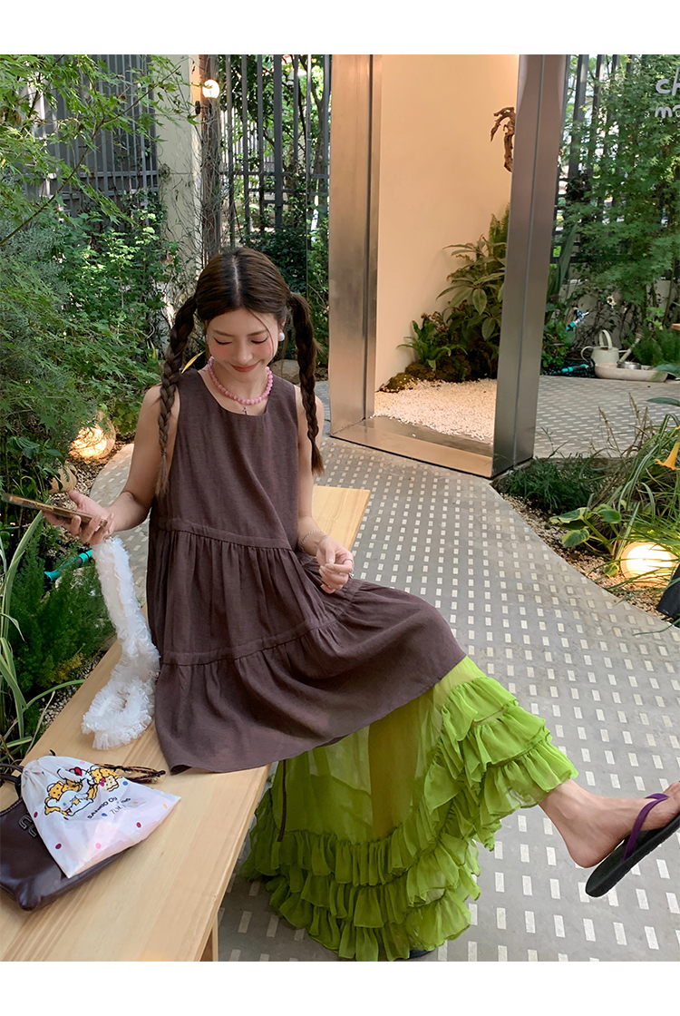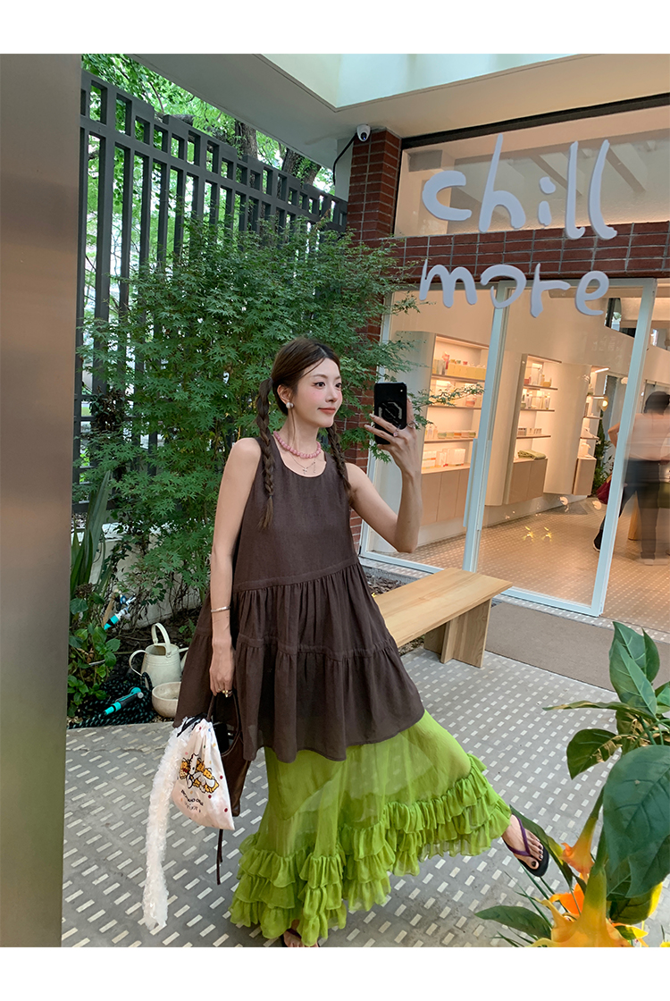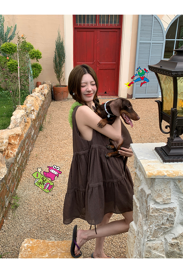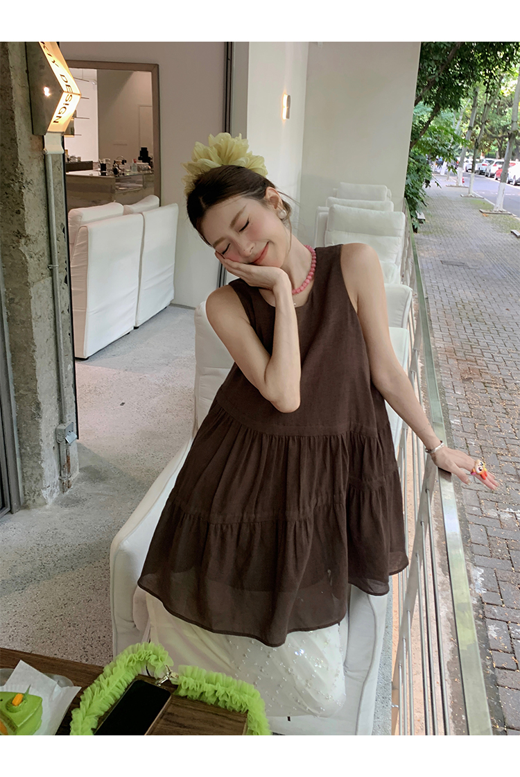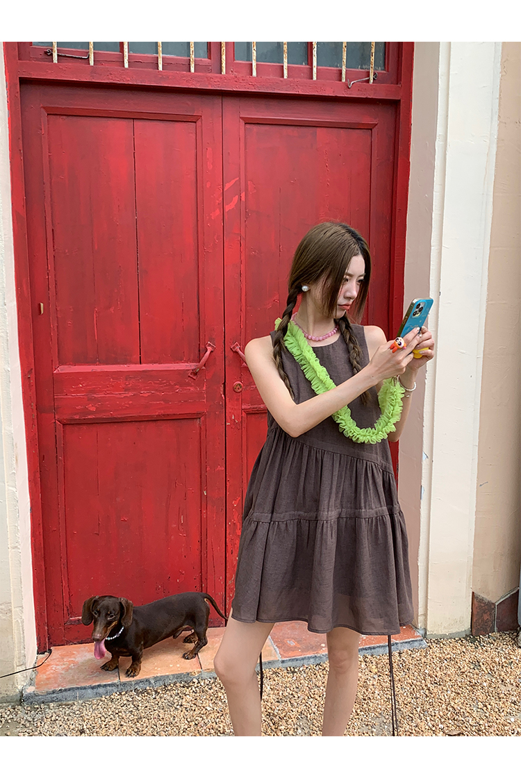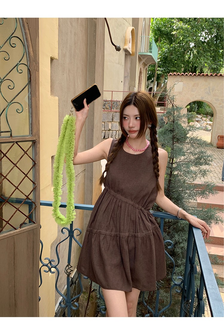 BUKU coffee-colored sleeveless drawstring vest dress