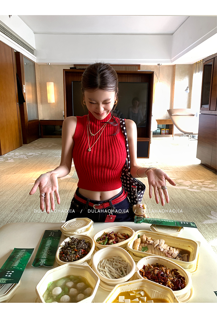 DULA Hong Kong Style Hottie Turtleneck Sleeveless Knitted Sweater Top