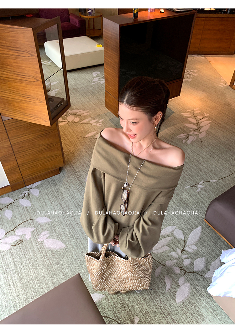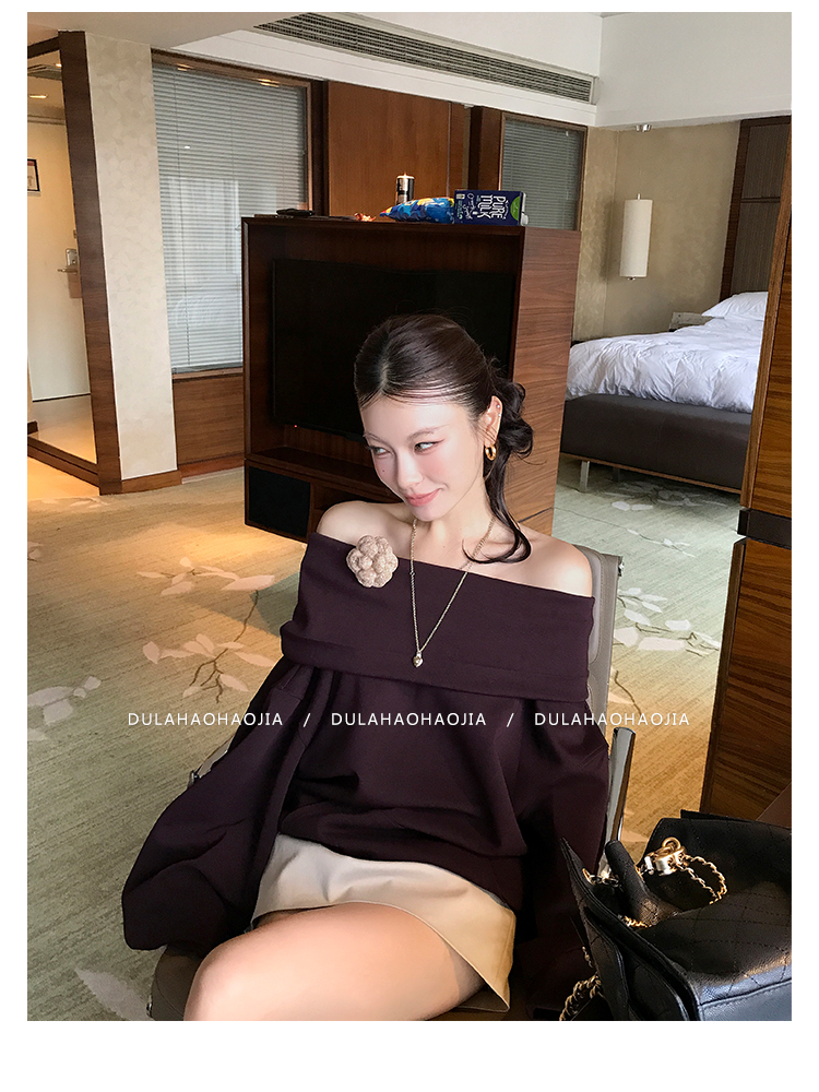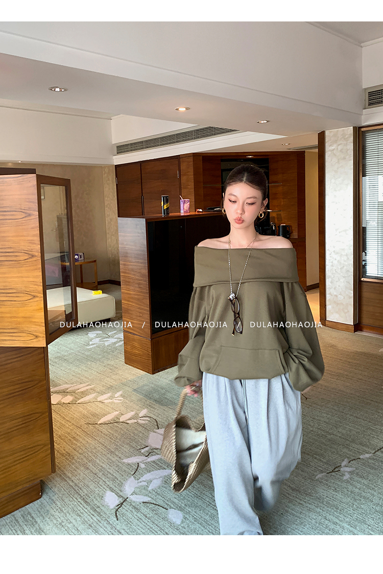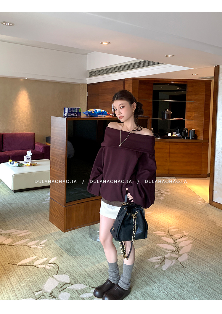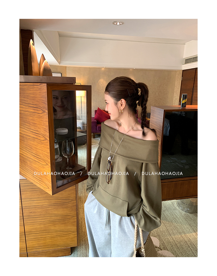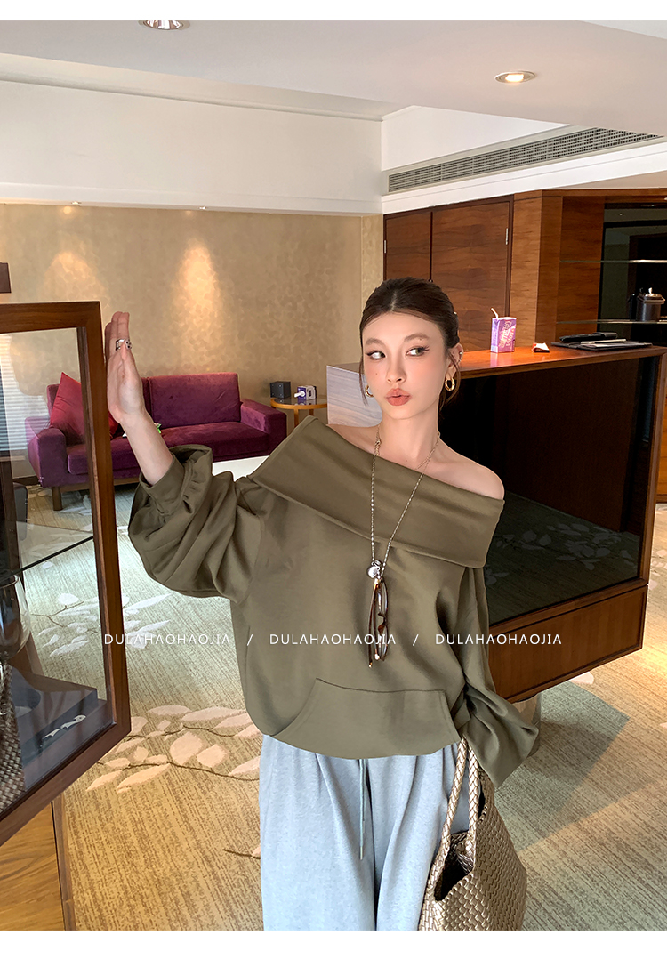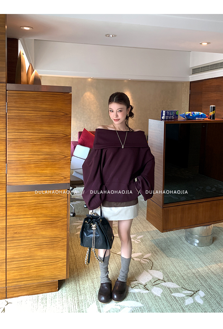 DULA Perris Afternoon Lazy Loose Lapel One-Shoulder Sweatshirt
