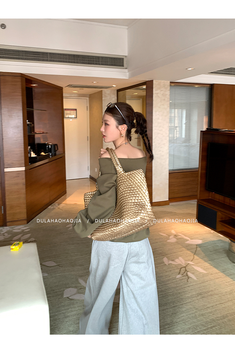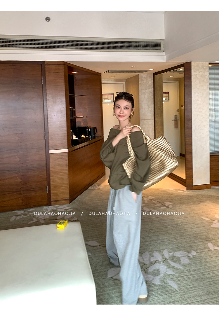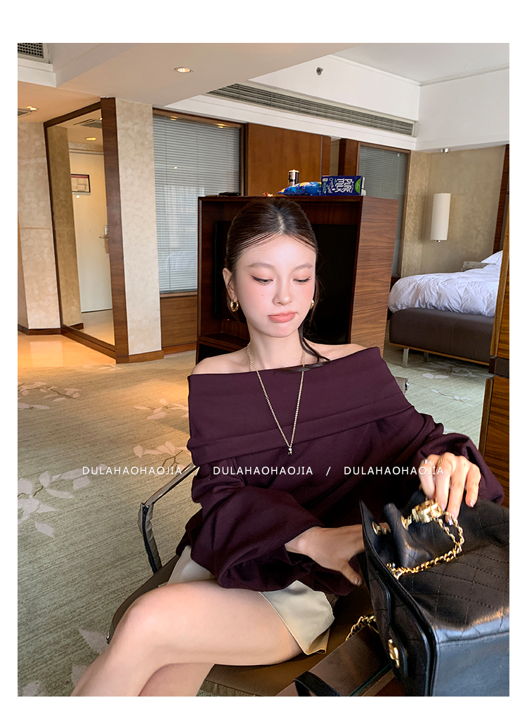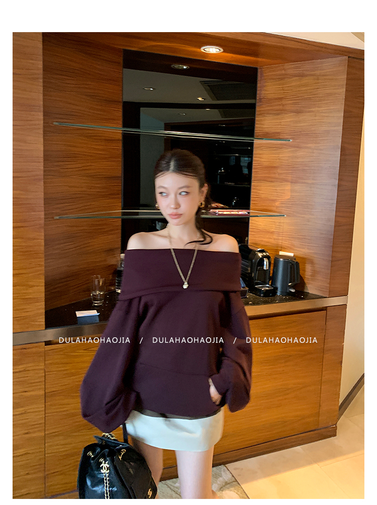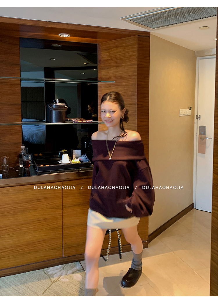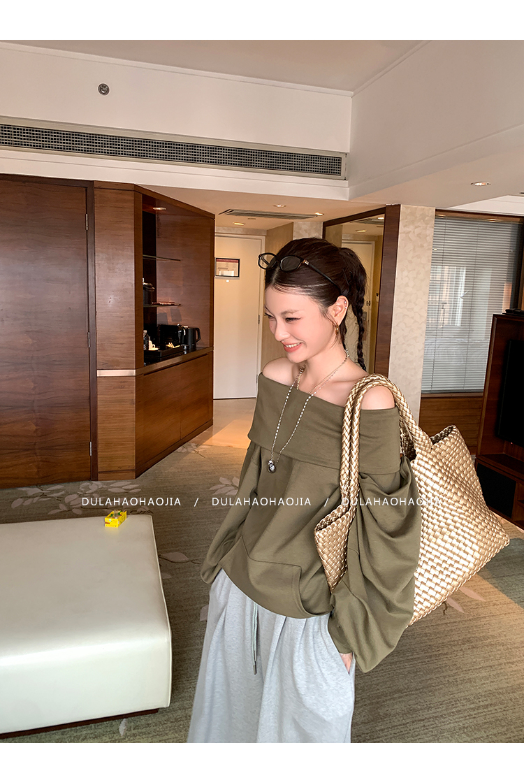 DULA Perris Afternoon Lazy Loose Lapel One-Shoulder Sweatshirt