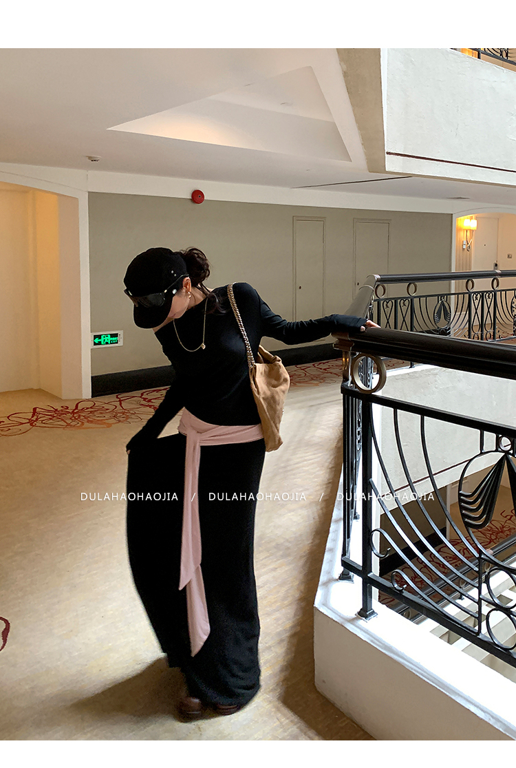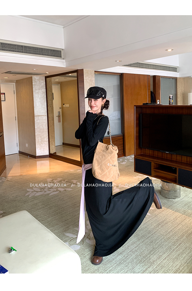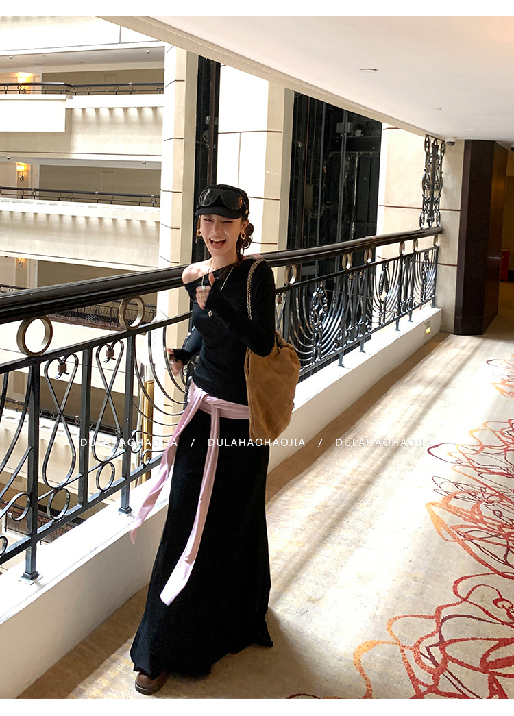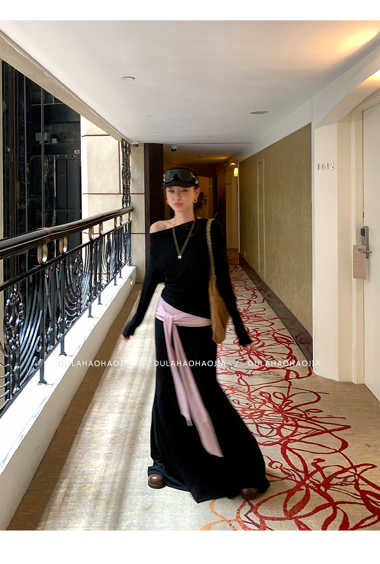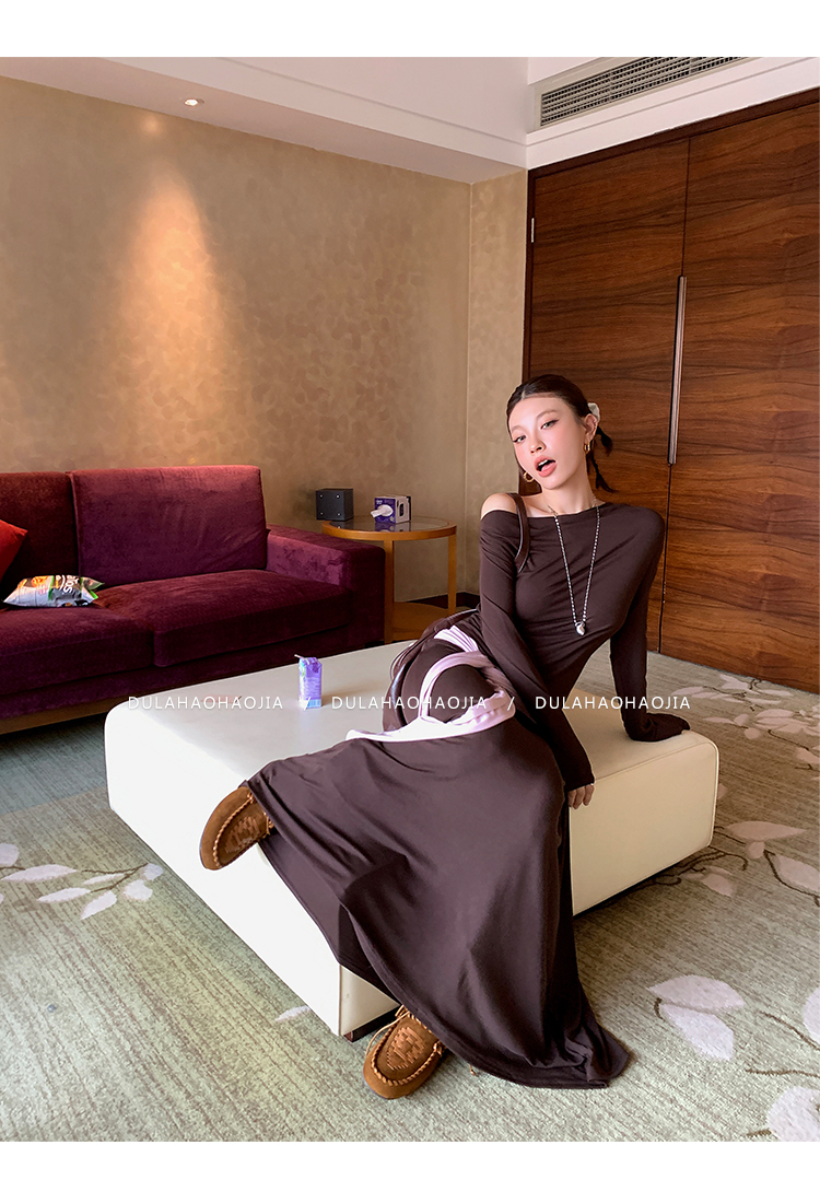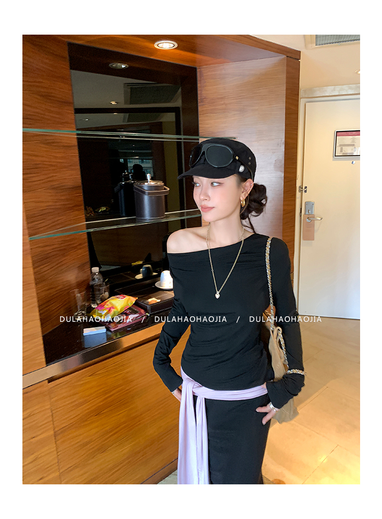 DULA Off-shoulder T-shirt + Colorblock Long Skirt Set
