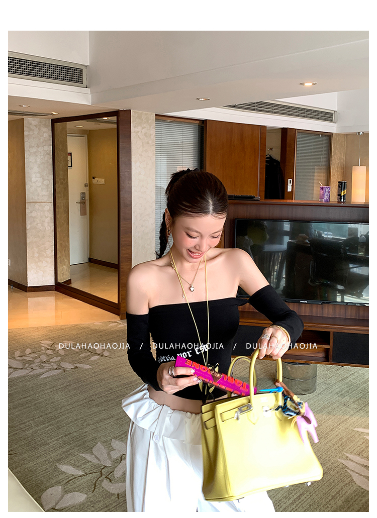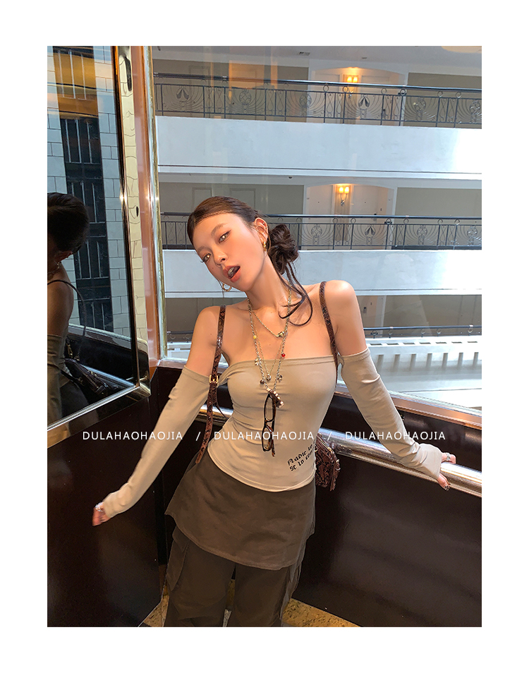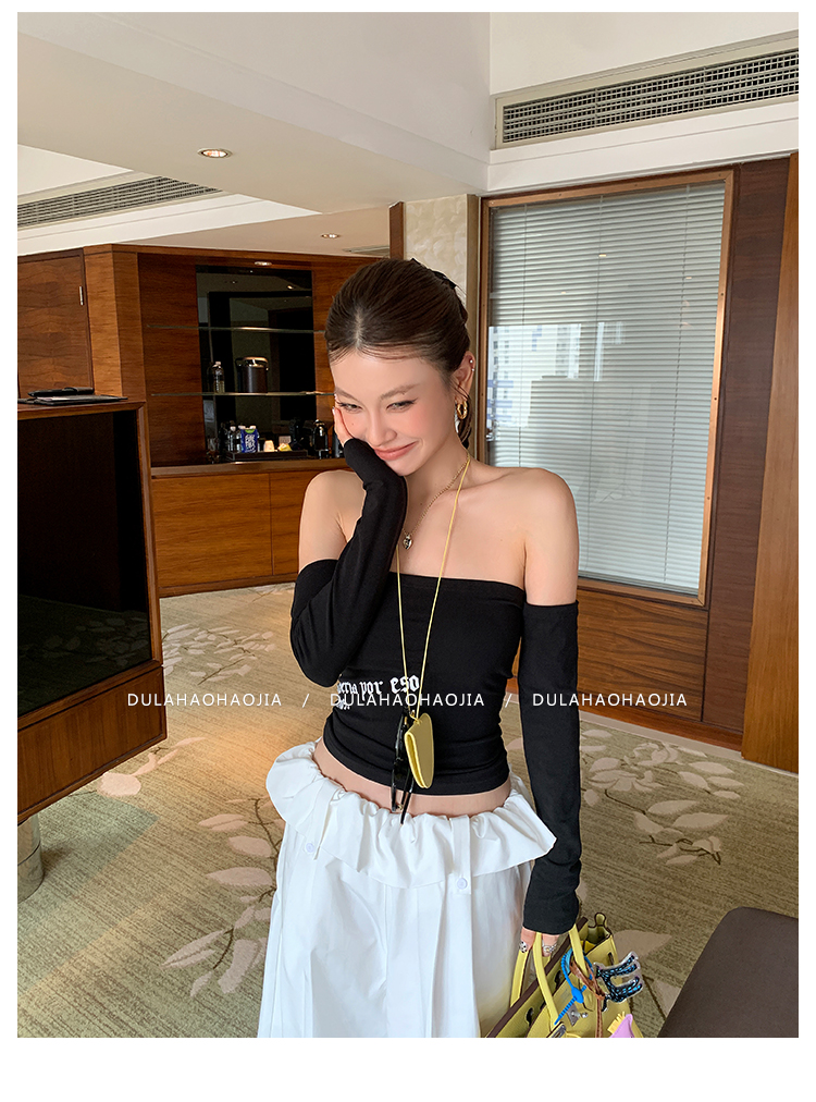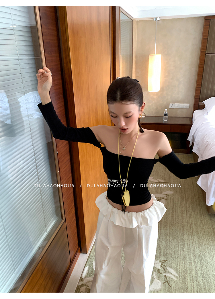 DULA District Fiona Slim One Shoulder Long Sleeve Short T-shirt