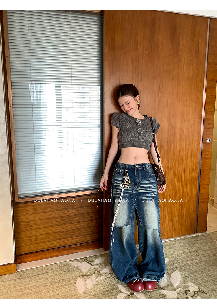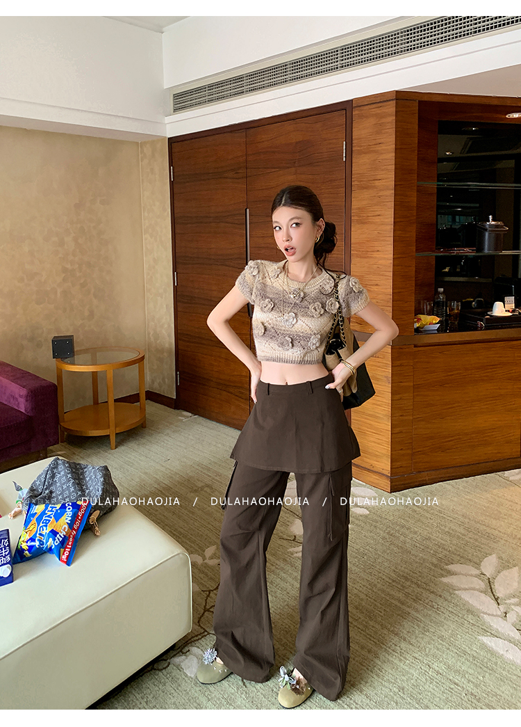 DULA Millennium Wild Rose Three-dimensional Flower Short Sleeve Top