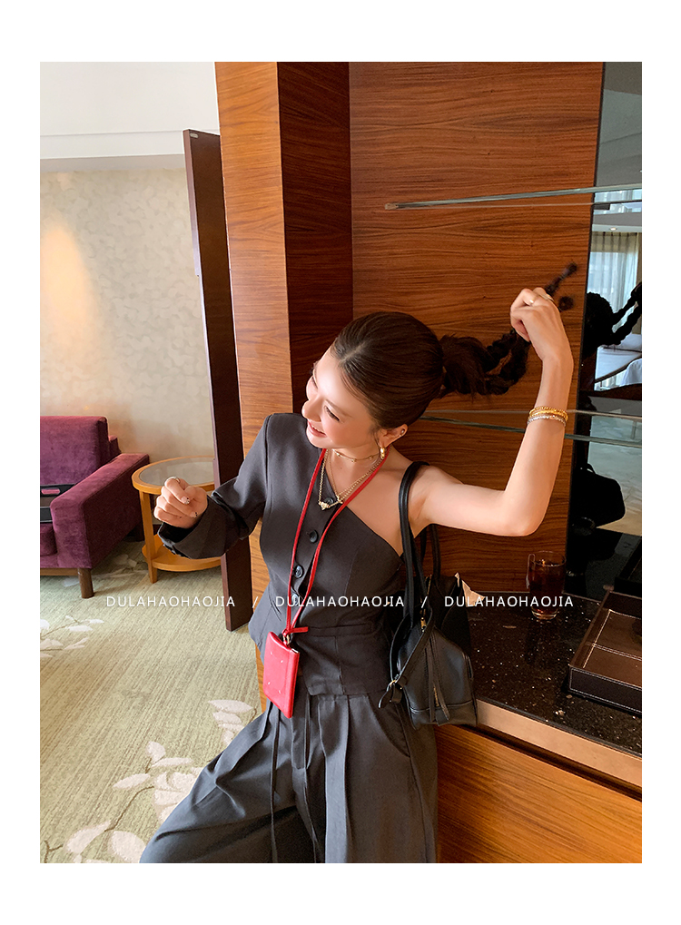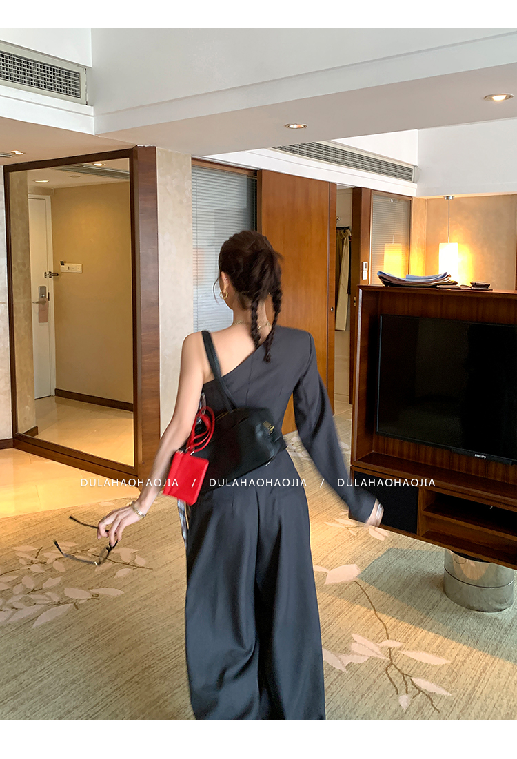 DULA Minimalist One-shoulder sleeve suit jacket + pants
