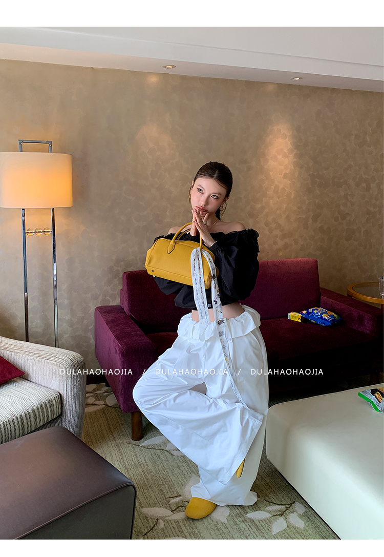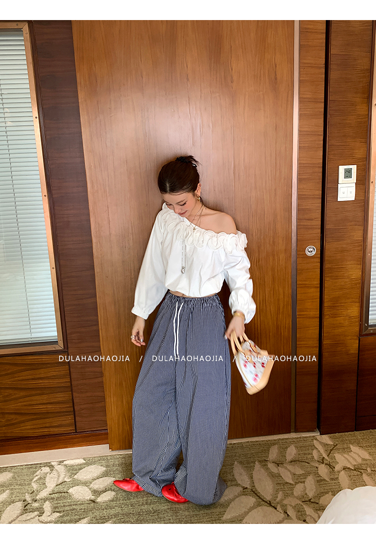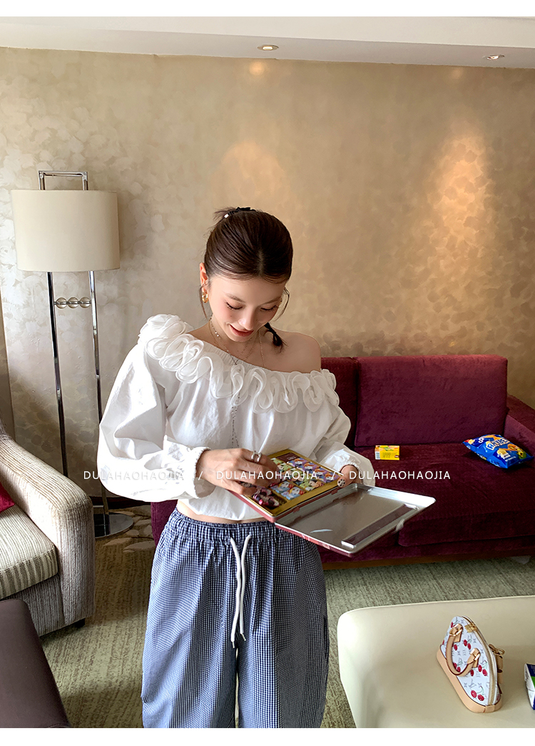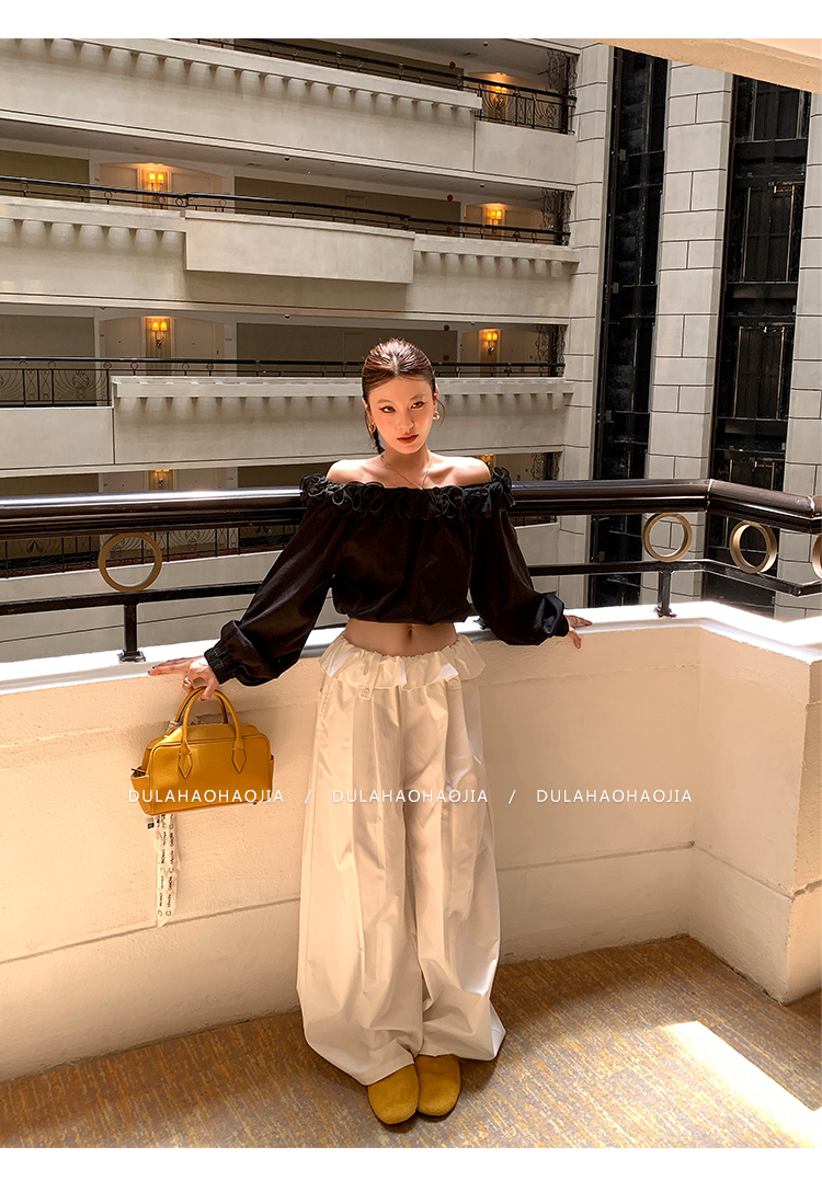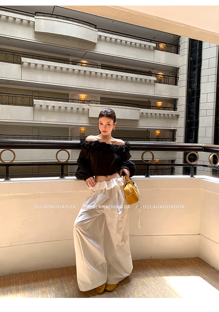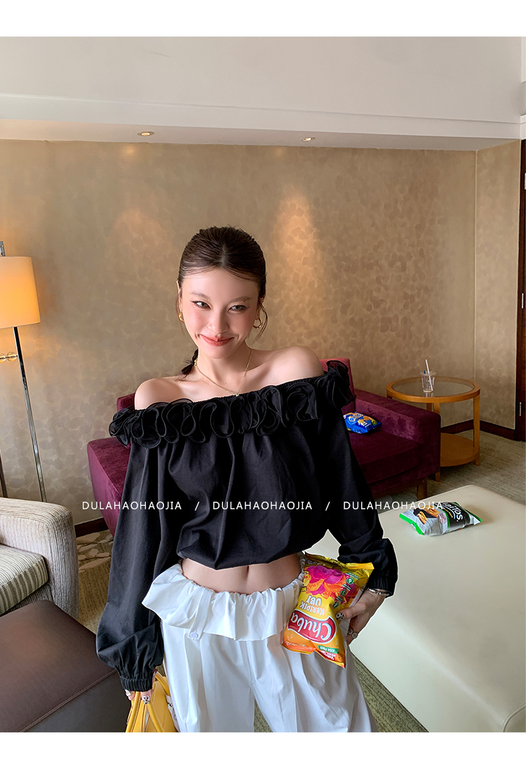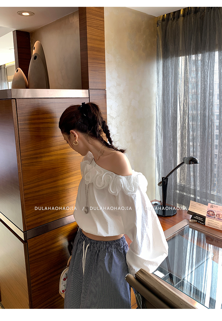 DULA Gallery Short 3D Lace Off-the-Shoulder Long-sleeved Shirt