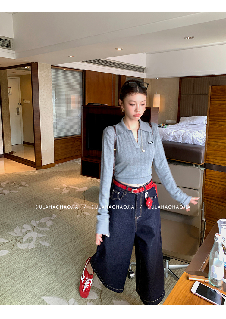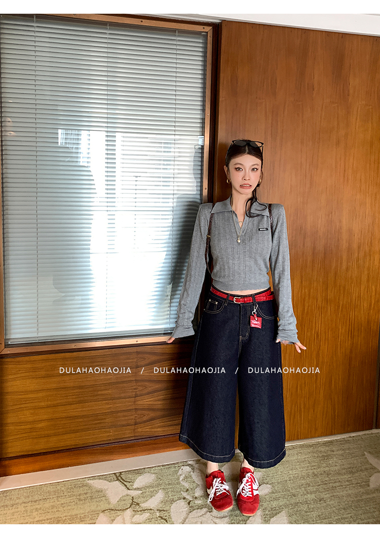 DULA Baker Old Street Dark blue denim cropped wide-leg pants