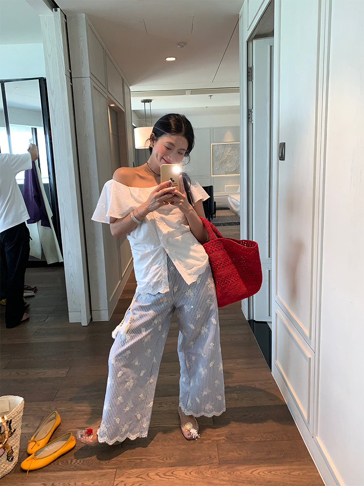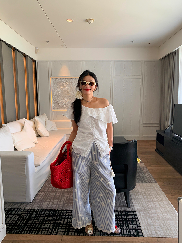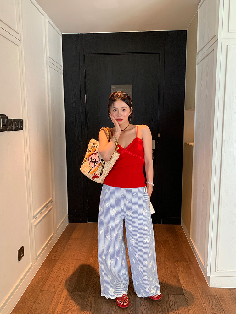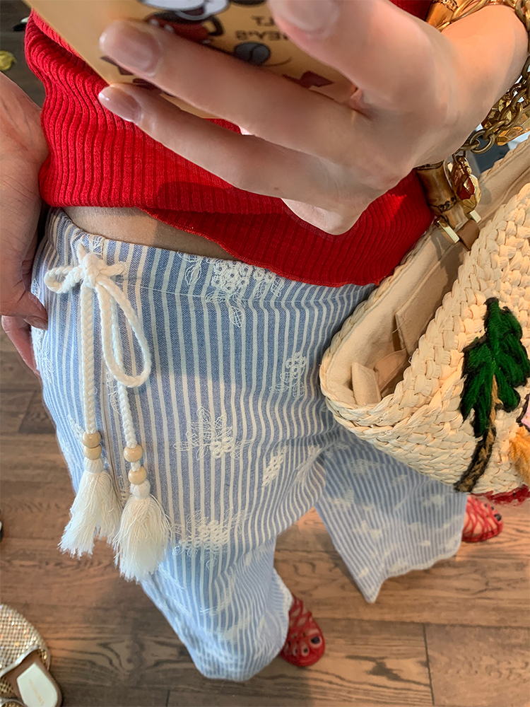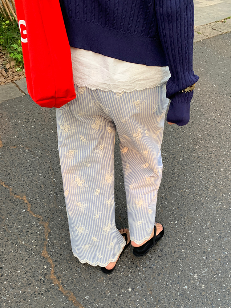 LUO wide-leg embroidered stripes pants