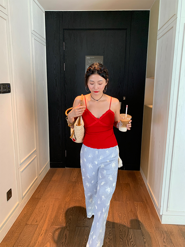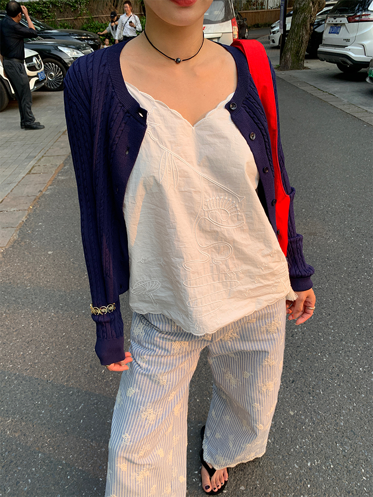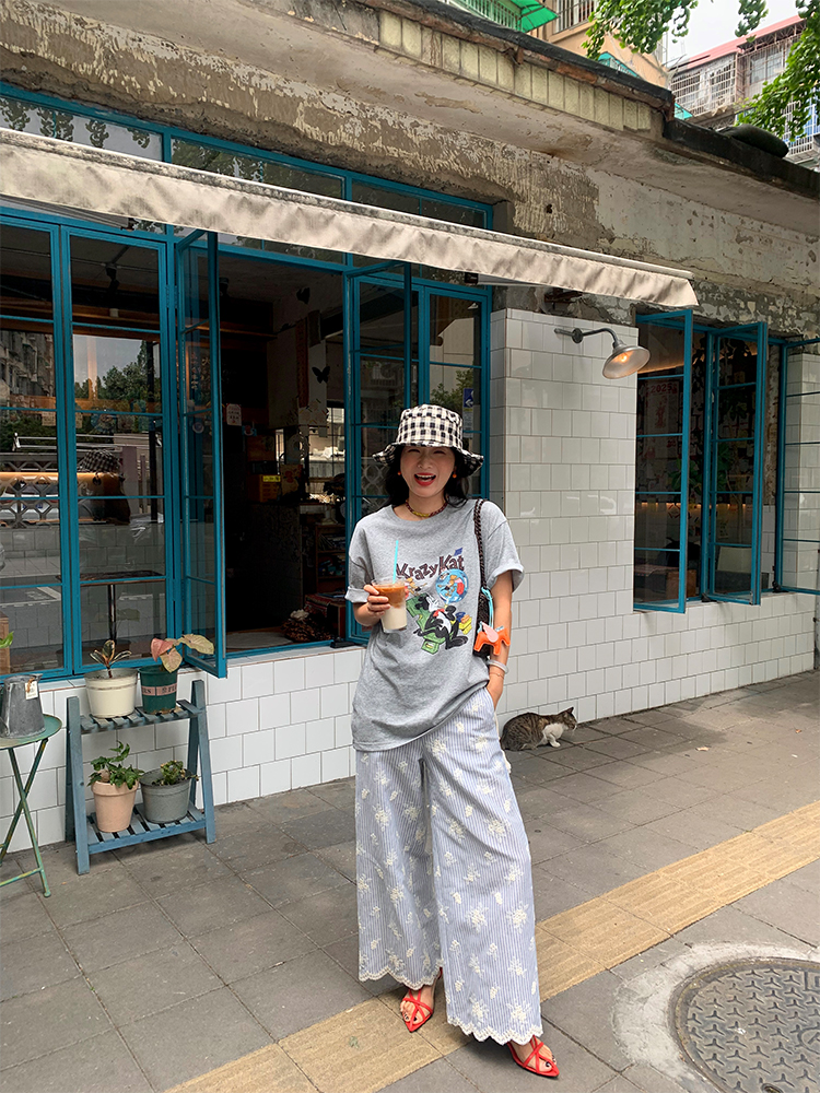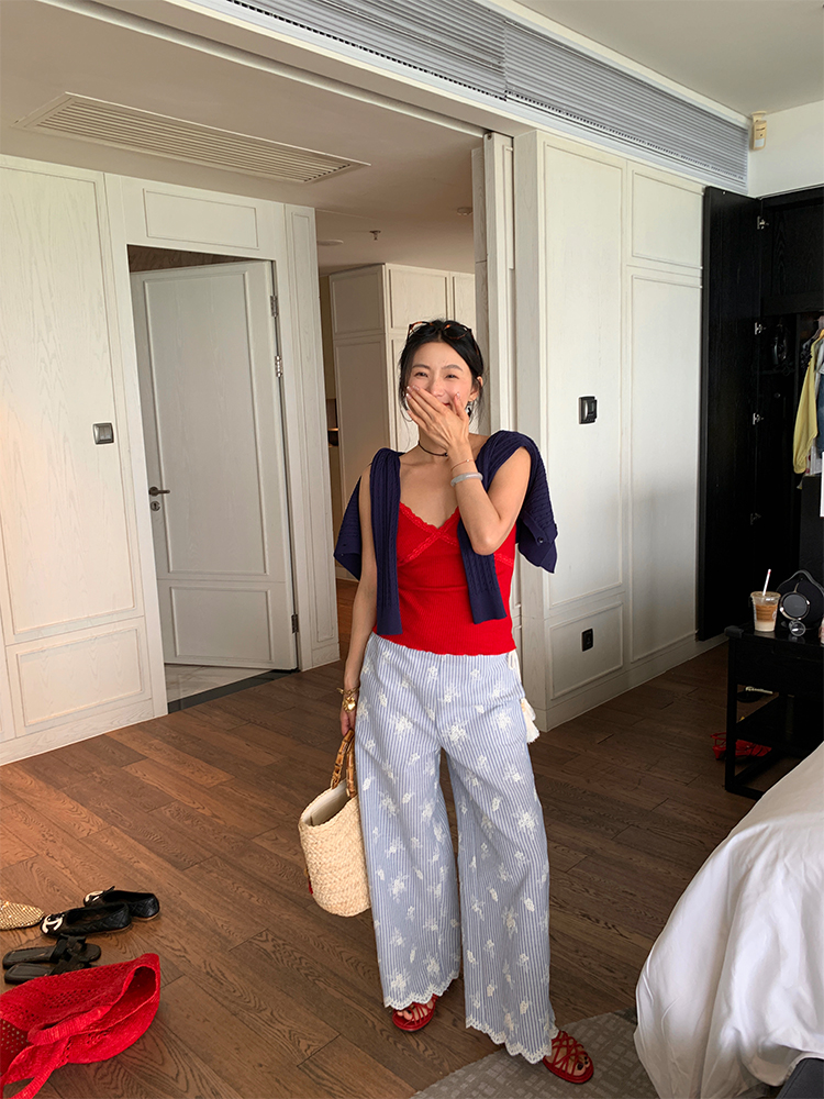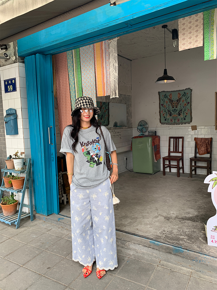 LUO wide-leg embroidered stripes pants