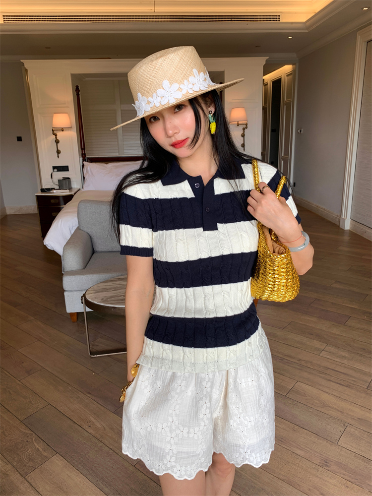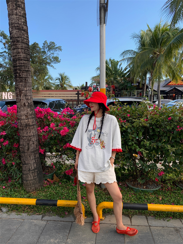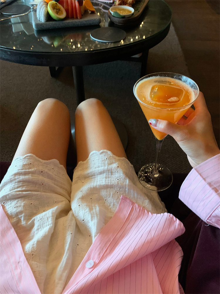 LUO elastic waist shorts embroidery white wide-leg casual pants