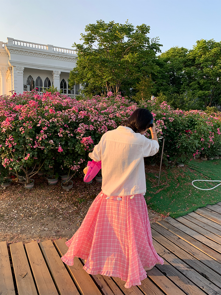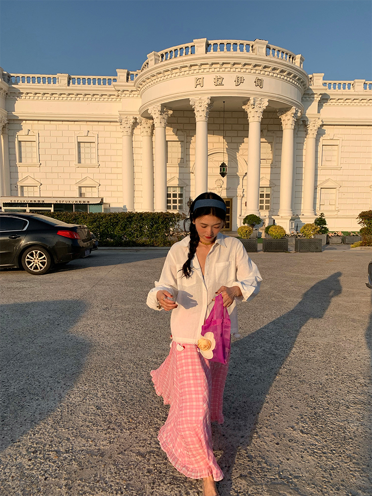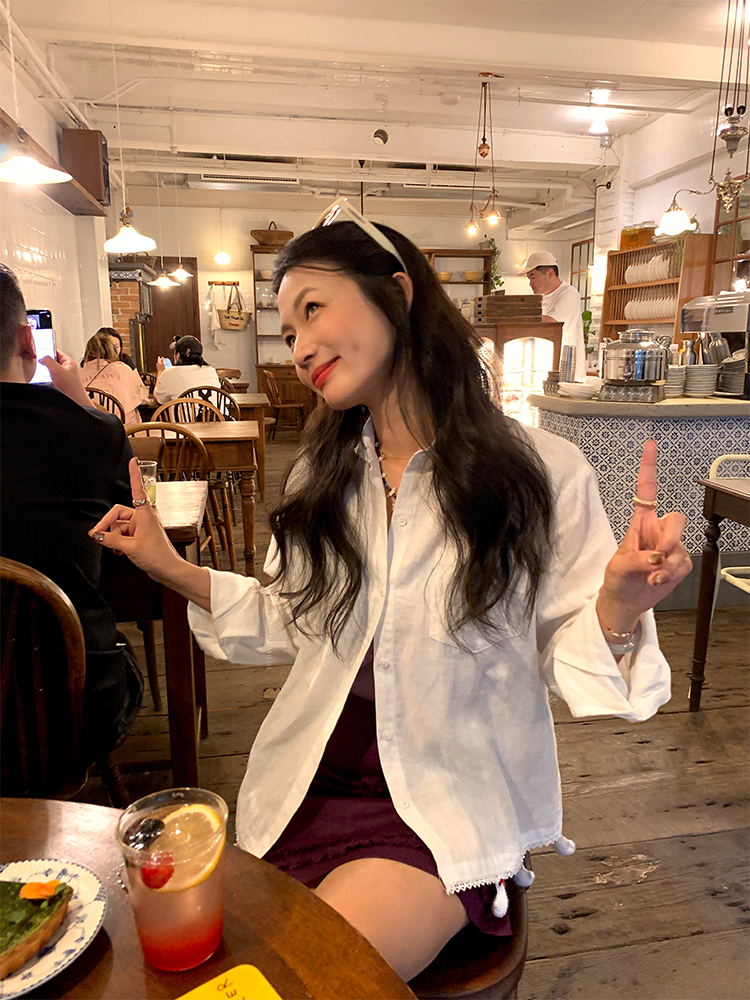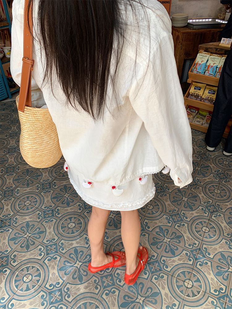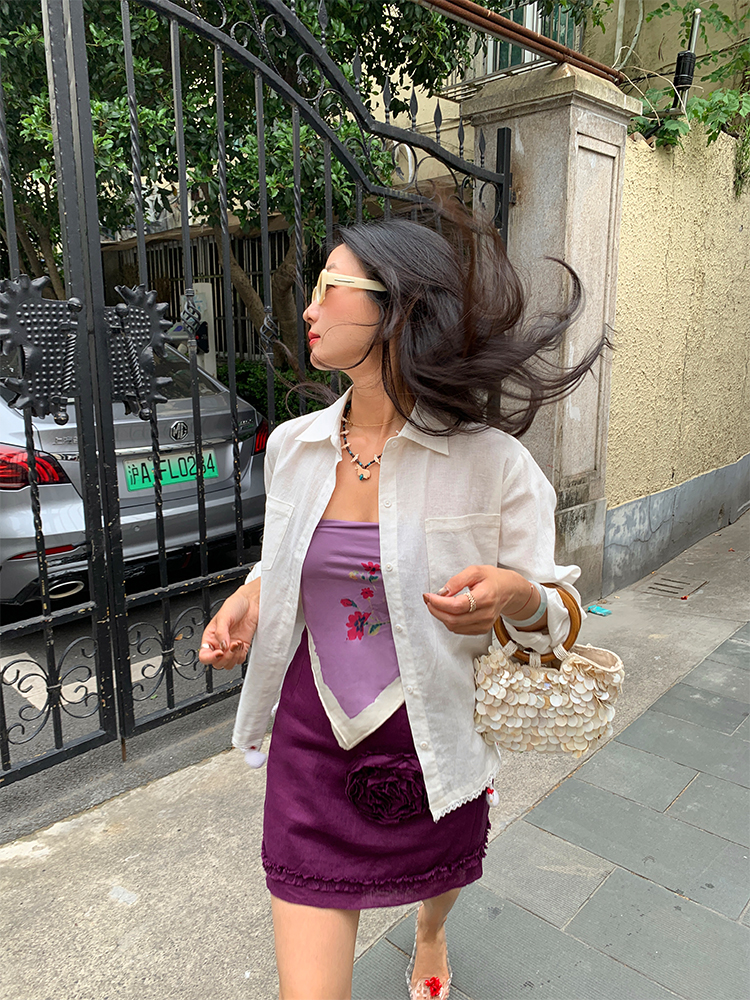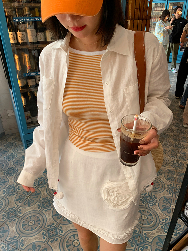 LUO handmade decoration white long-sleeved linen shirt
