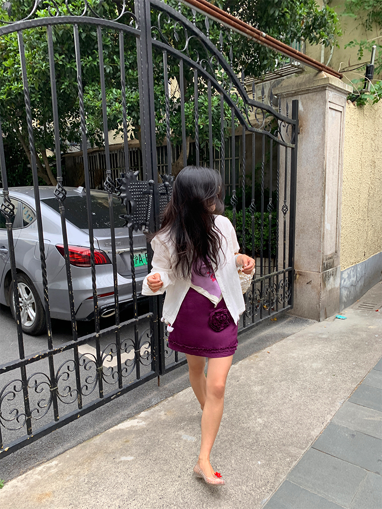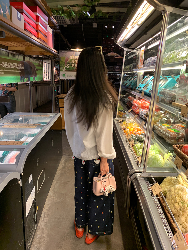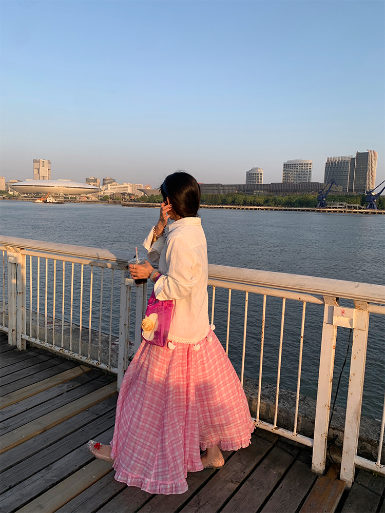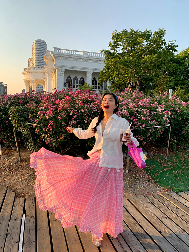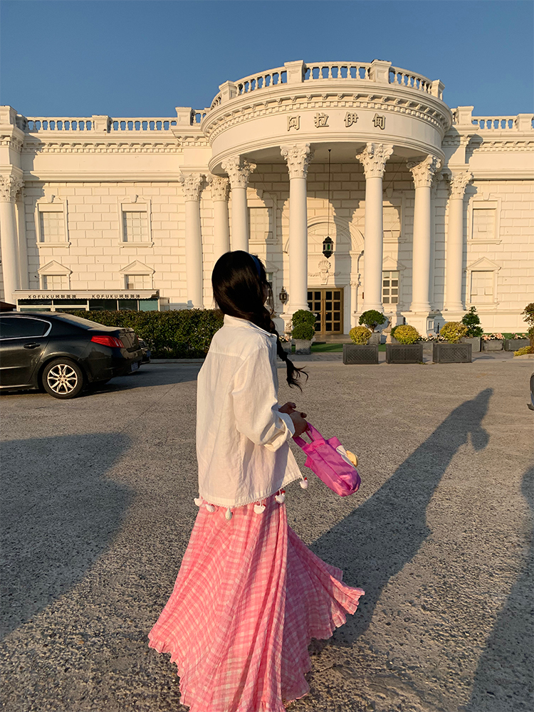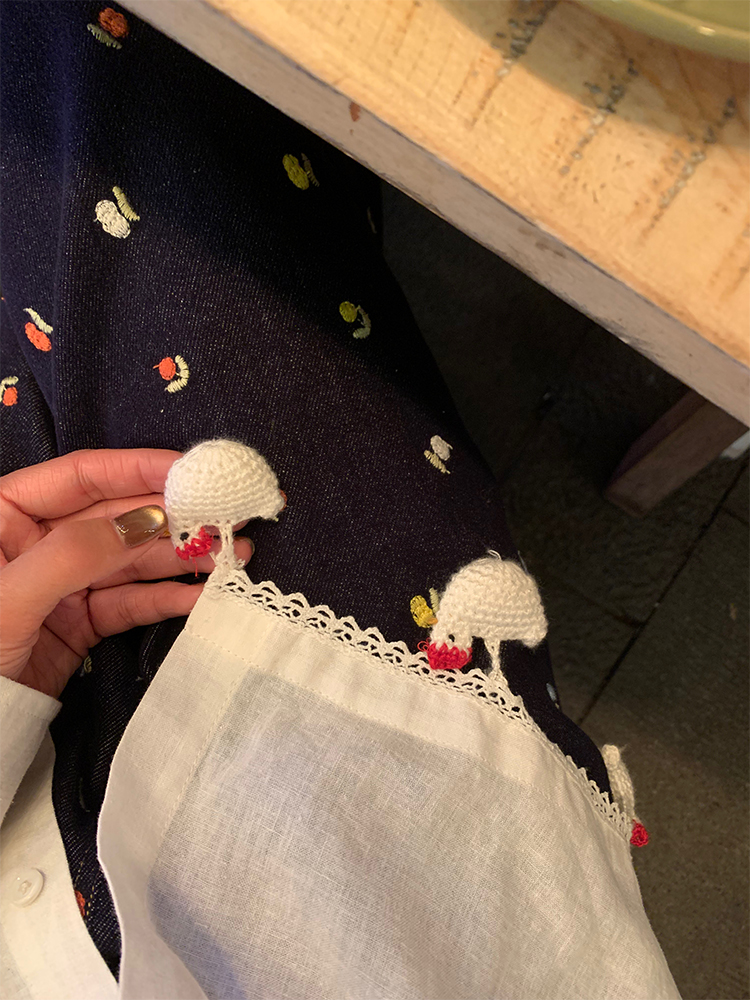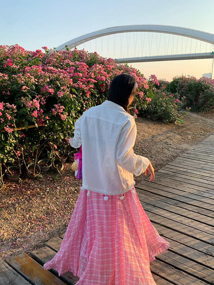 LUO handmade decoration white long-sleeved linen shirt