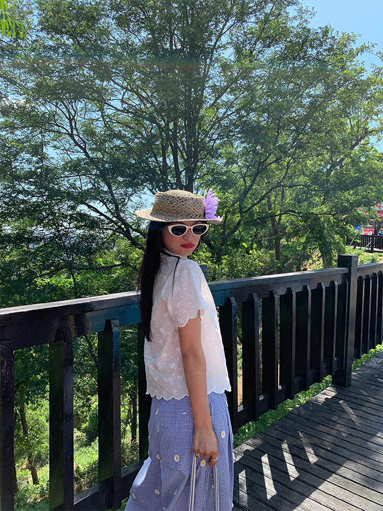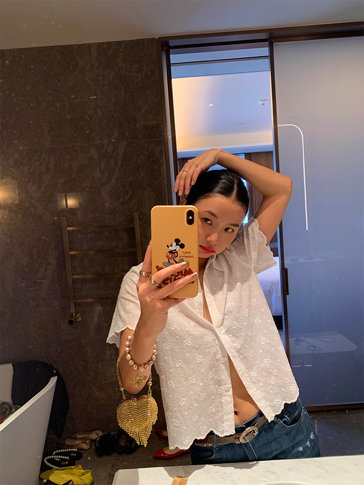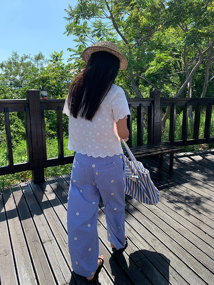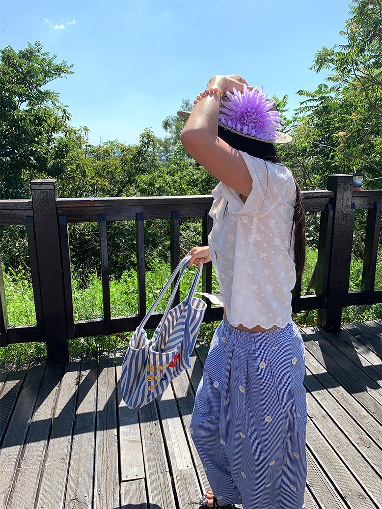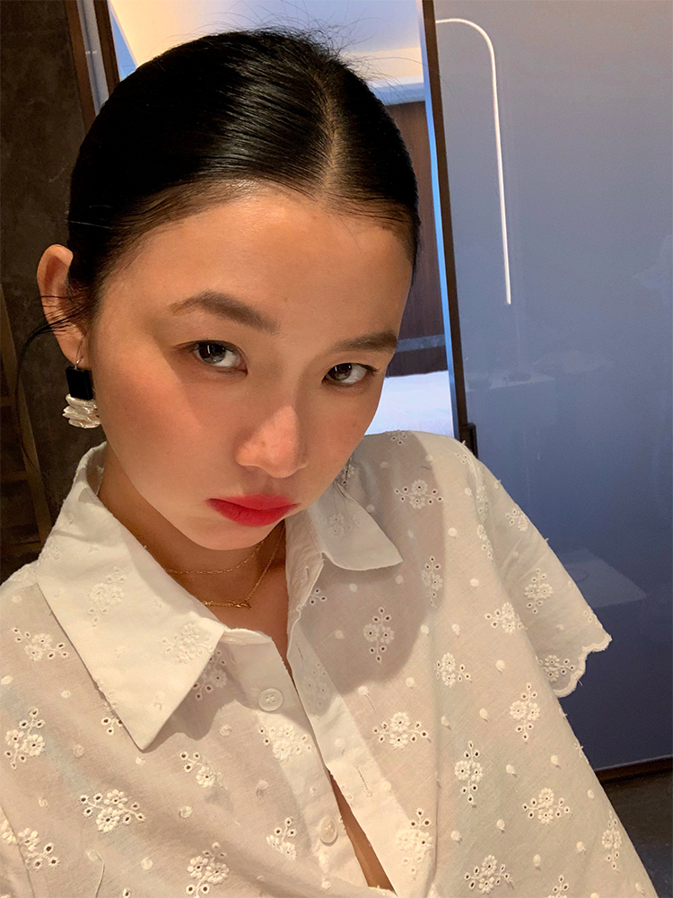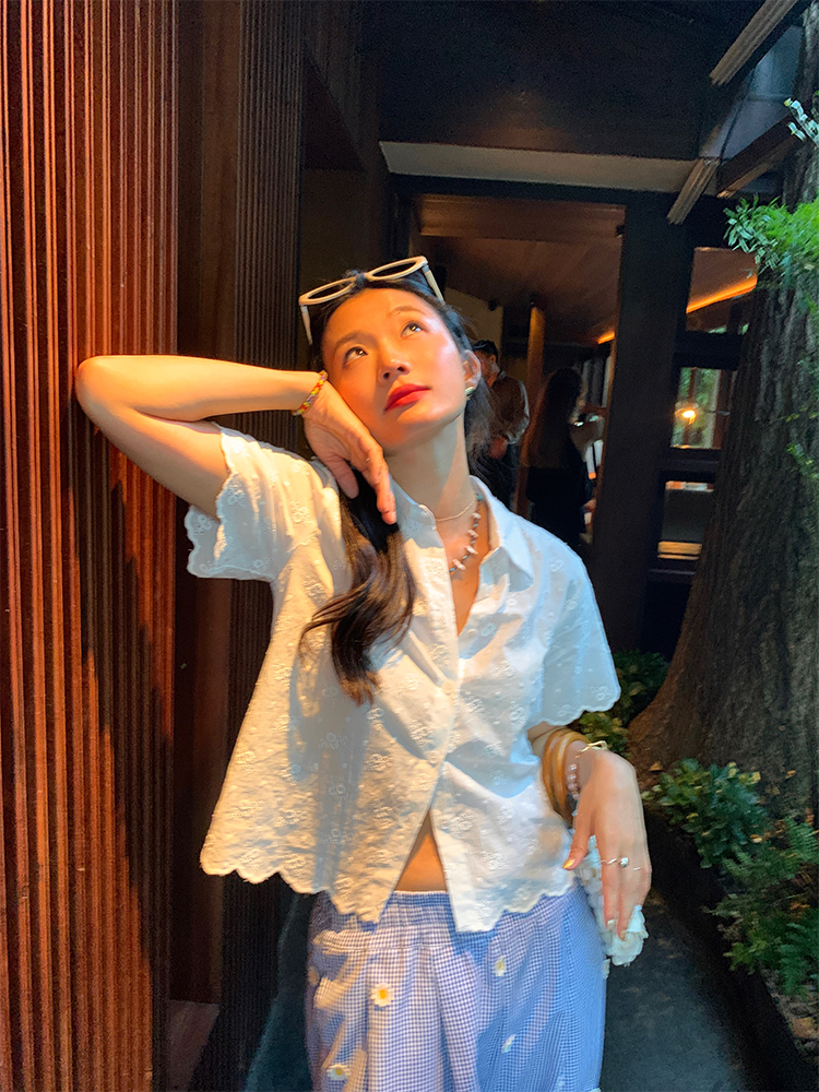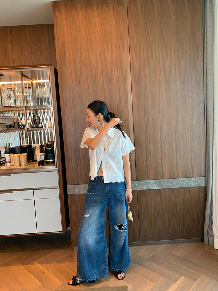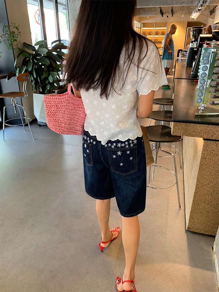 LUO refreshing short-sleeved embroidered hollow white shirt