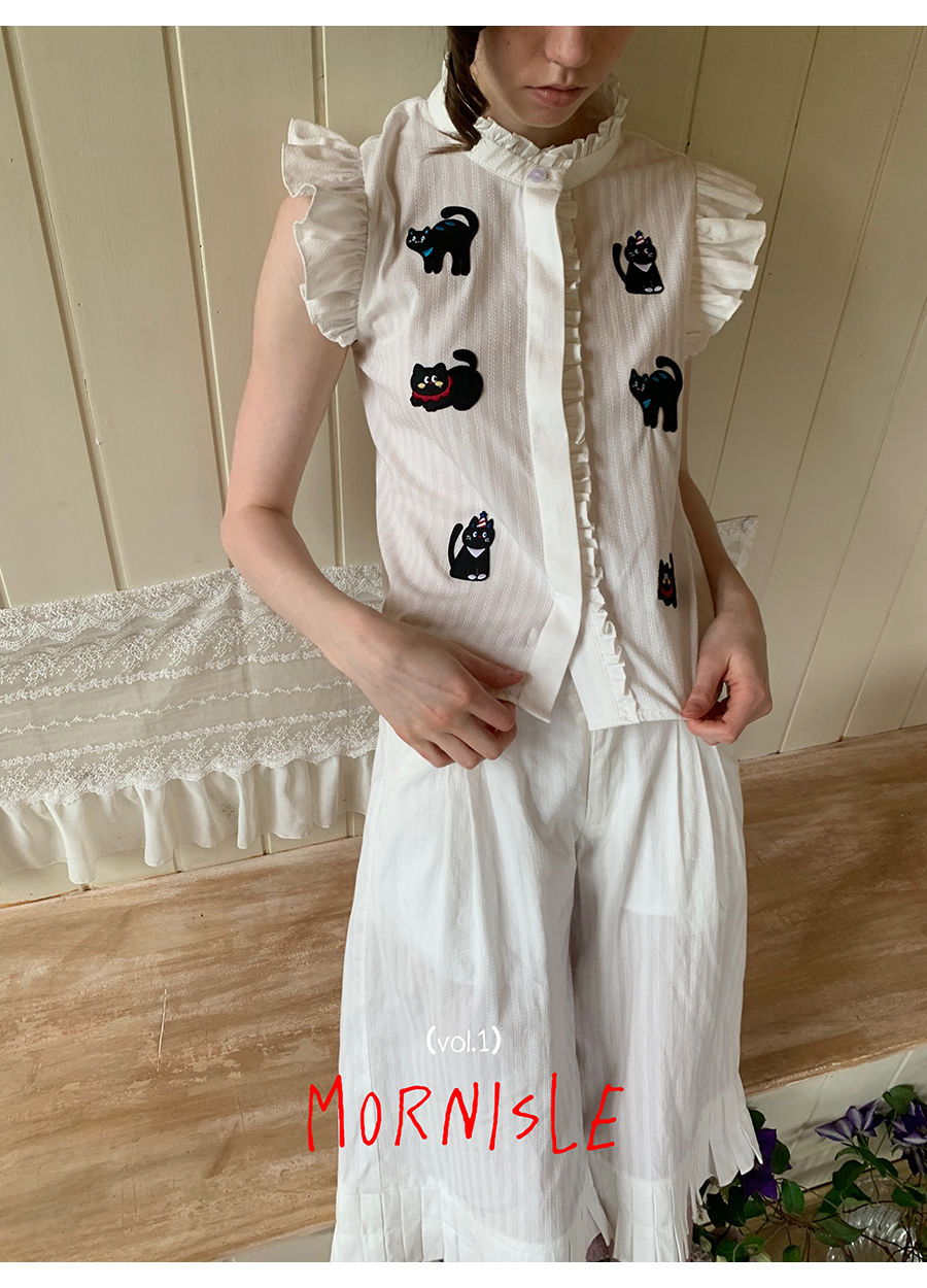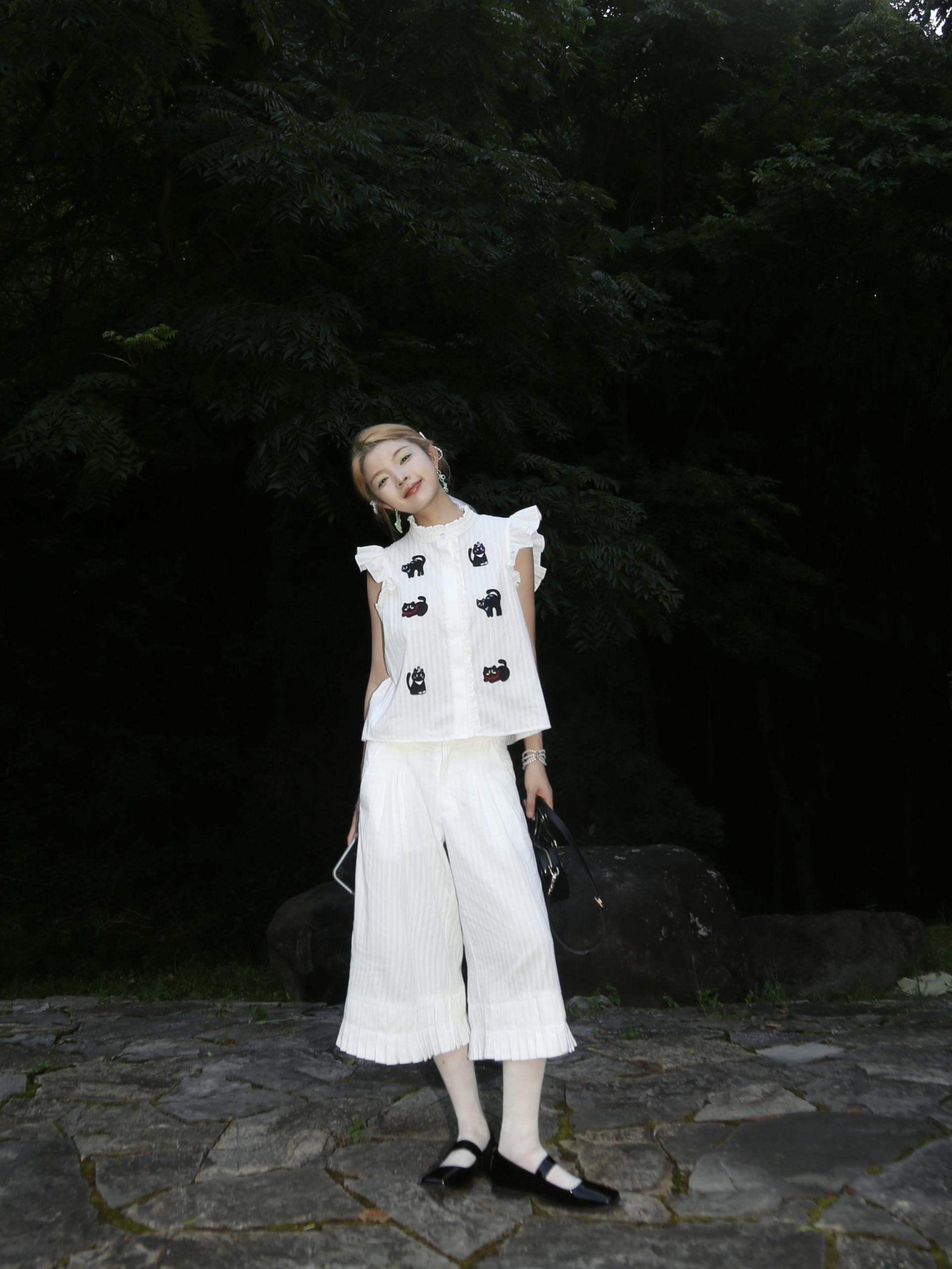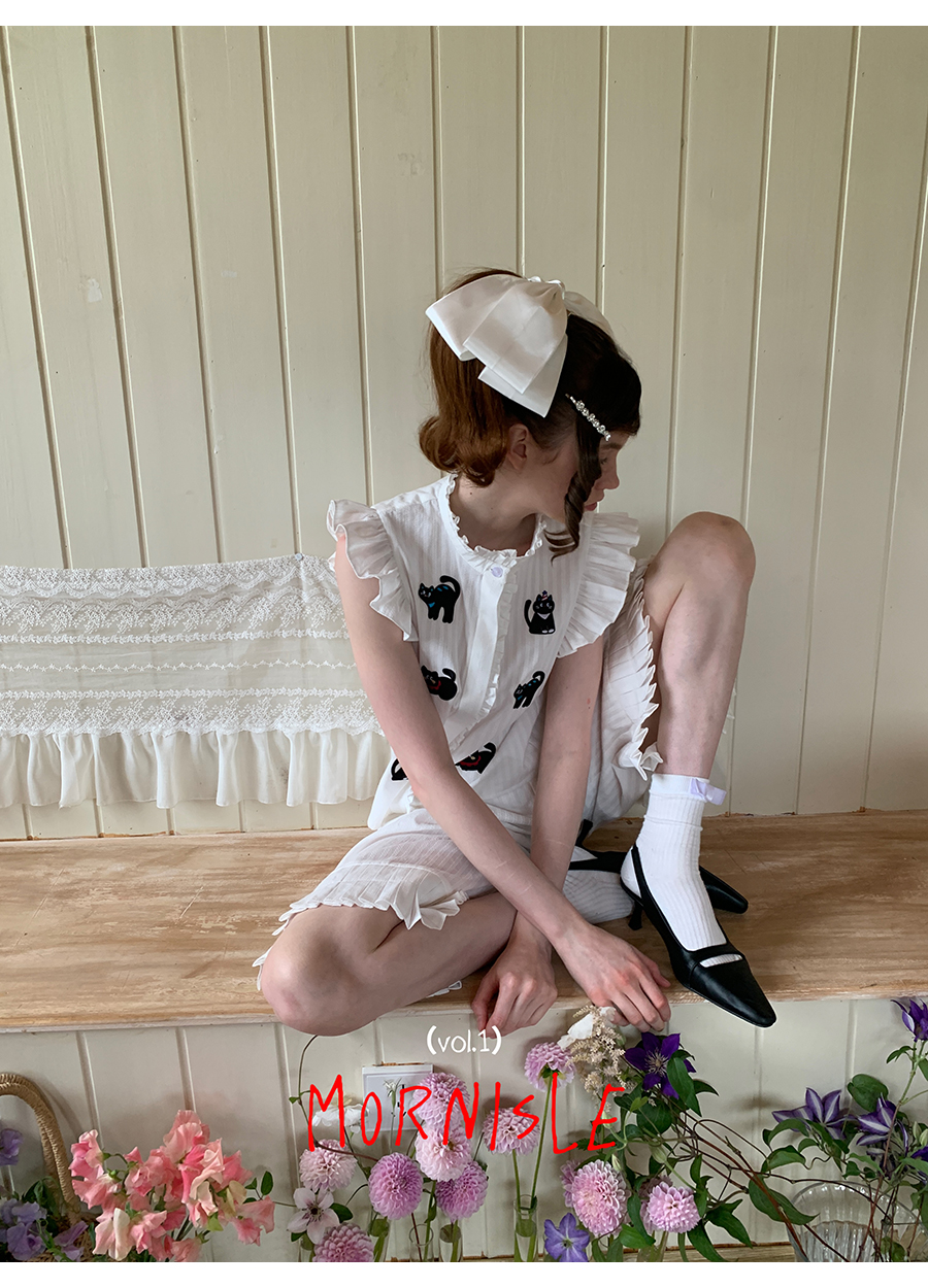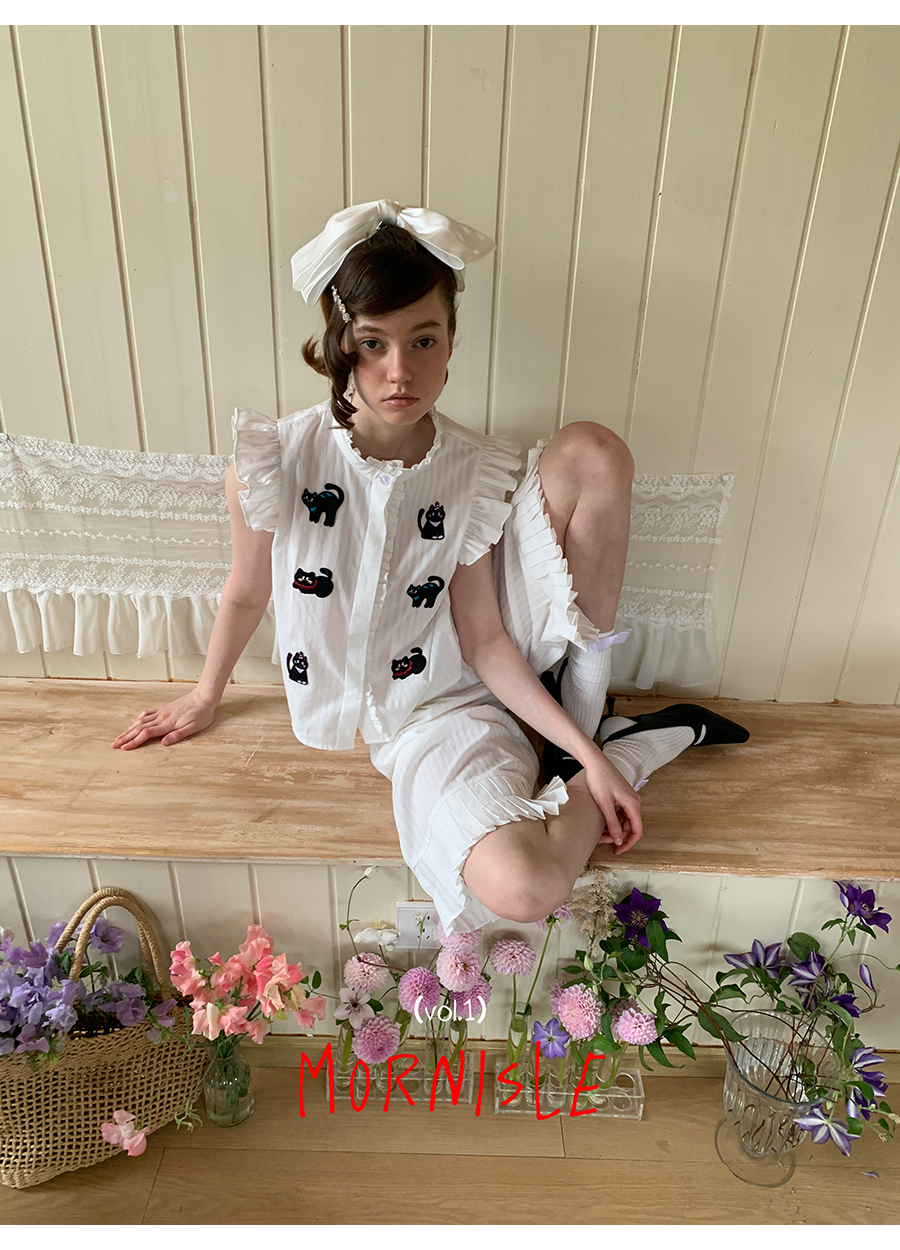 MORN Cloud Cat Jacquard Stand-Up Collar Shirt and Shorts Set