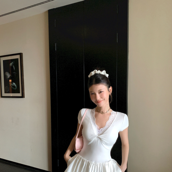 MORN Cloud retro girlish edge pleated puffy skirt short dressNEW