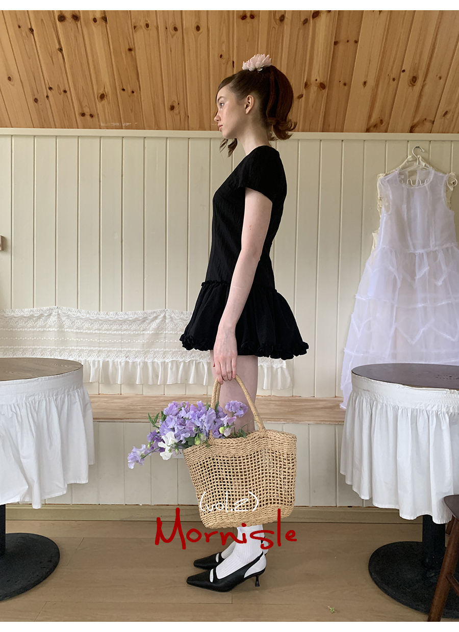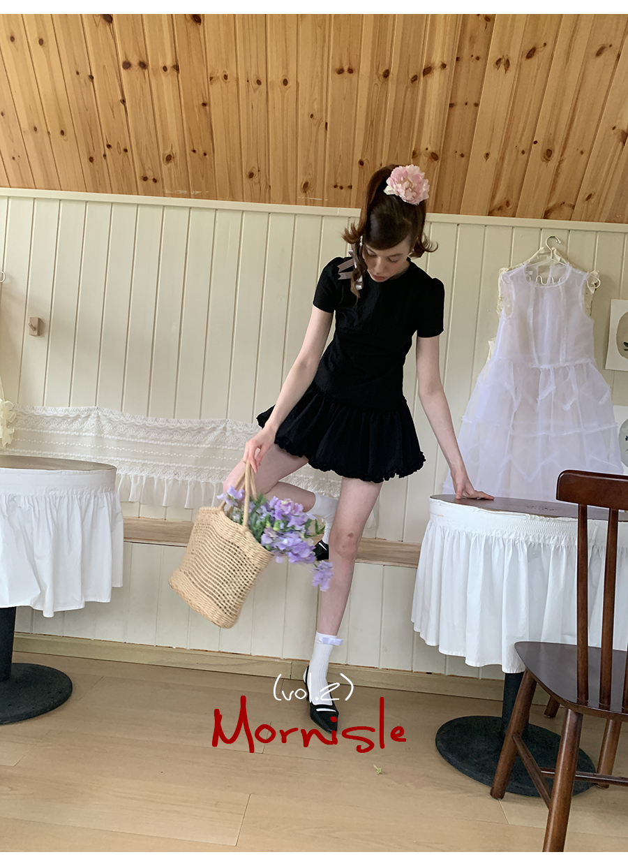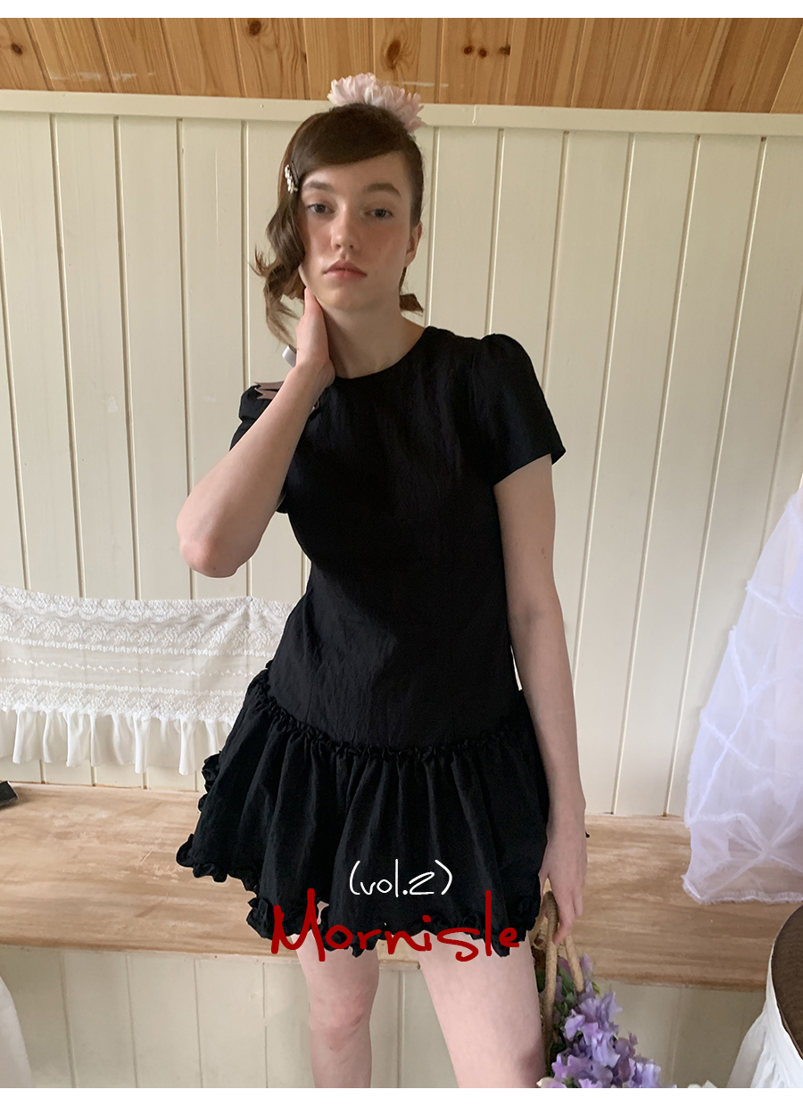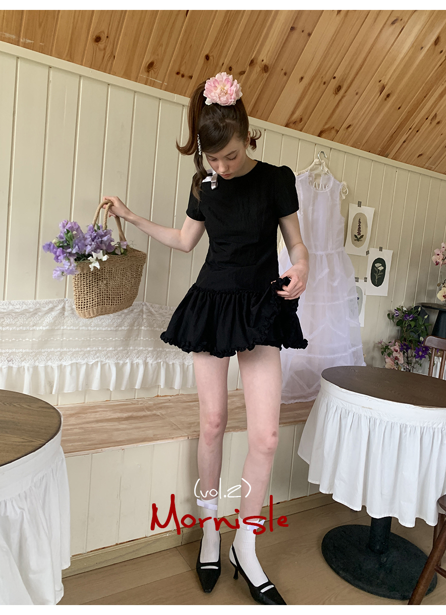MORN Cloud retro girlish edge pleated puffy skirt short dress