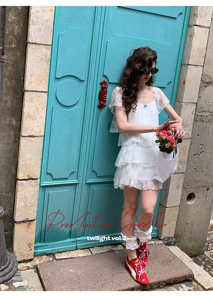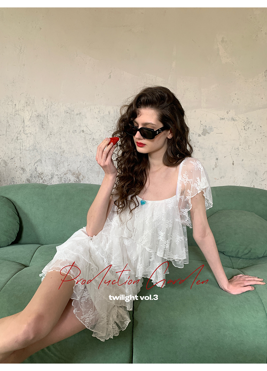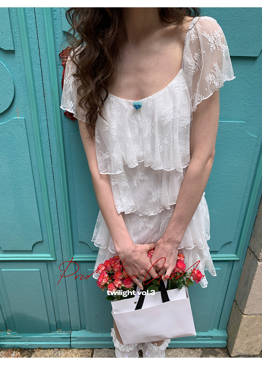 MORN Back twilight retro lace jacquard large square collar cake dress
