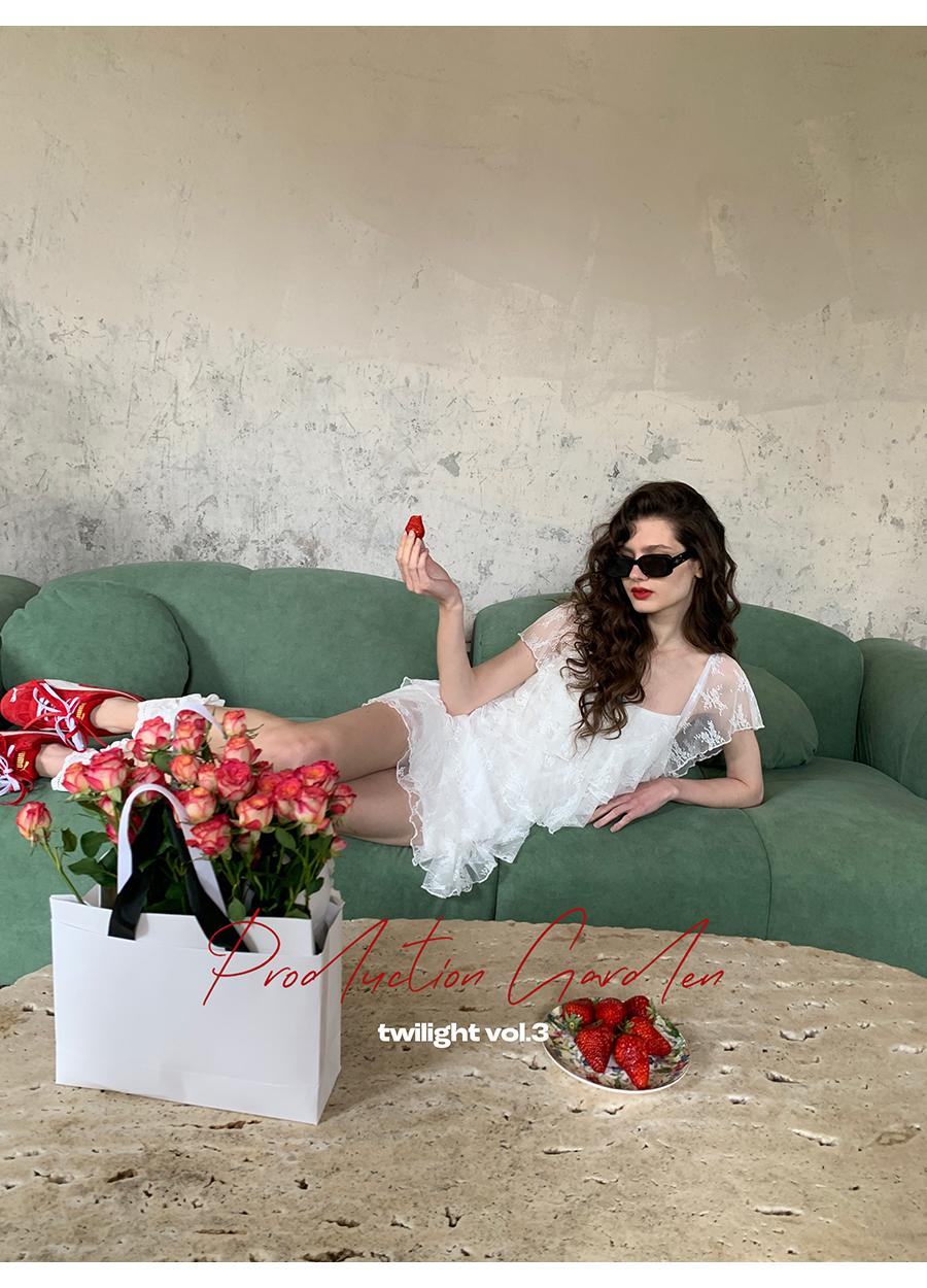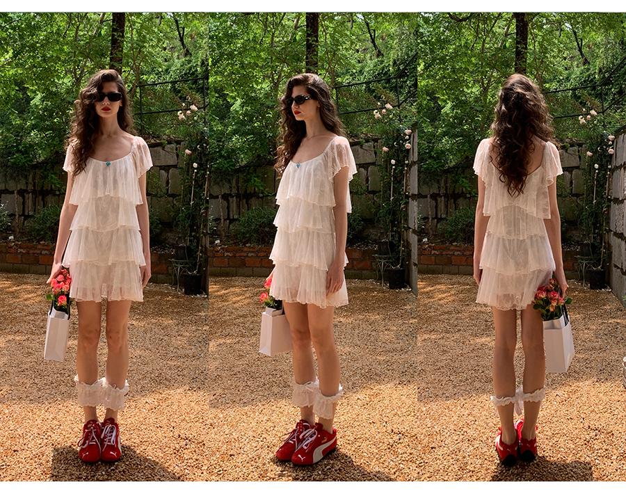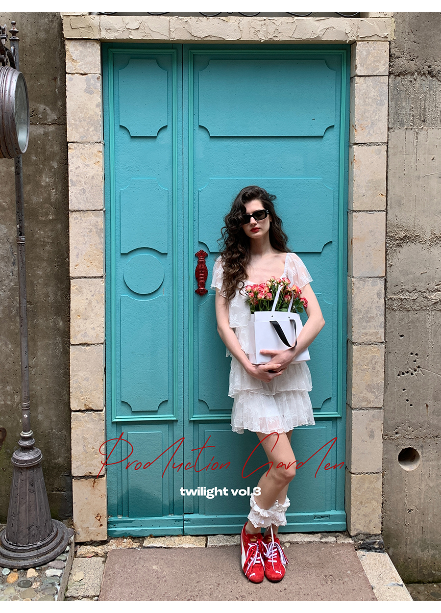 MORN Back twilight retro lace jacquard large square collar cake dress