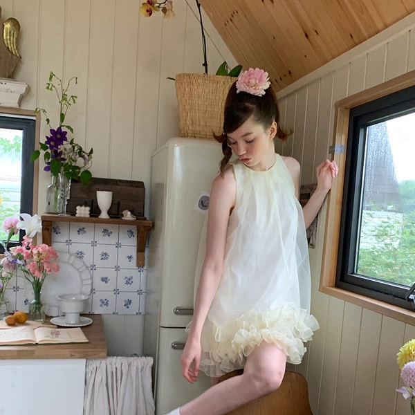 MORN Star Series French girl ruffled U-neck pleated waist vest dressNEW