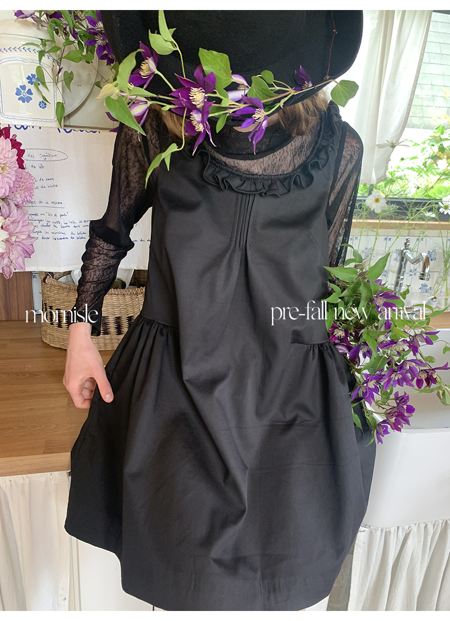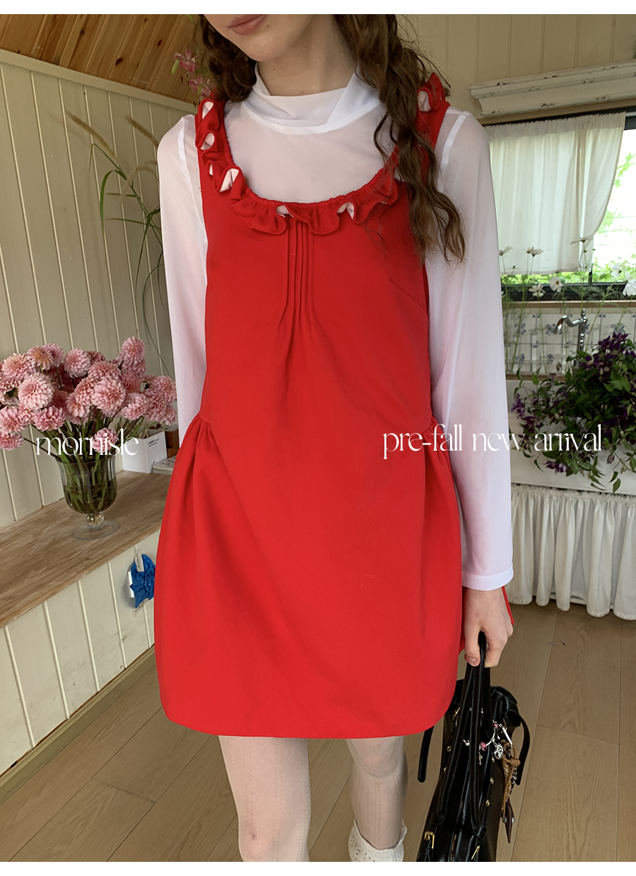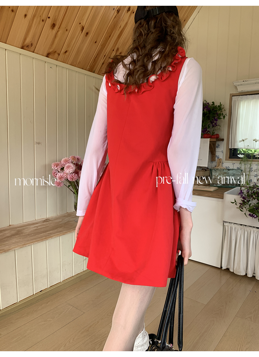 MORN Star Series French girl ruffled U-neck pleated waist vest dress