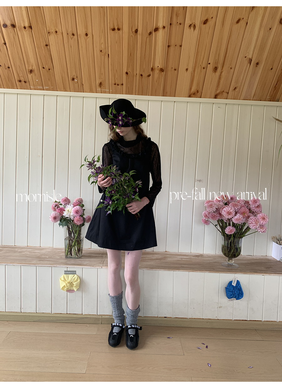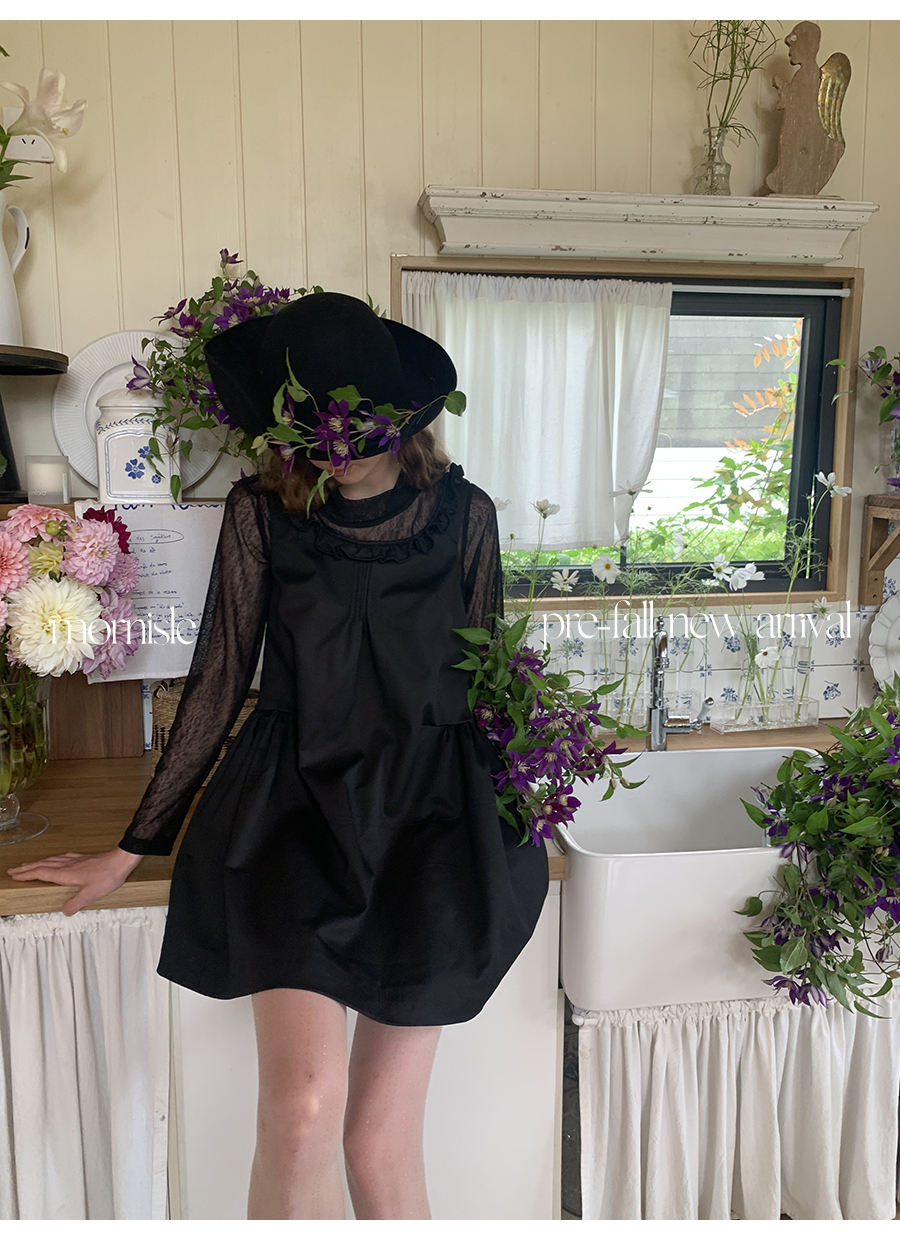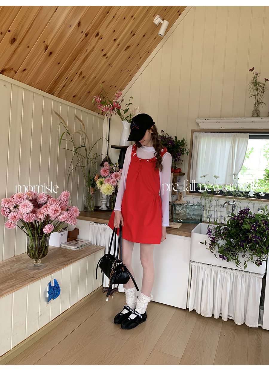 MORN Star Series French girl ruffled U-neck pleated waist vest dress