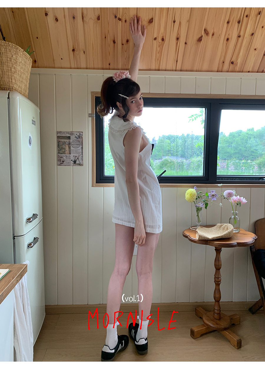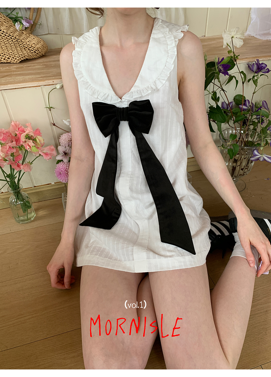 MORN Girlish Cotton Jacquard Large Bow Lapel Straight Vest Dress