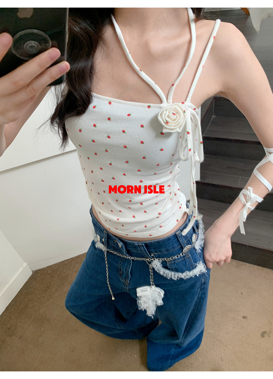 MORN knitted contrast striped double shoulder strap suspender top