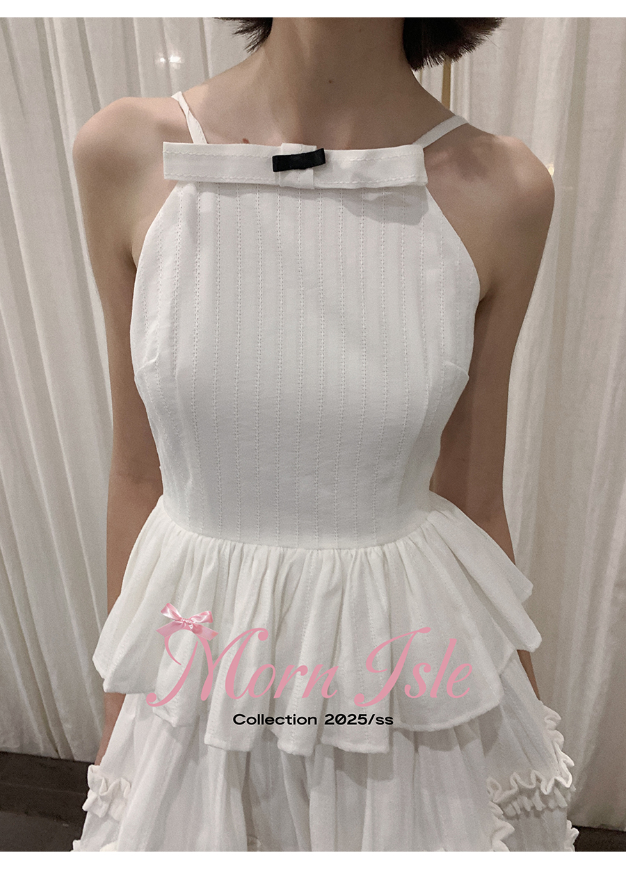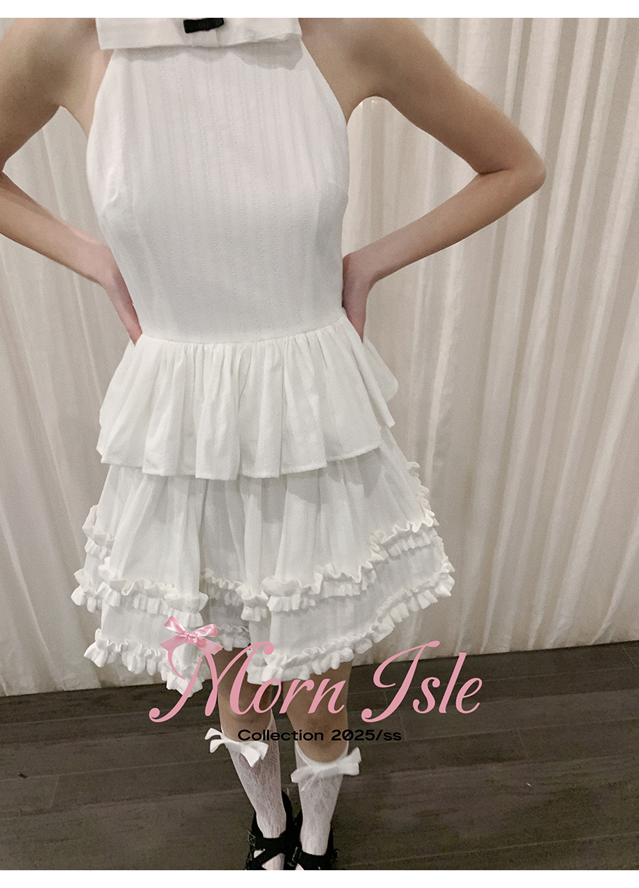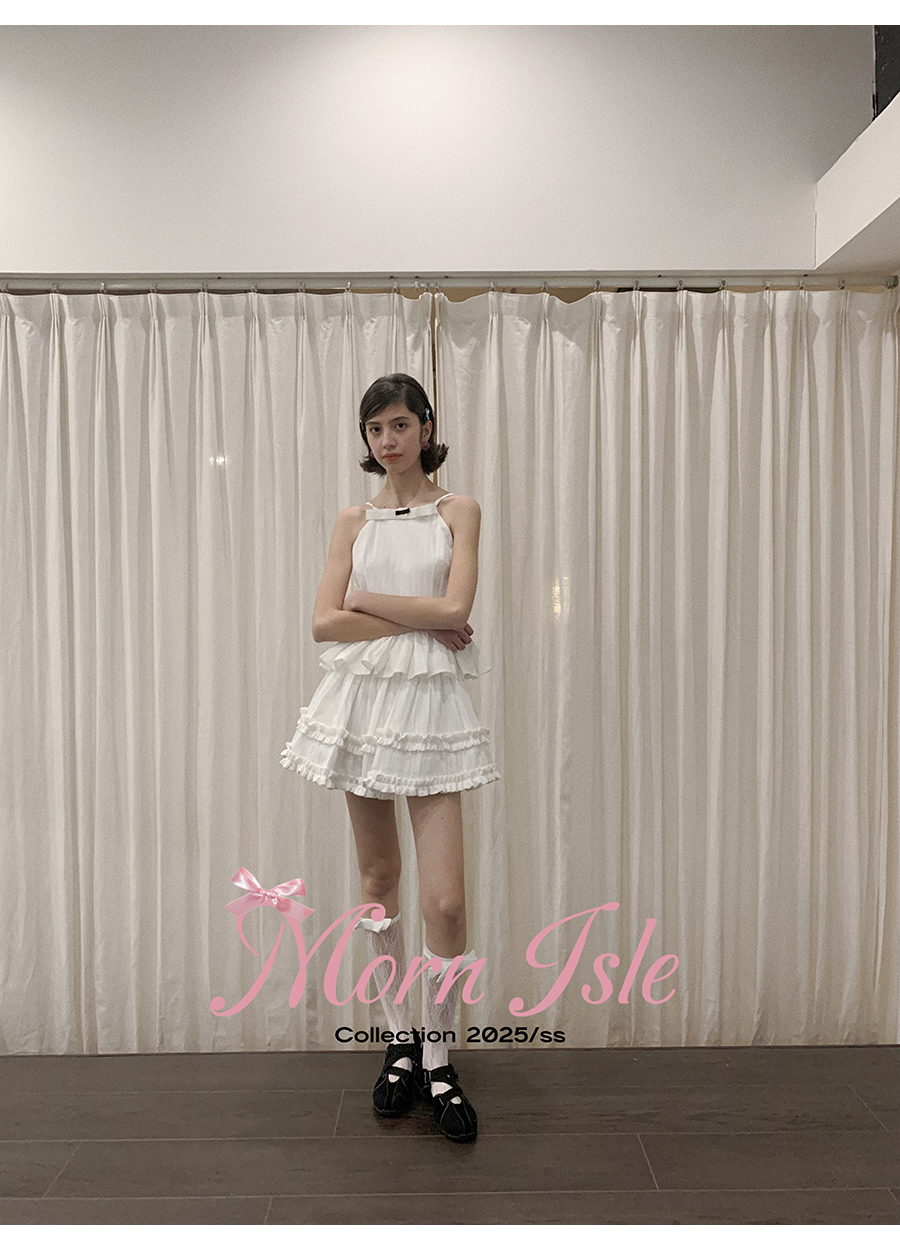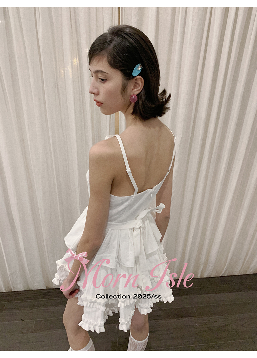 MORN White Jacquard Texture Lotus Leaf Open Back Top