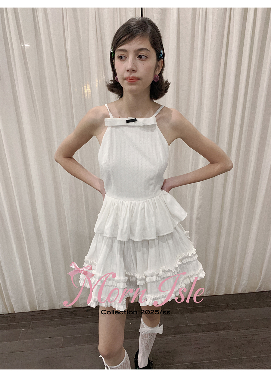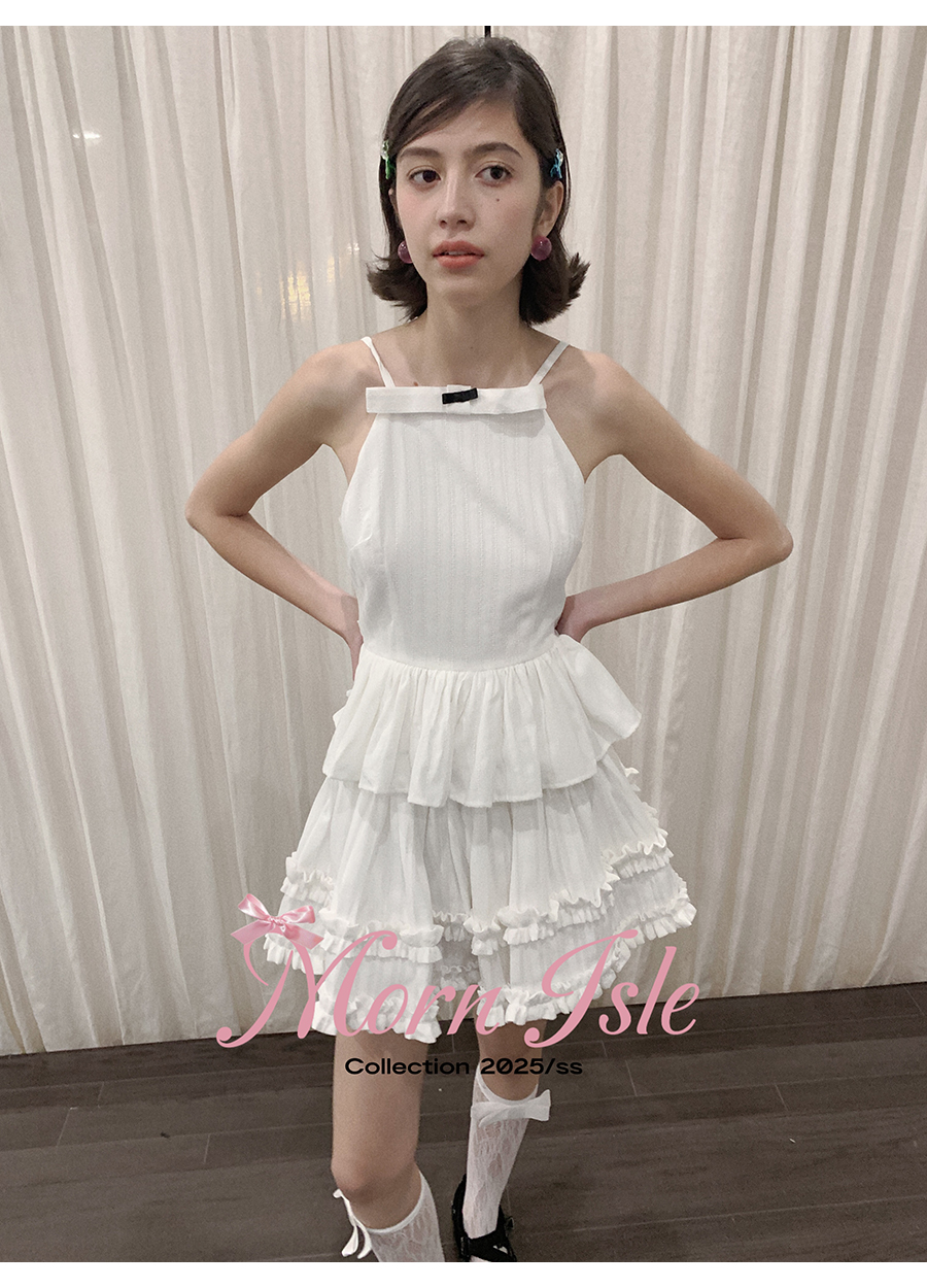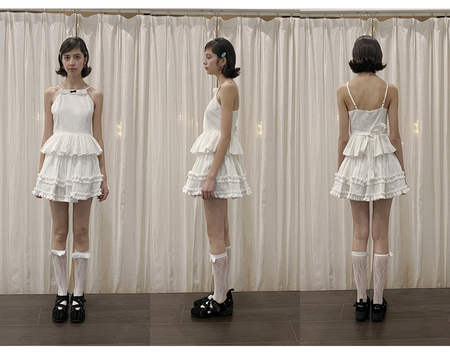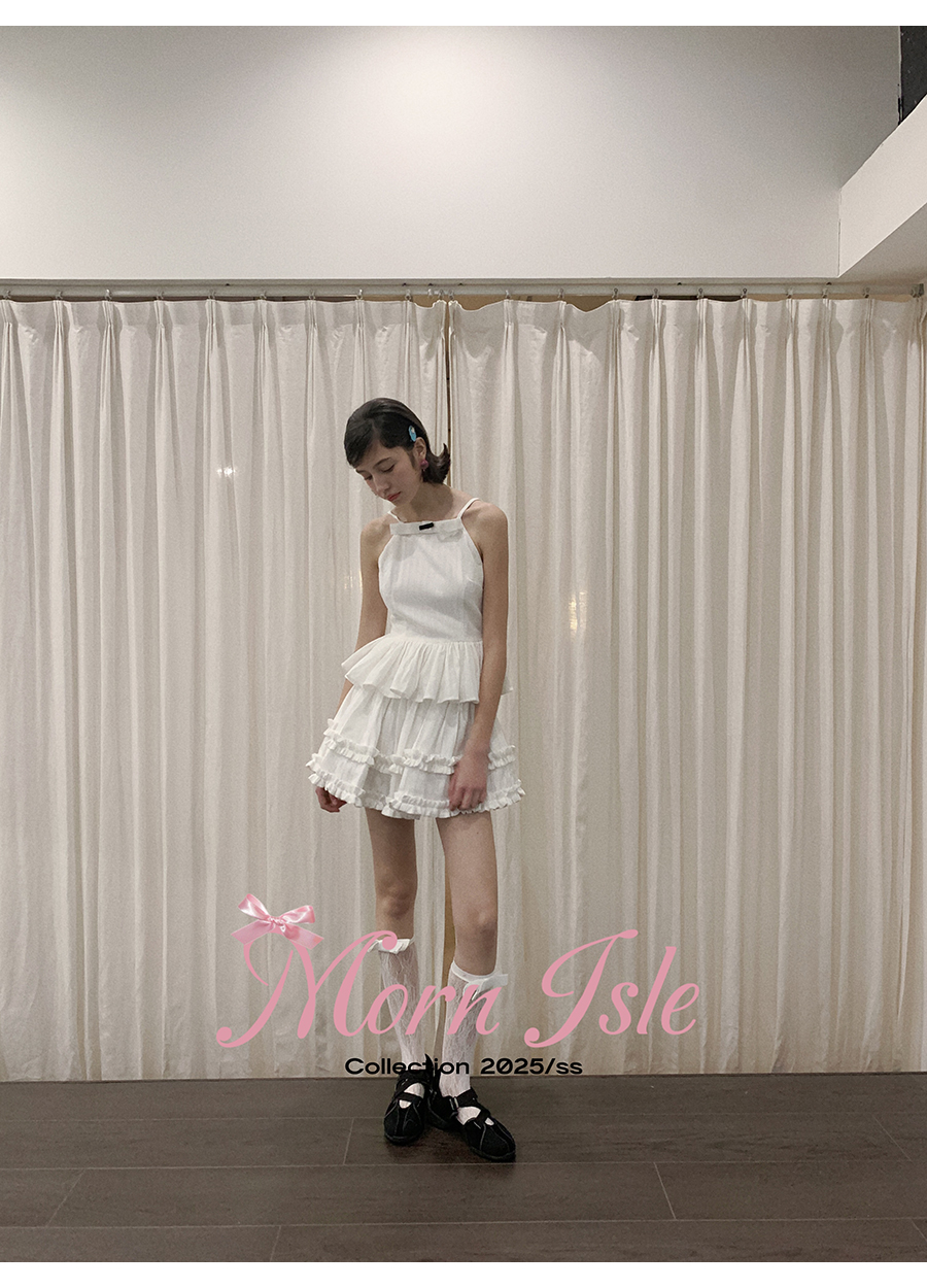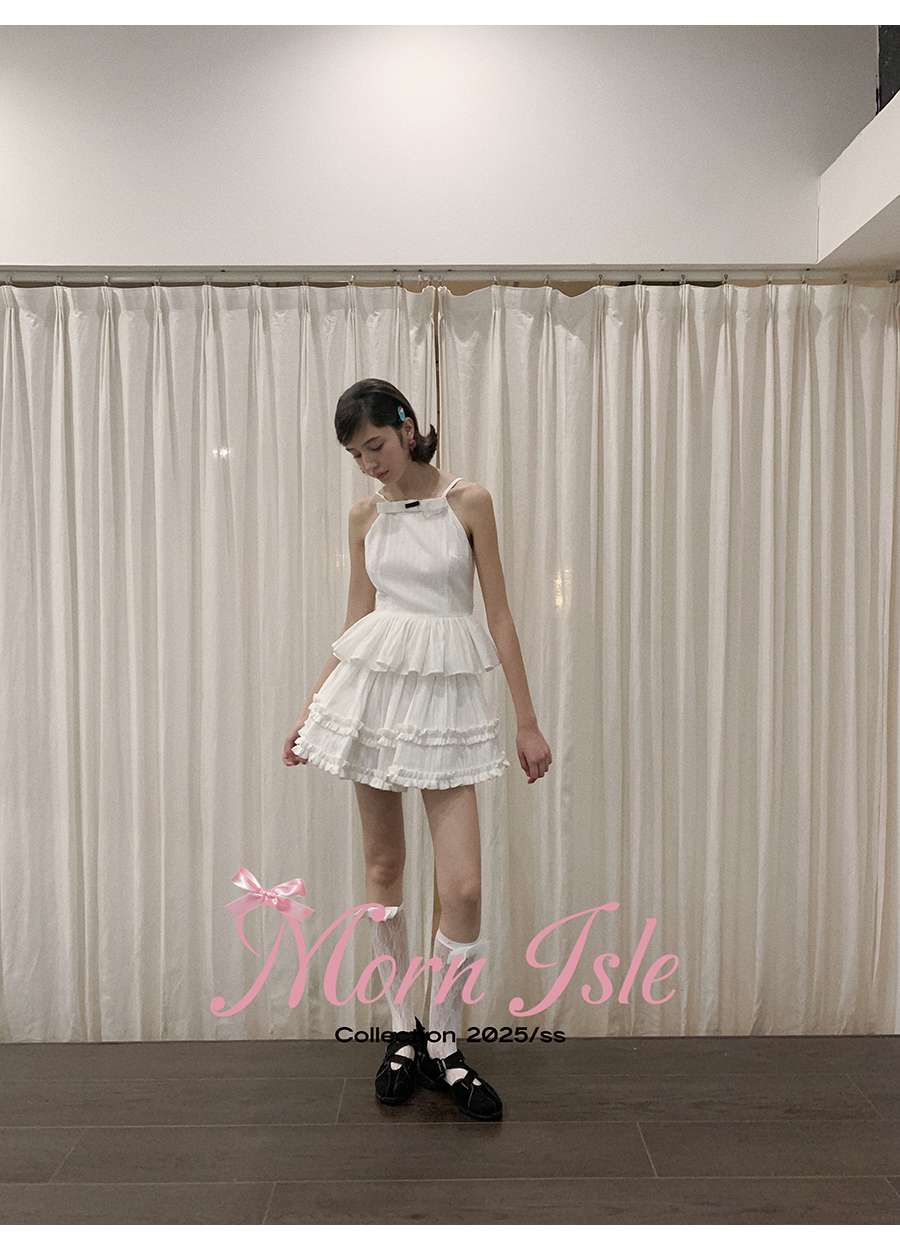 MORN White Jacquard Texture Lotus Leaf Open Back Top