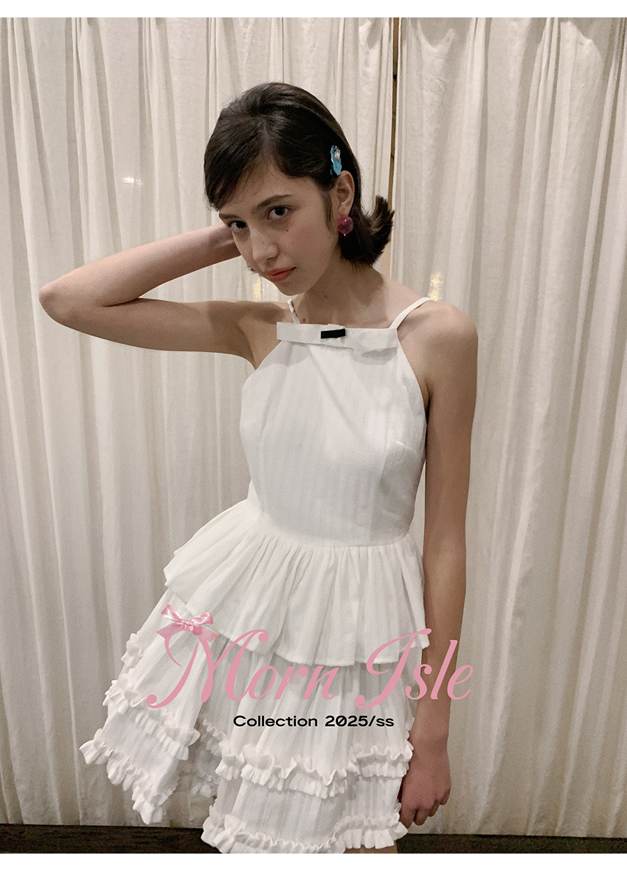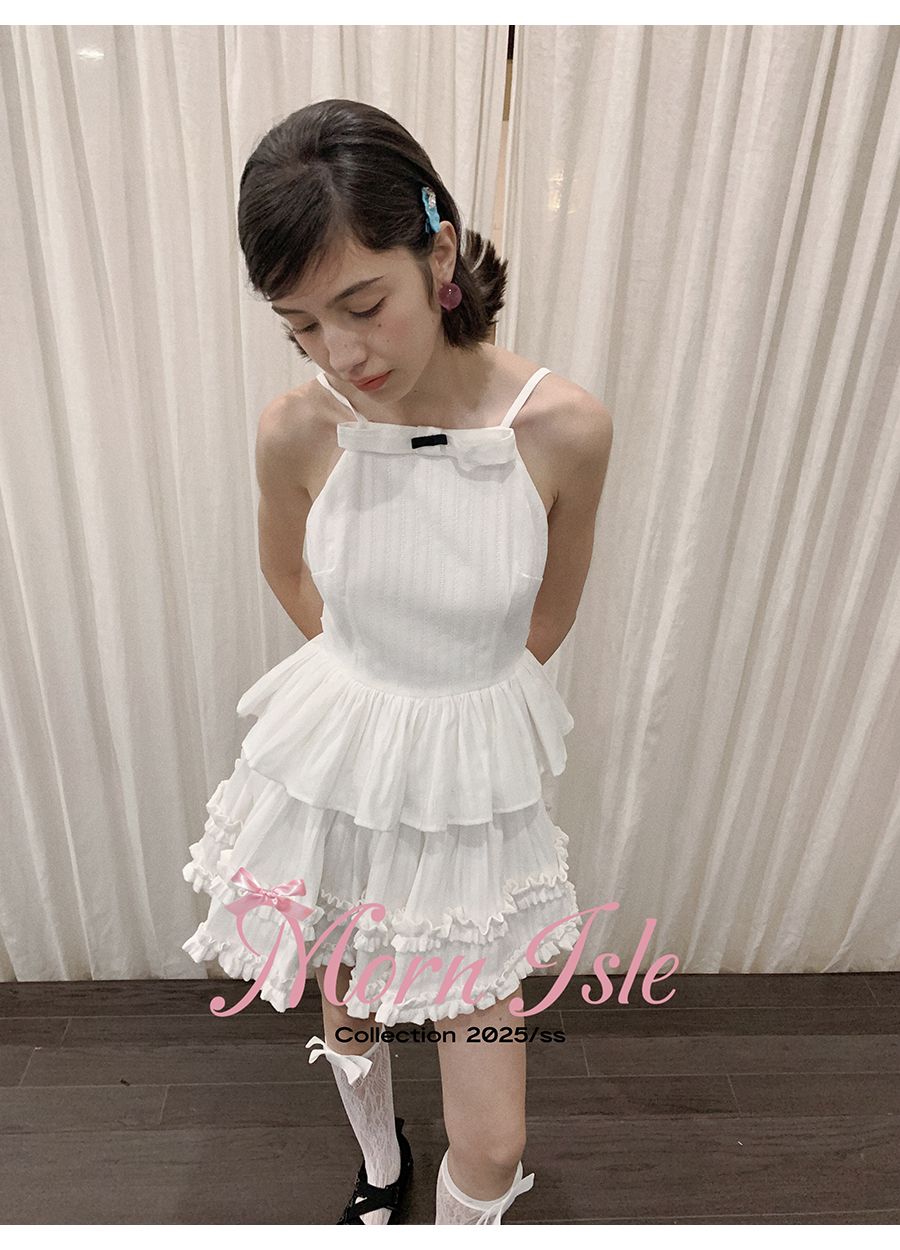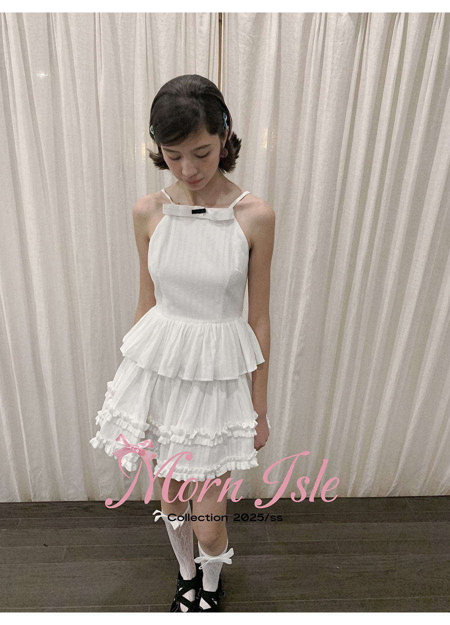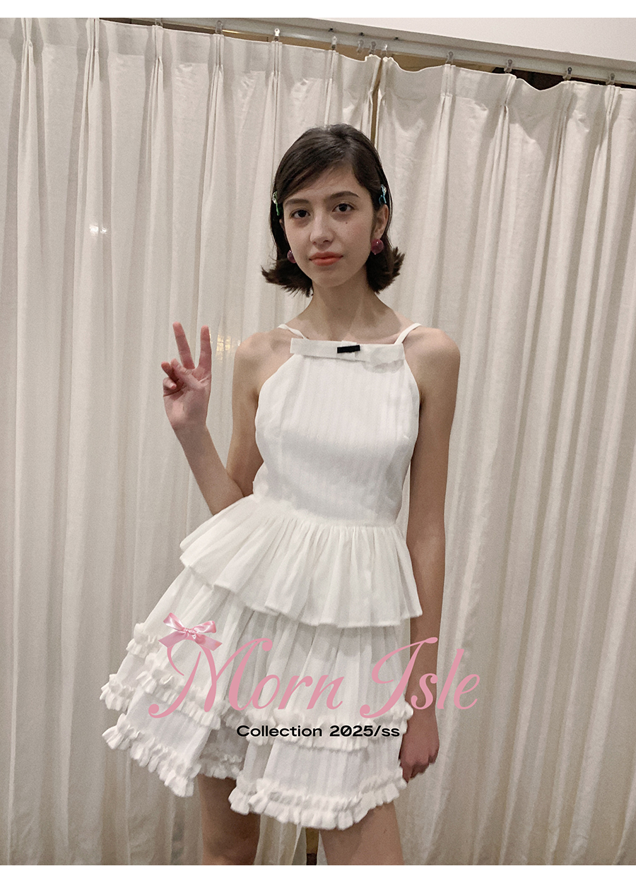 MORN White Jacquard Texture Lotus Leaf Open Back Top