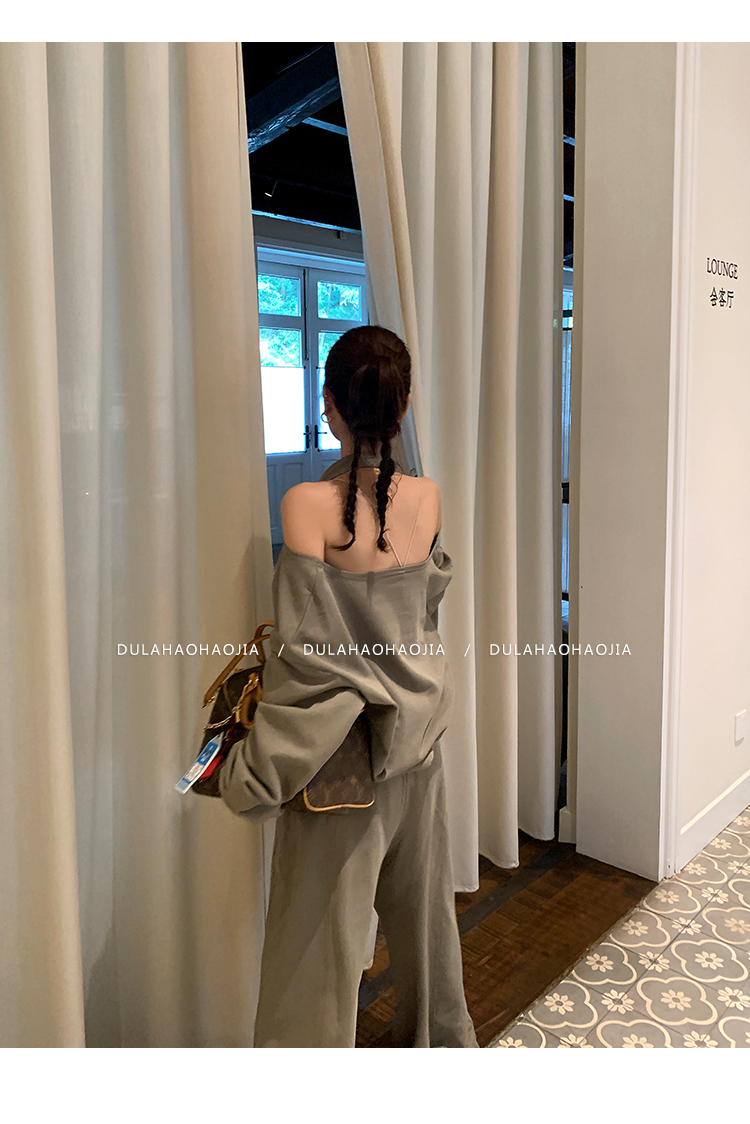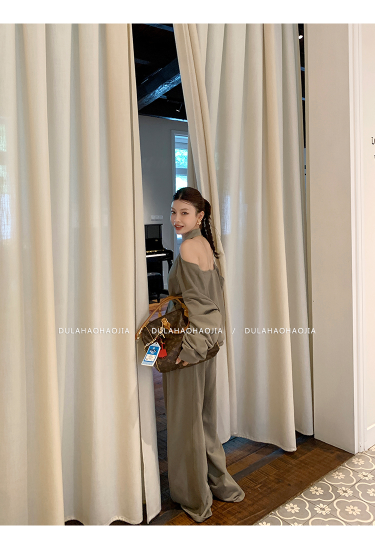 DULA everyday wear halter neck off-shoulder sweatshirt + wide-leg set