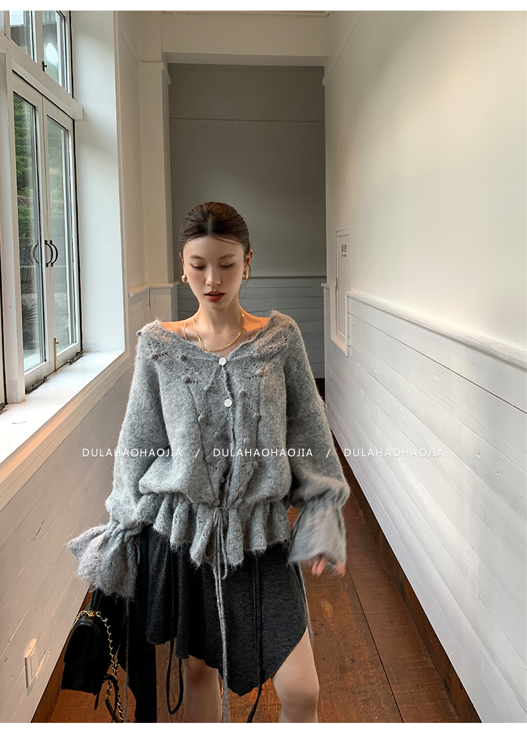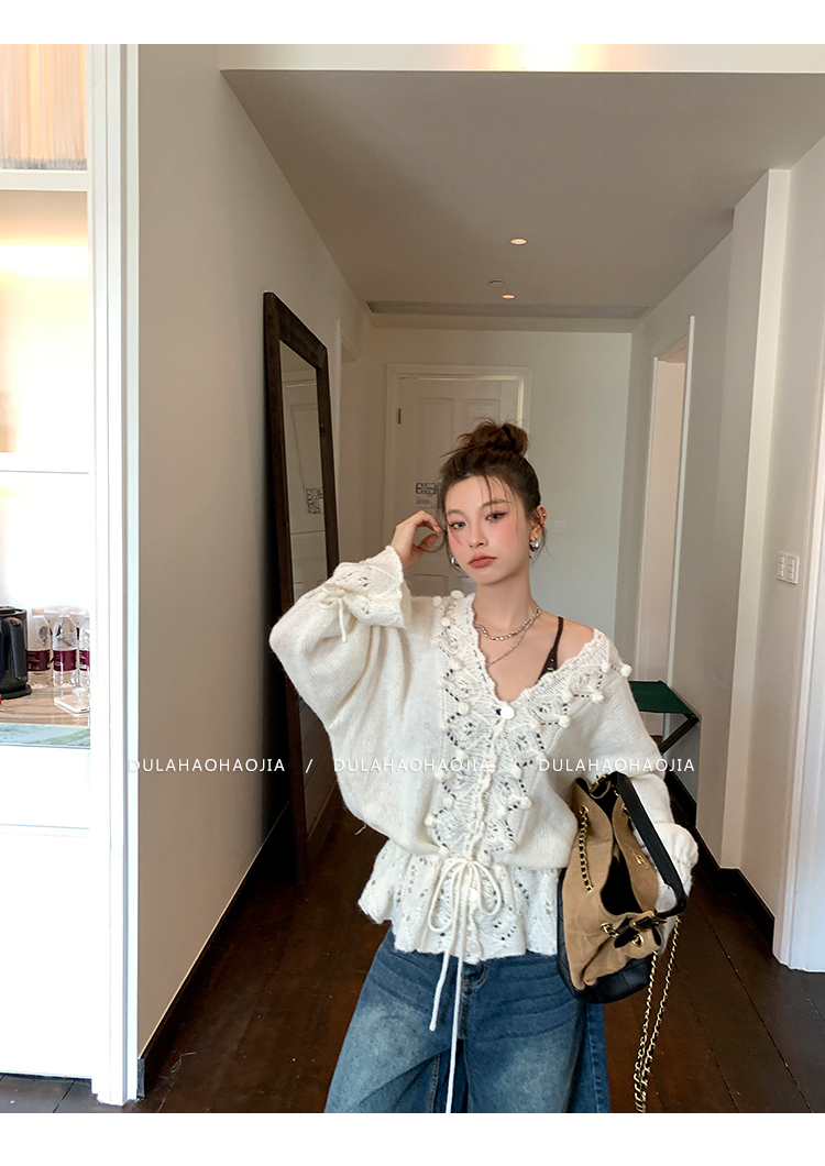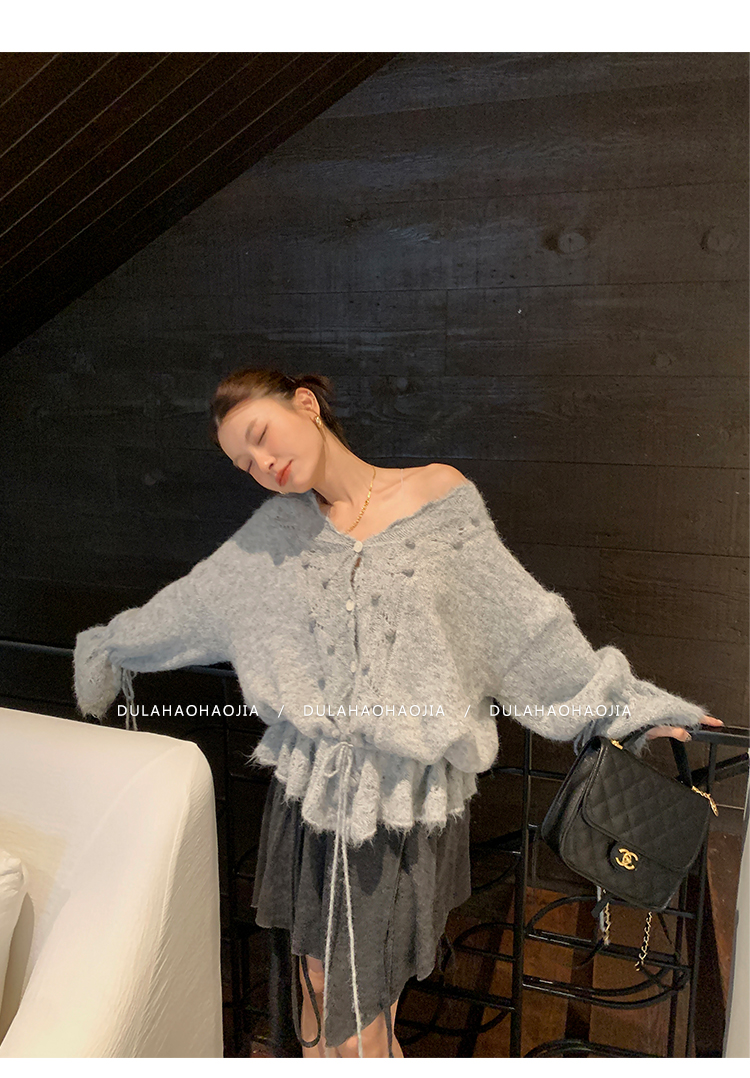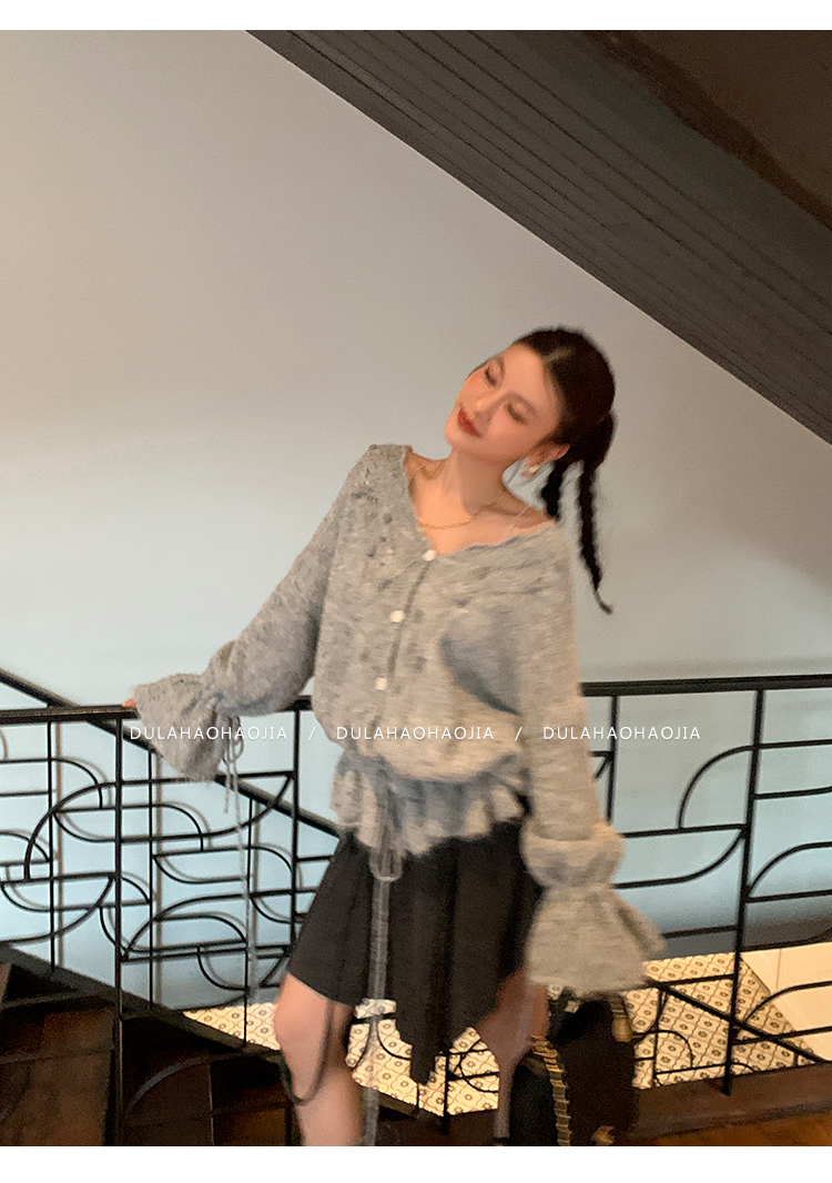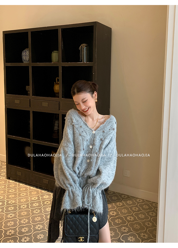 DULA Gentle Catcher Designed drawstring V-neck soft sweaterNEW