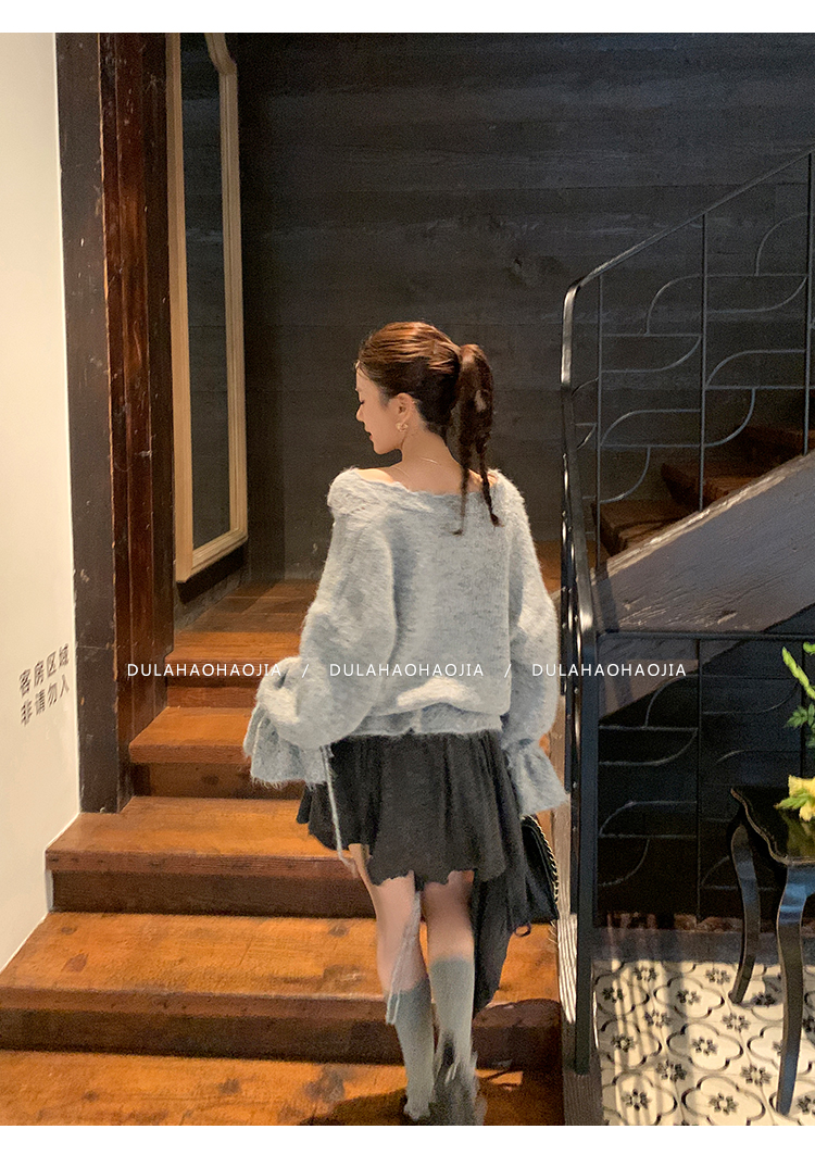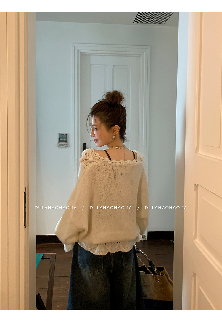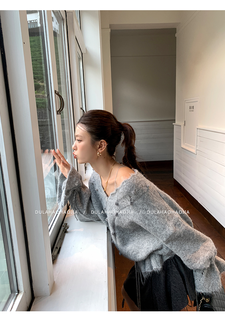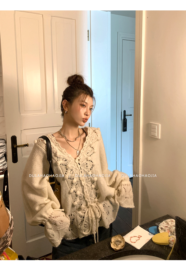 DULA Gentle Catcher Designed drawstring V-neck soft sweaterNEW