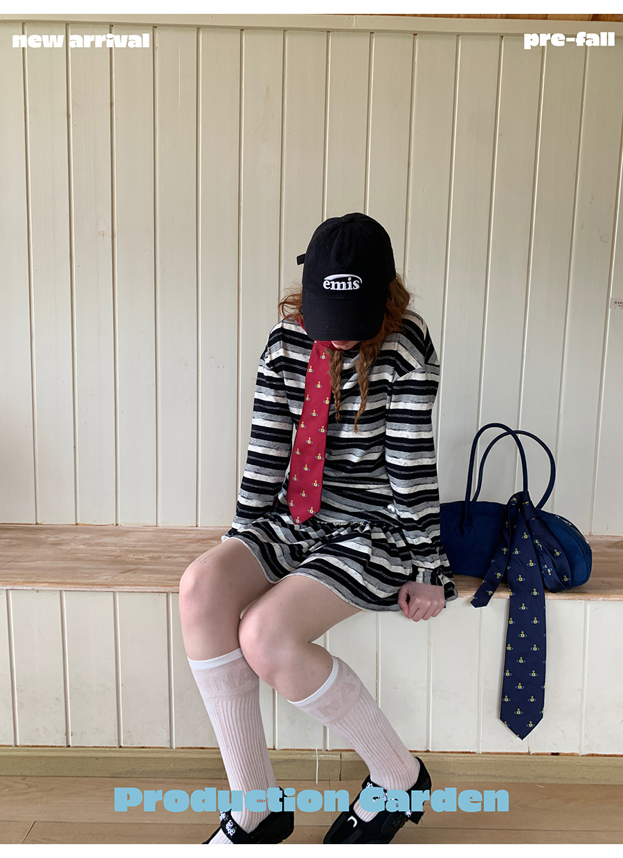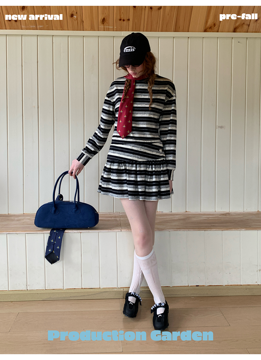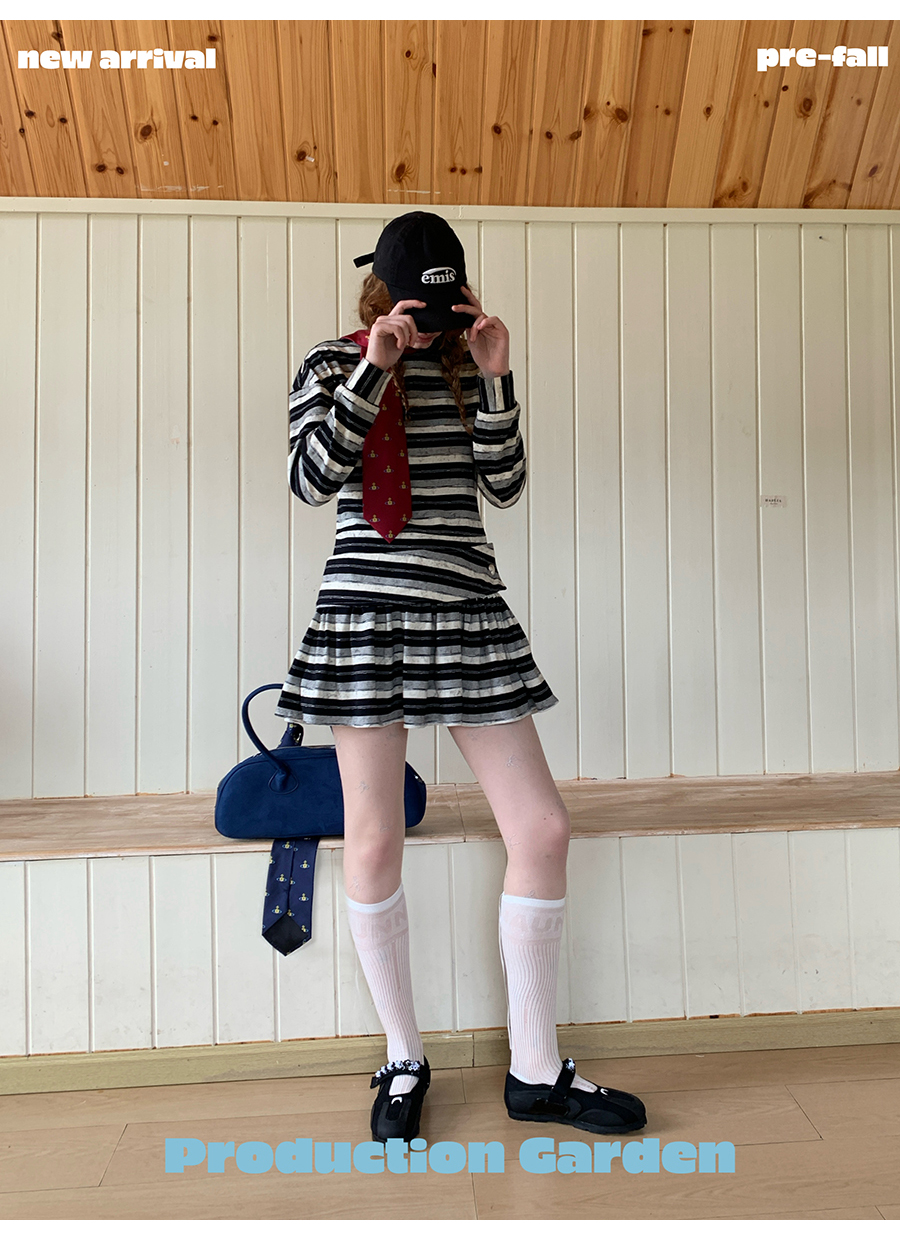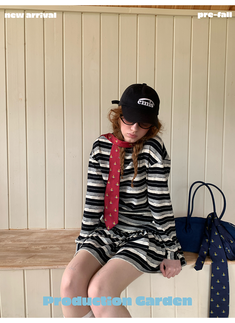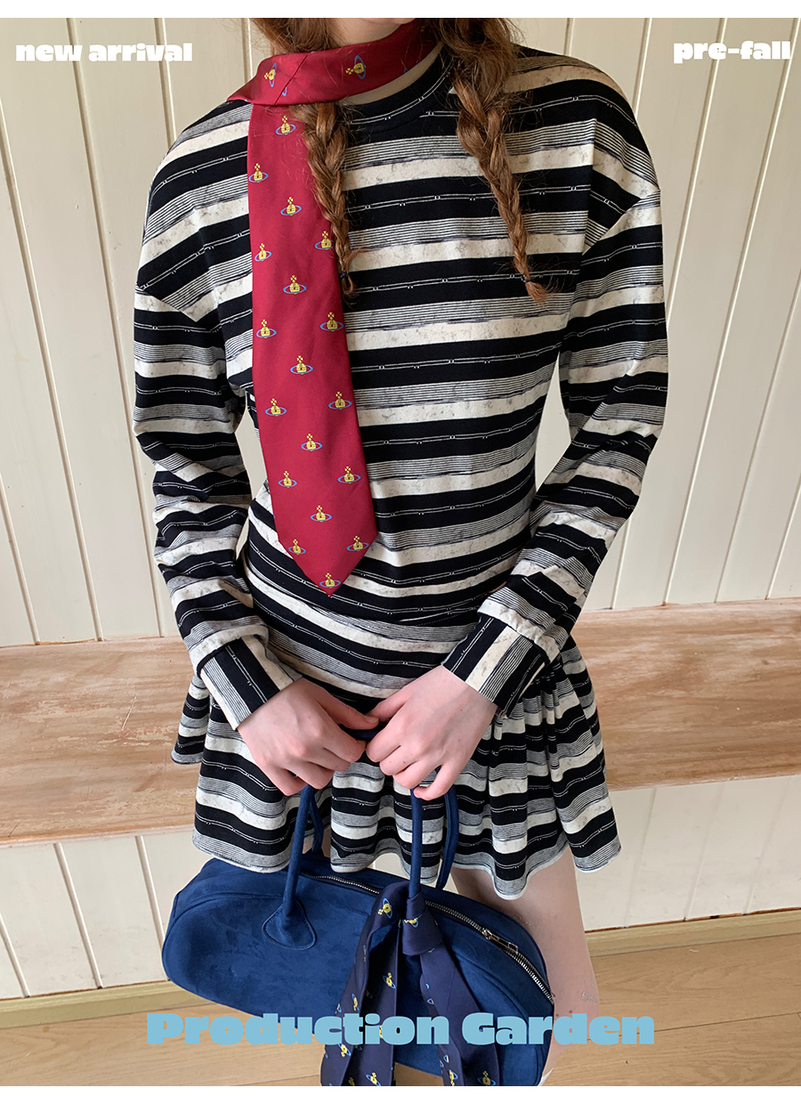 MORN American college contrast striped low waist short skirt dress