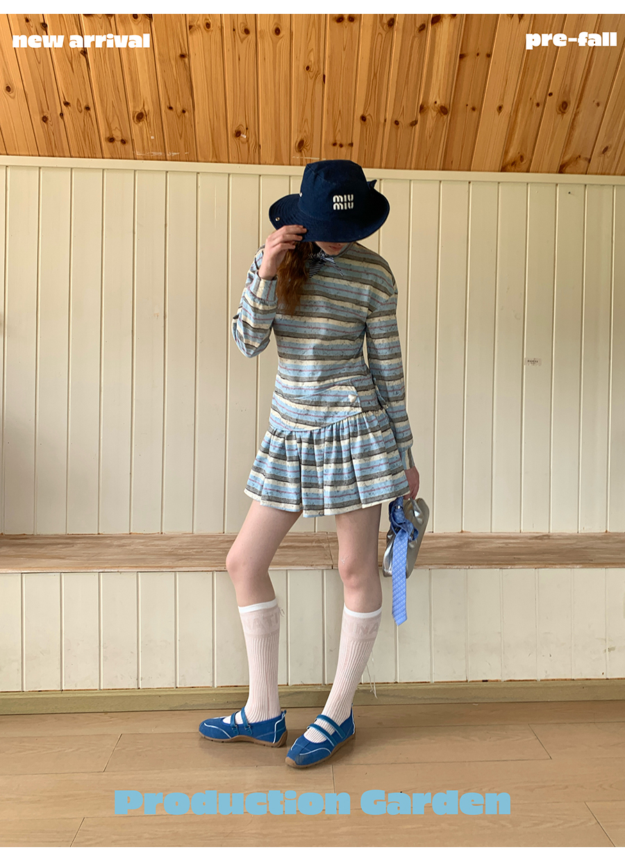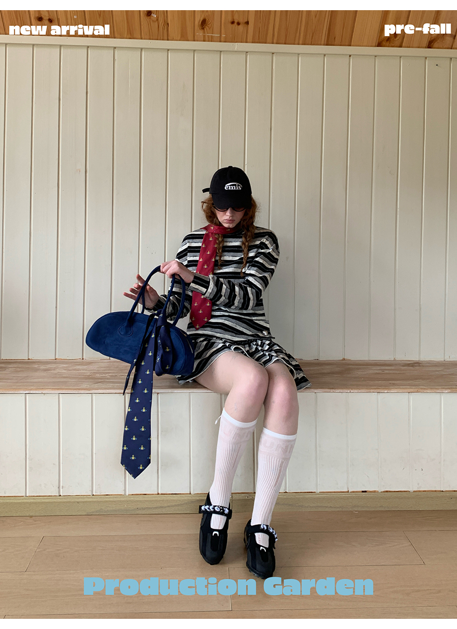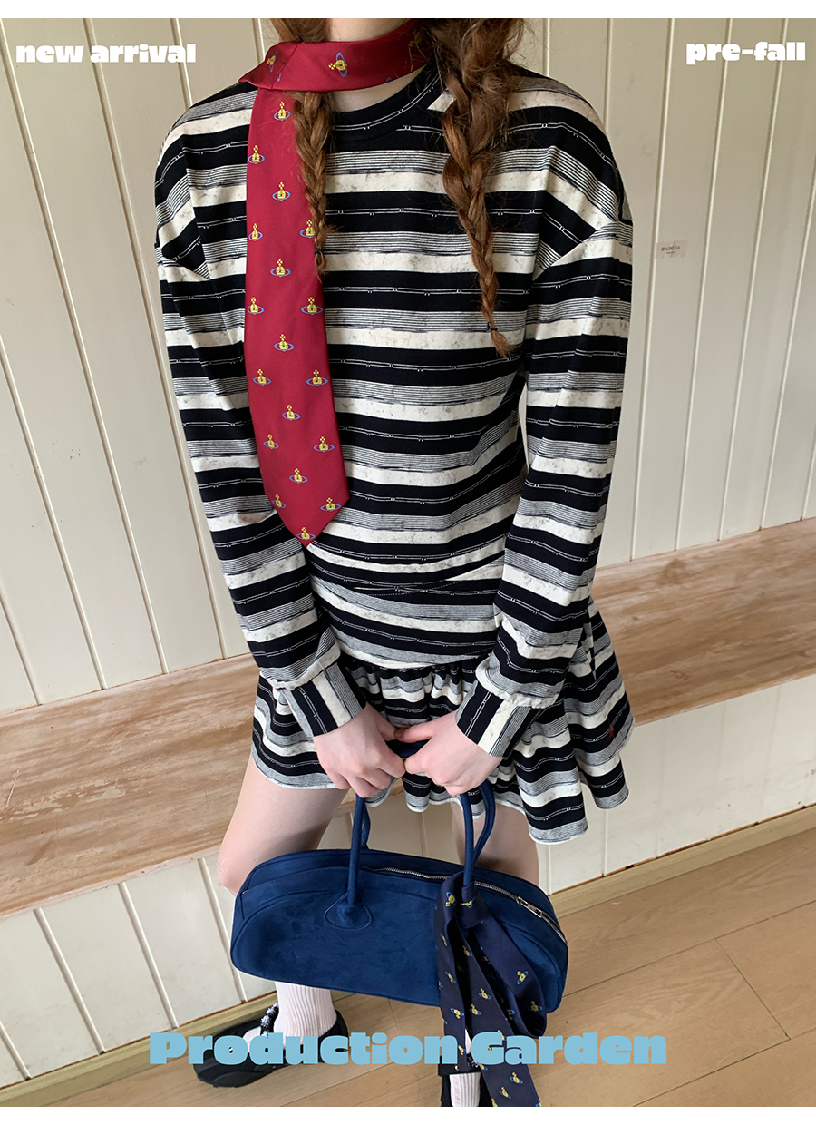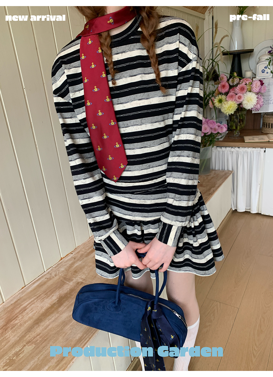 MORN American college contrast striped low waist short skirt dress