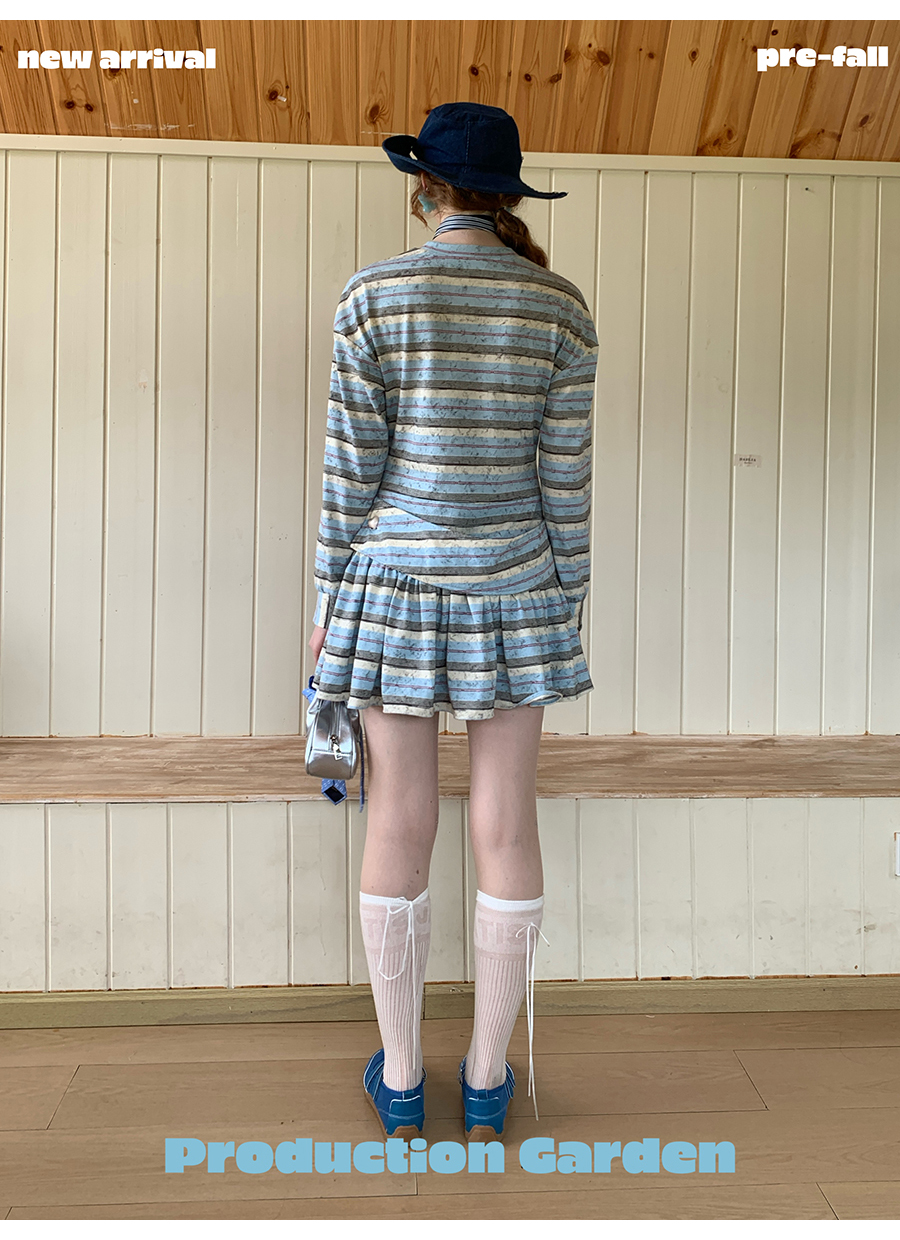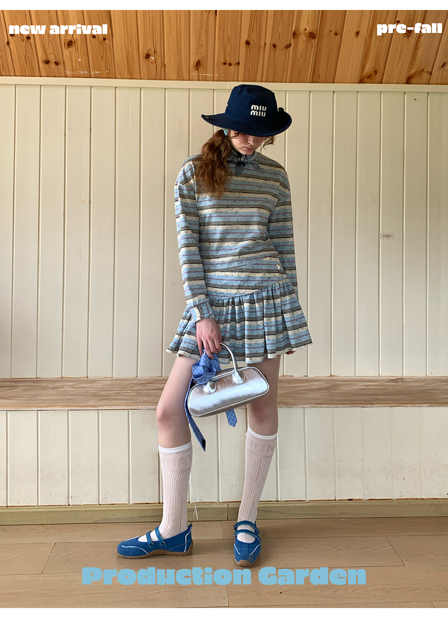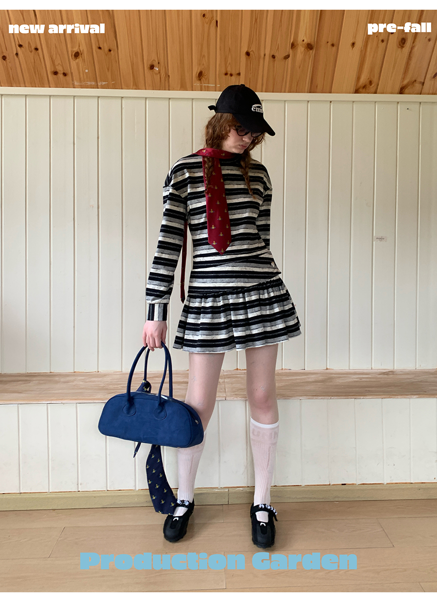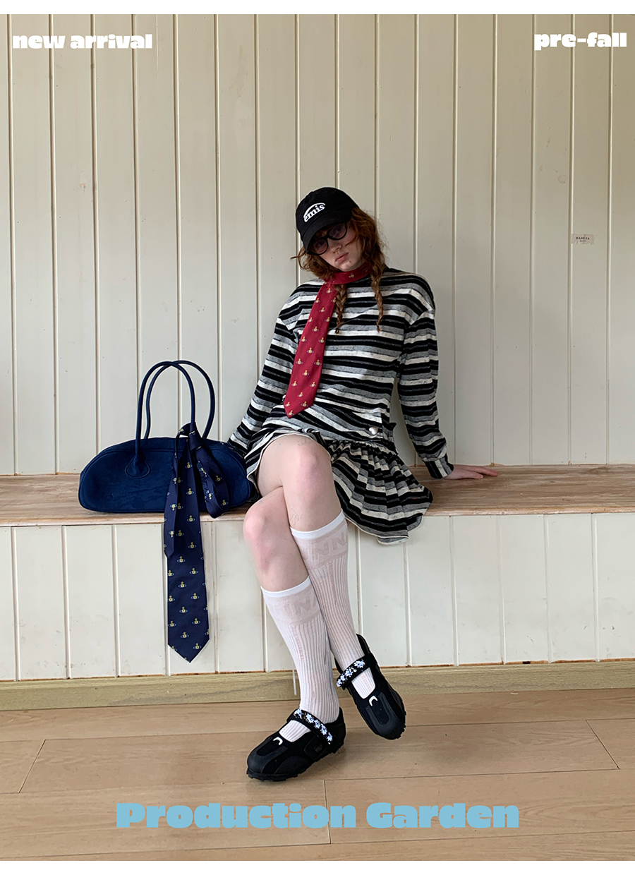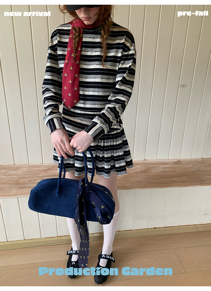 MORN American college contrast striped low waist short skirt dress