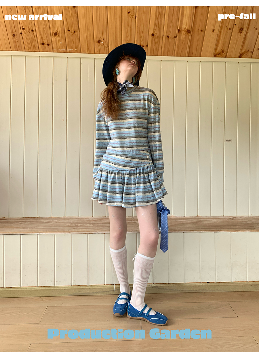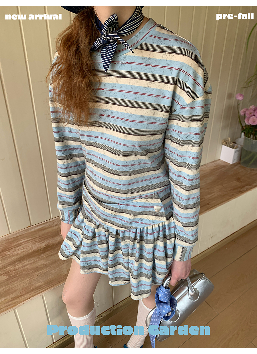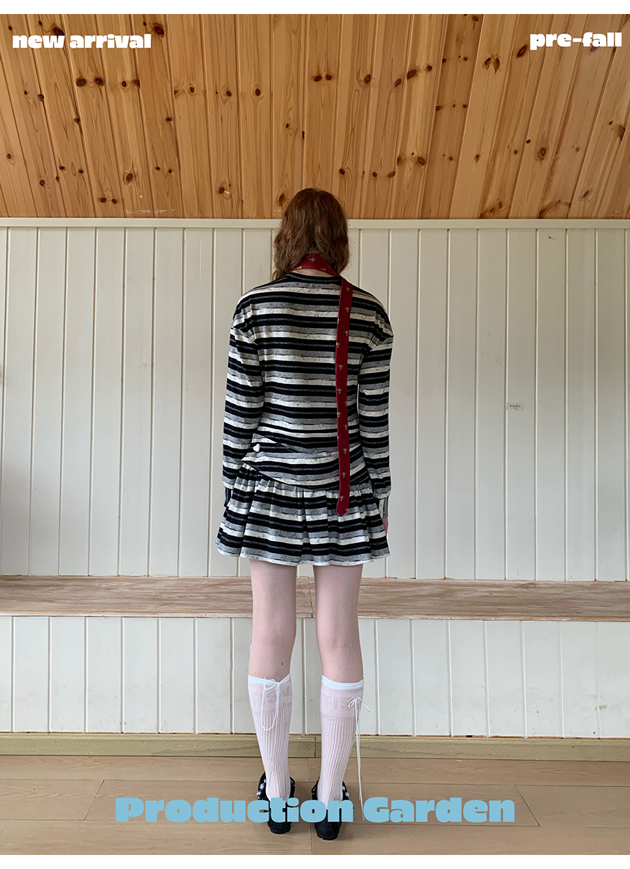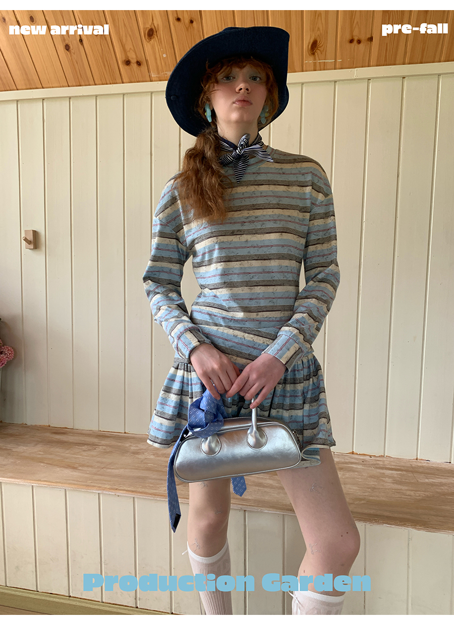 MORN American college contrast striped low waist short skirt dress