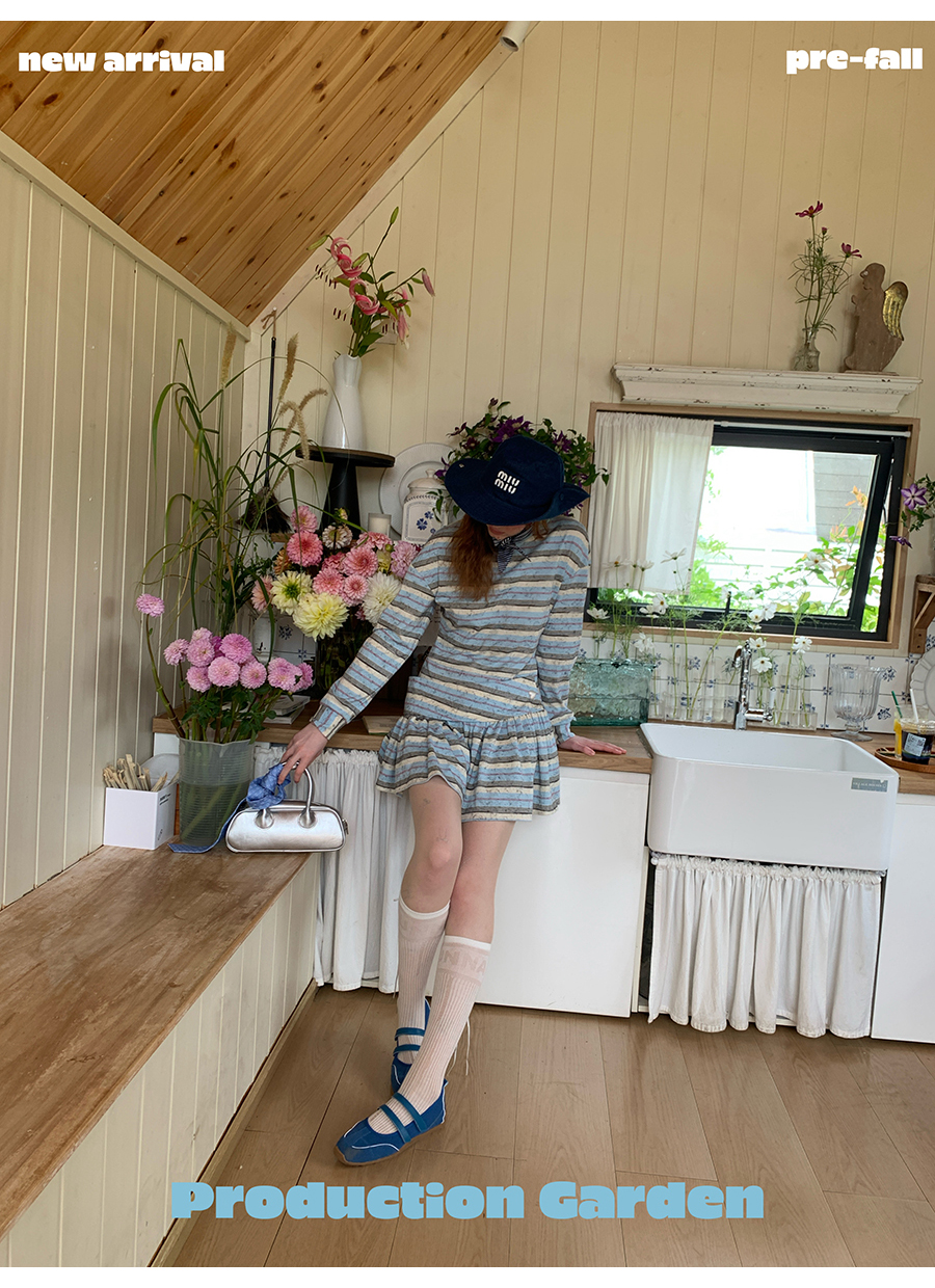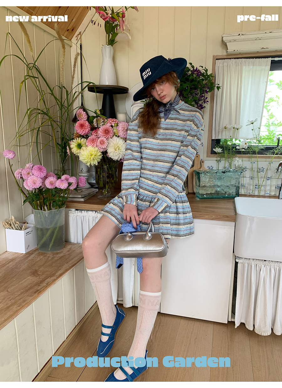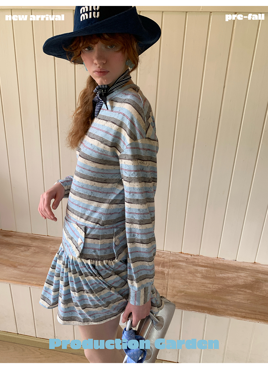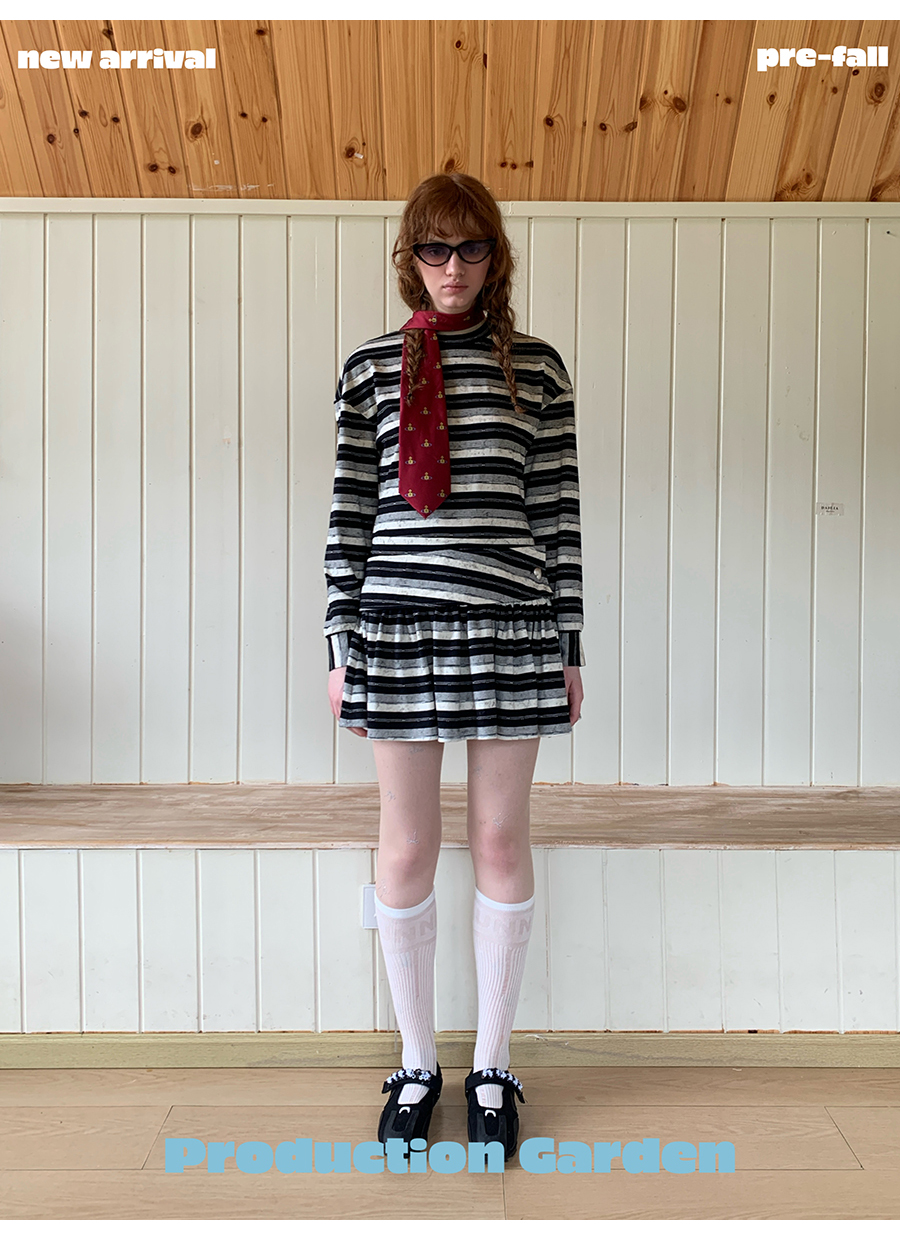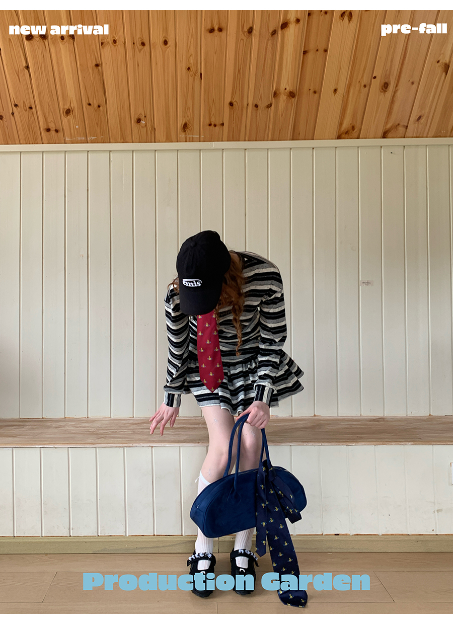 MORN American college contrast striped low waist short skirt dress