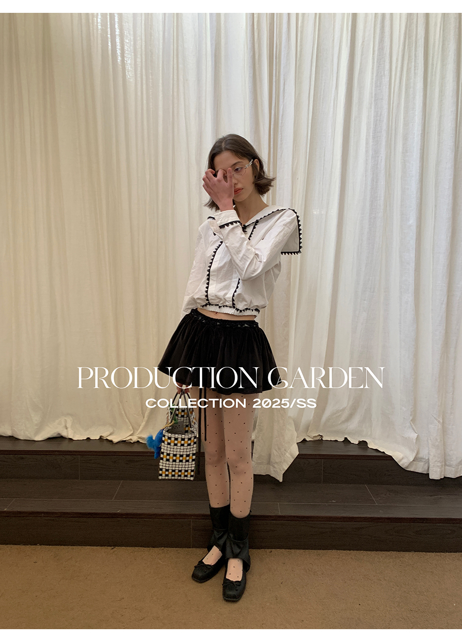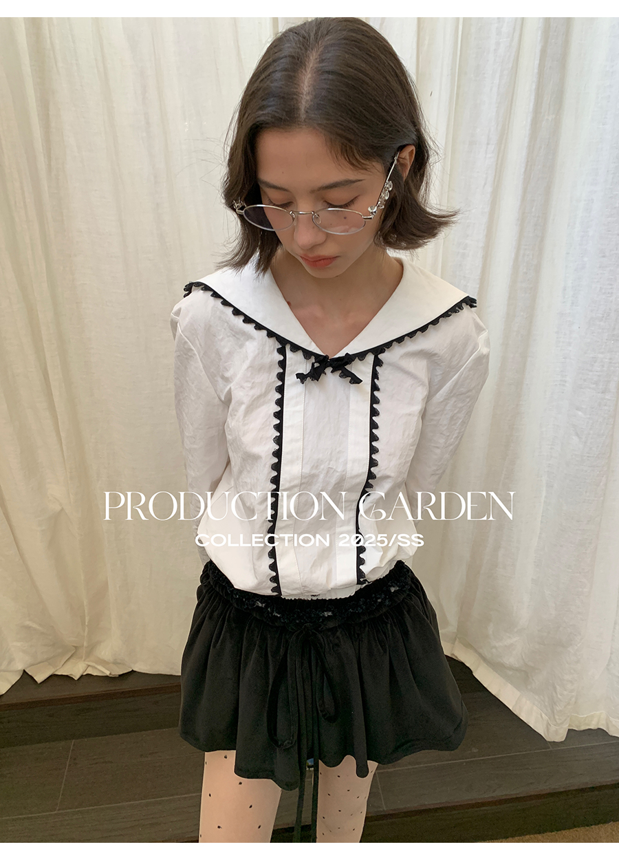 MORN college style stitching ribbon navy collar long-sleeved shirt