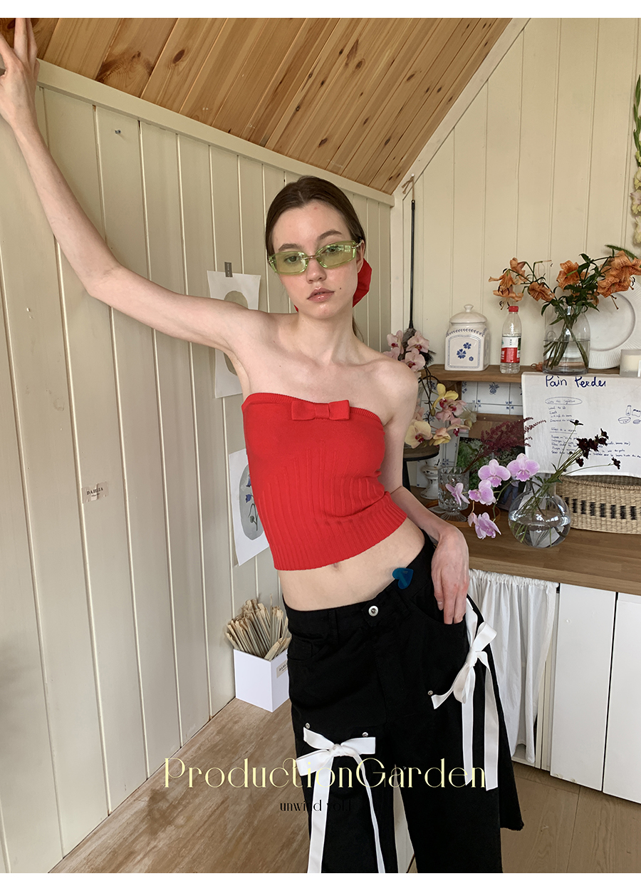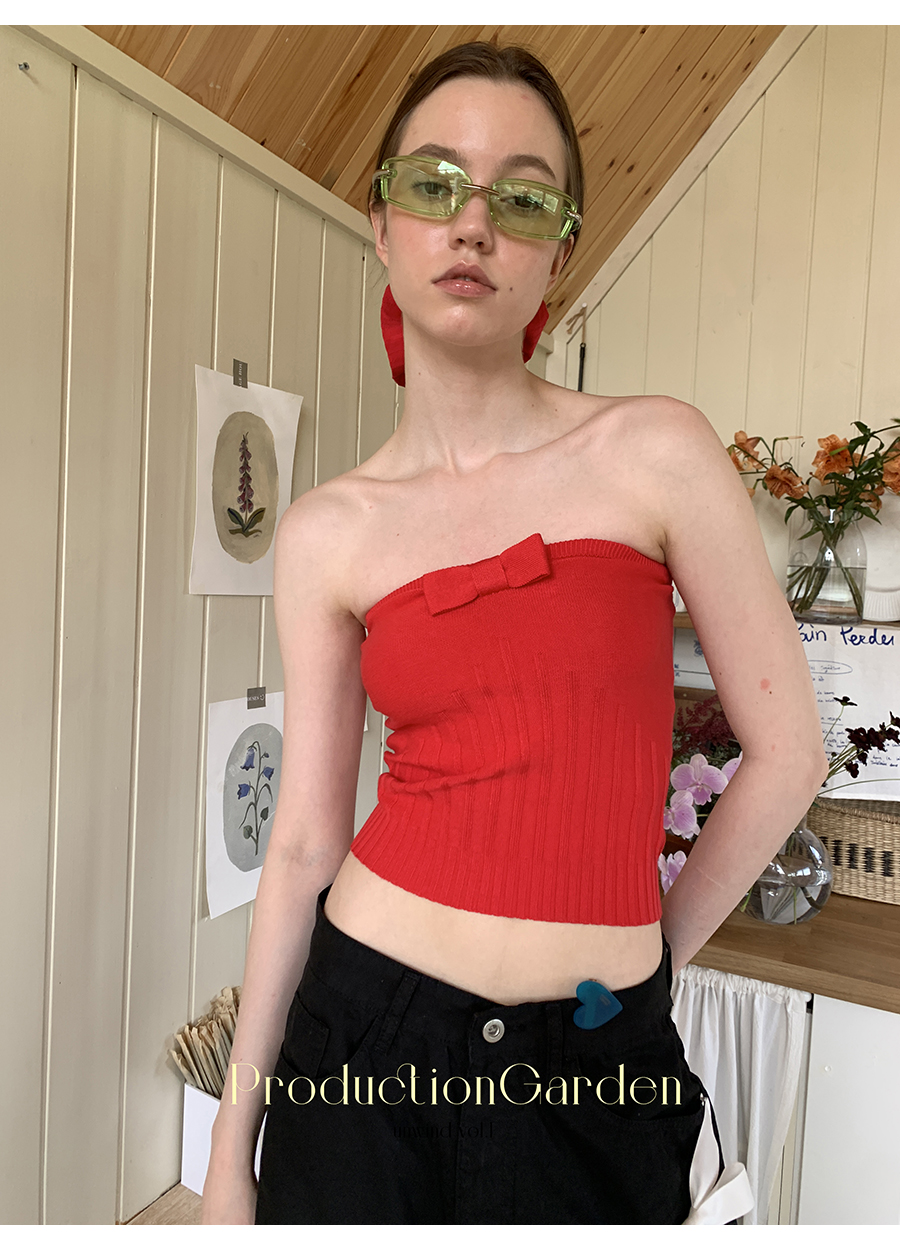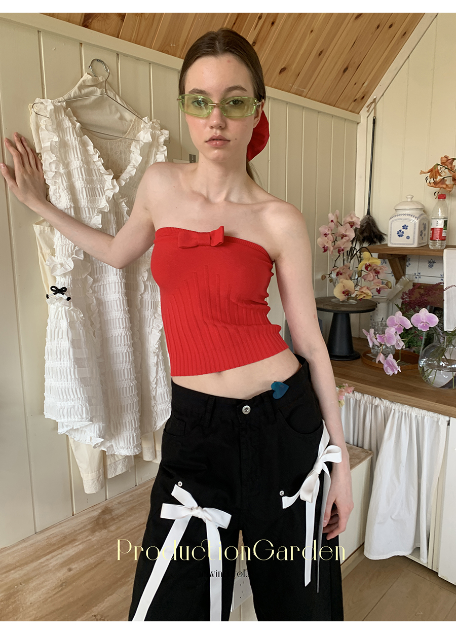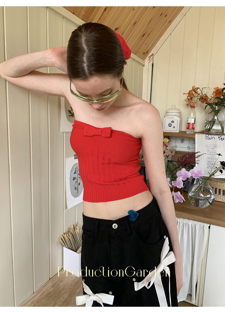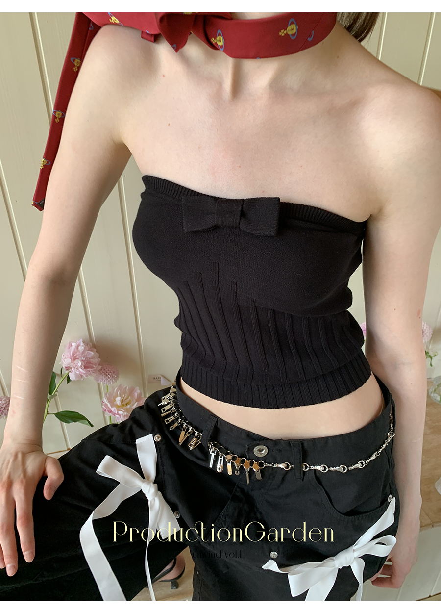MORN sweet spicy pit jacquard bow slim knitted small tube top