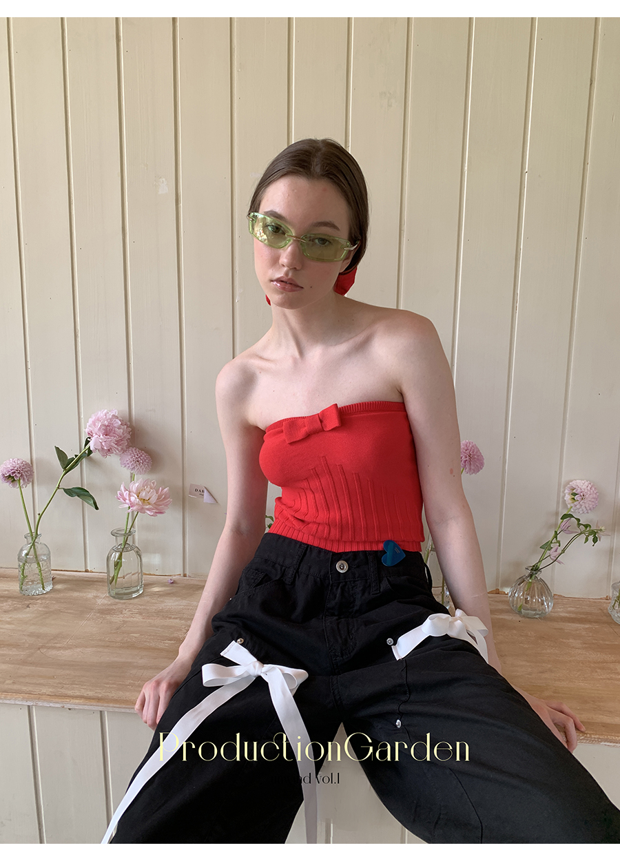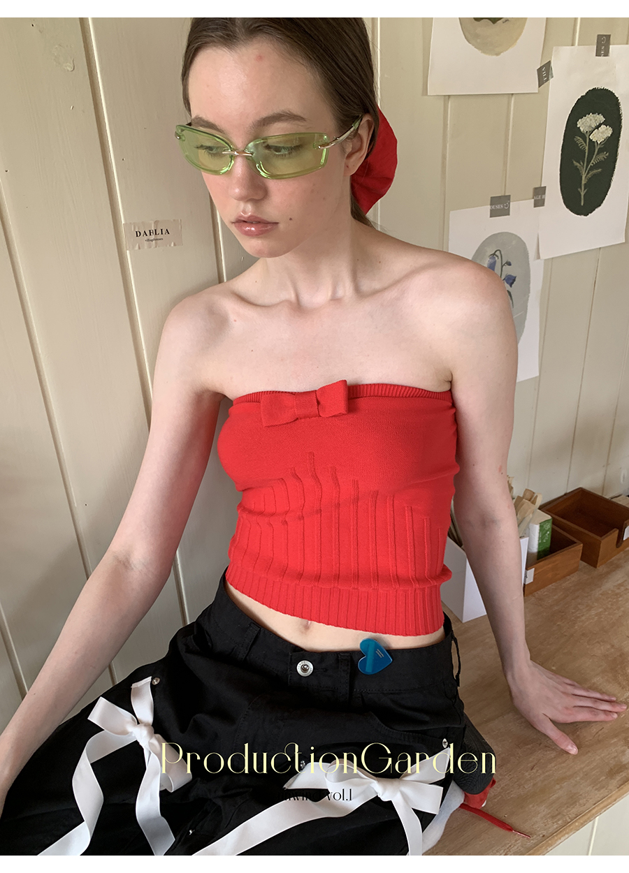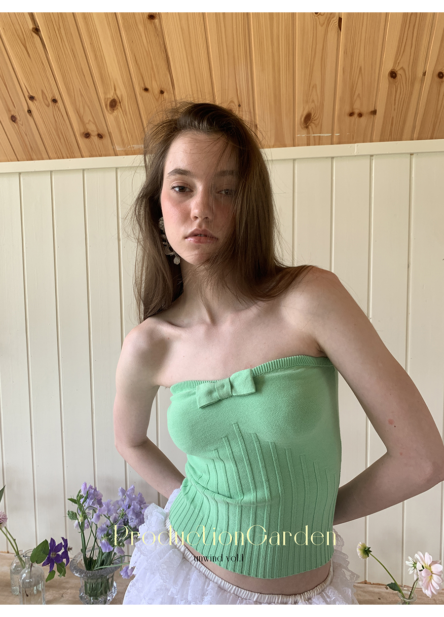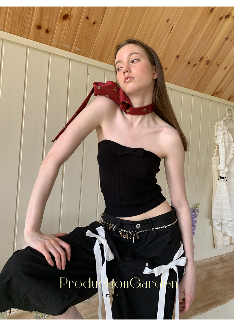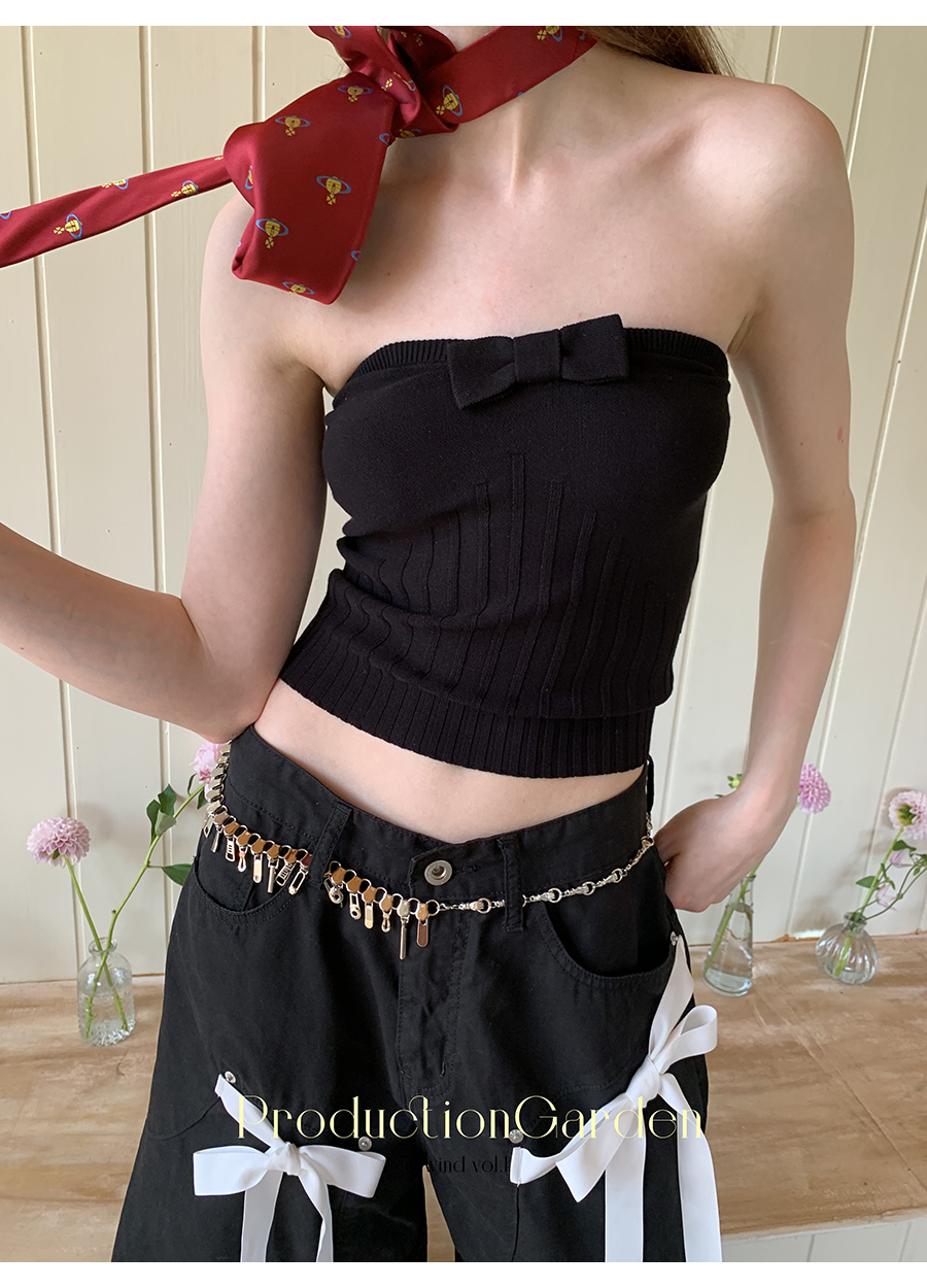 MORN sweet spicy pit jacquard bow slim knitted small tube top
