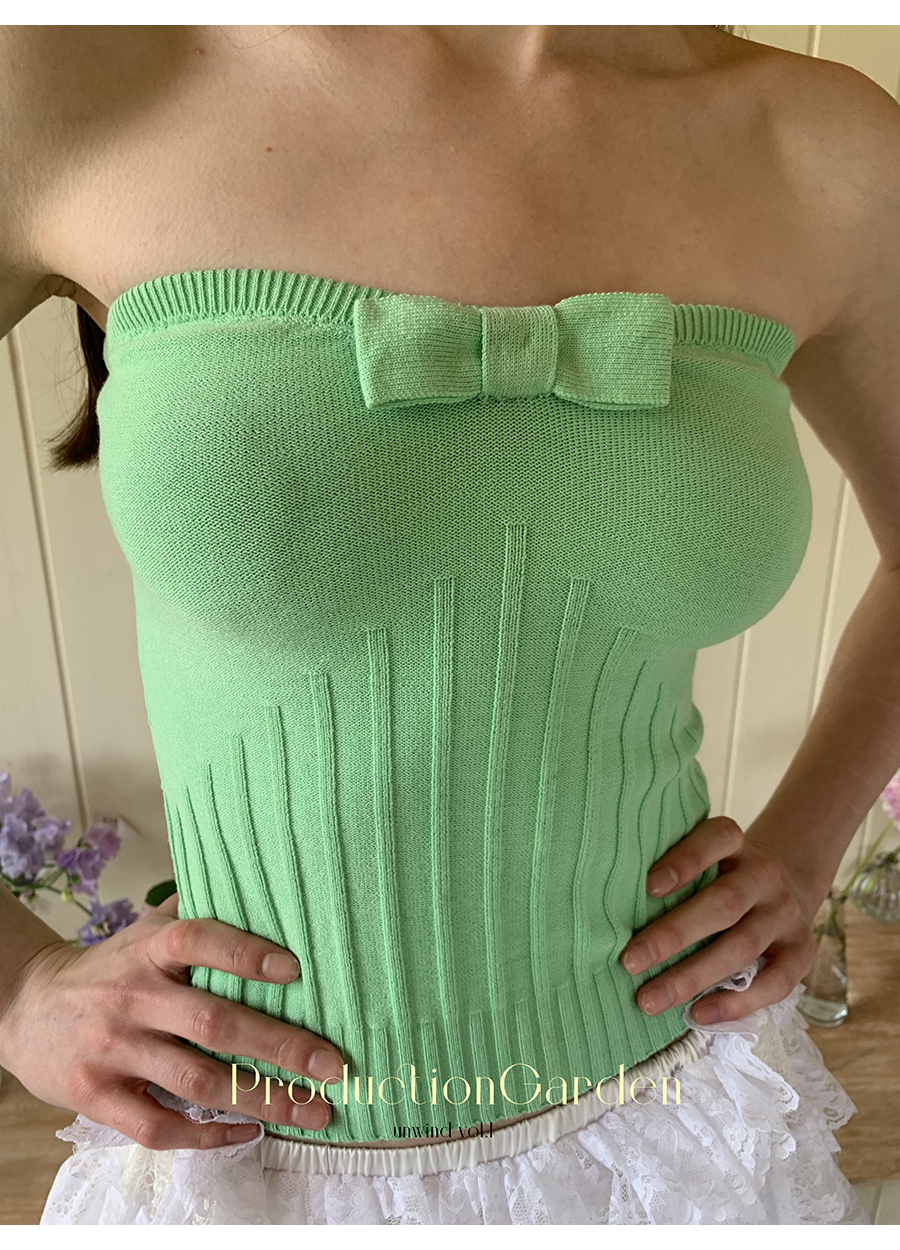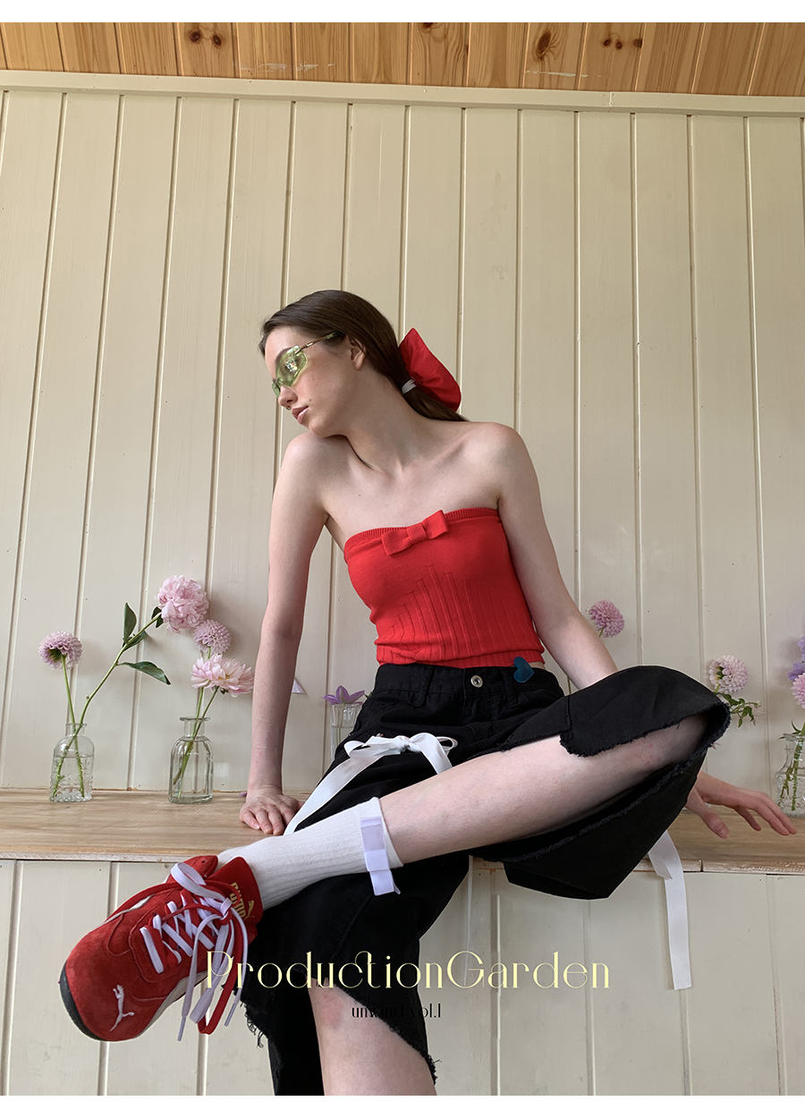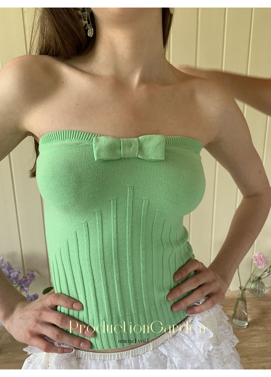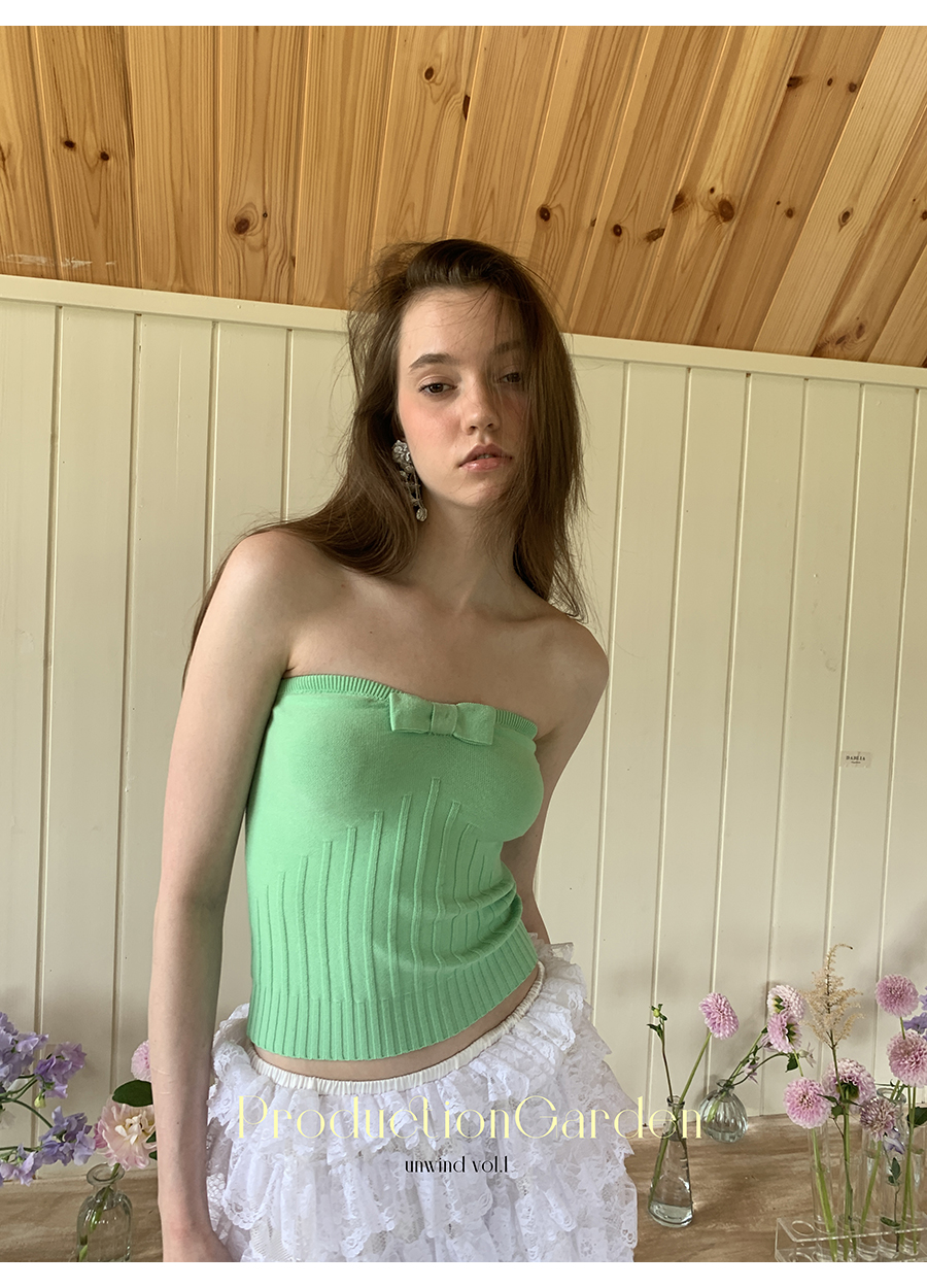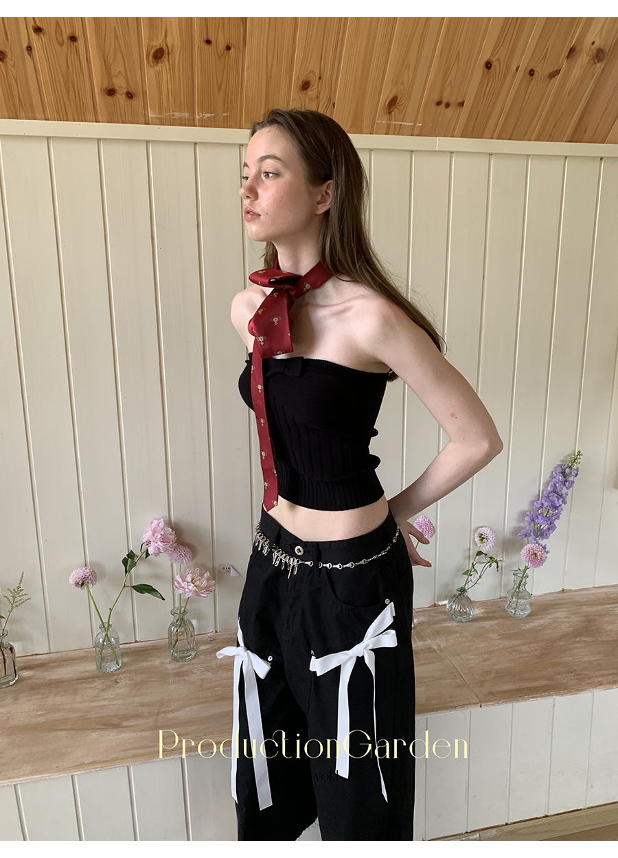 MORN sweet spicy pit jacquard bow slim knitted small tube top