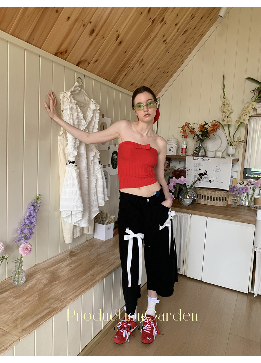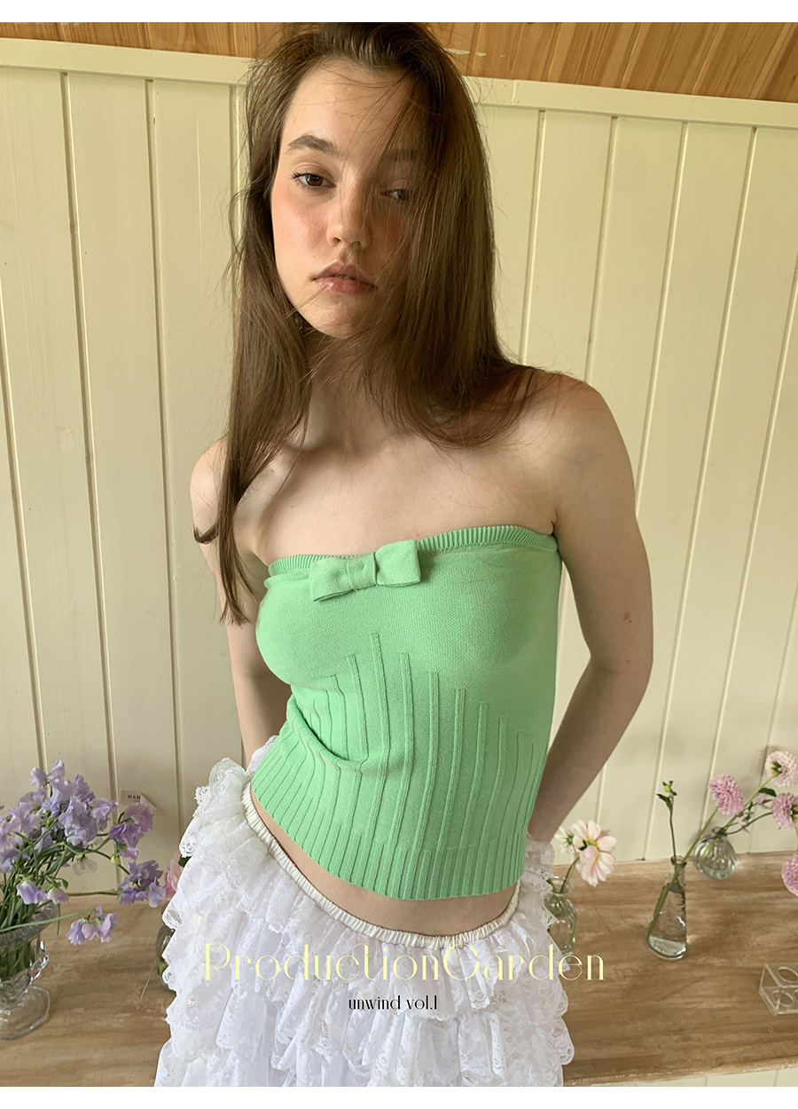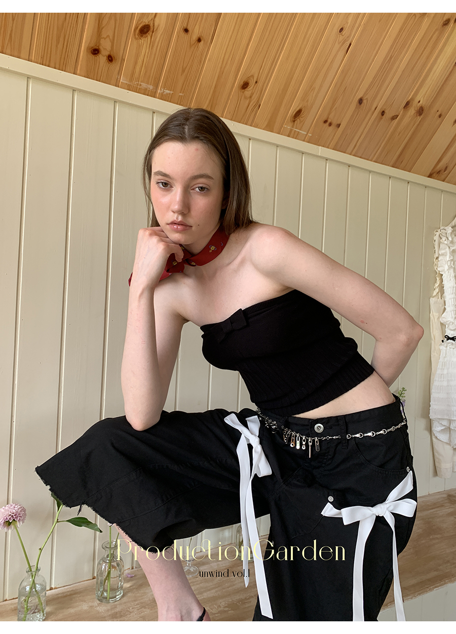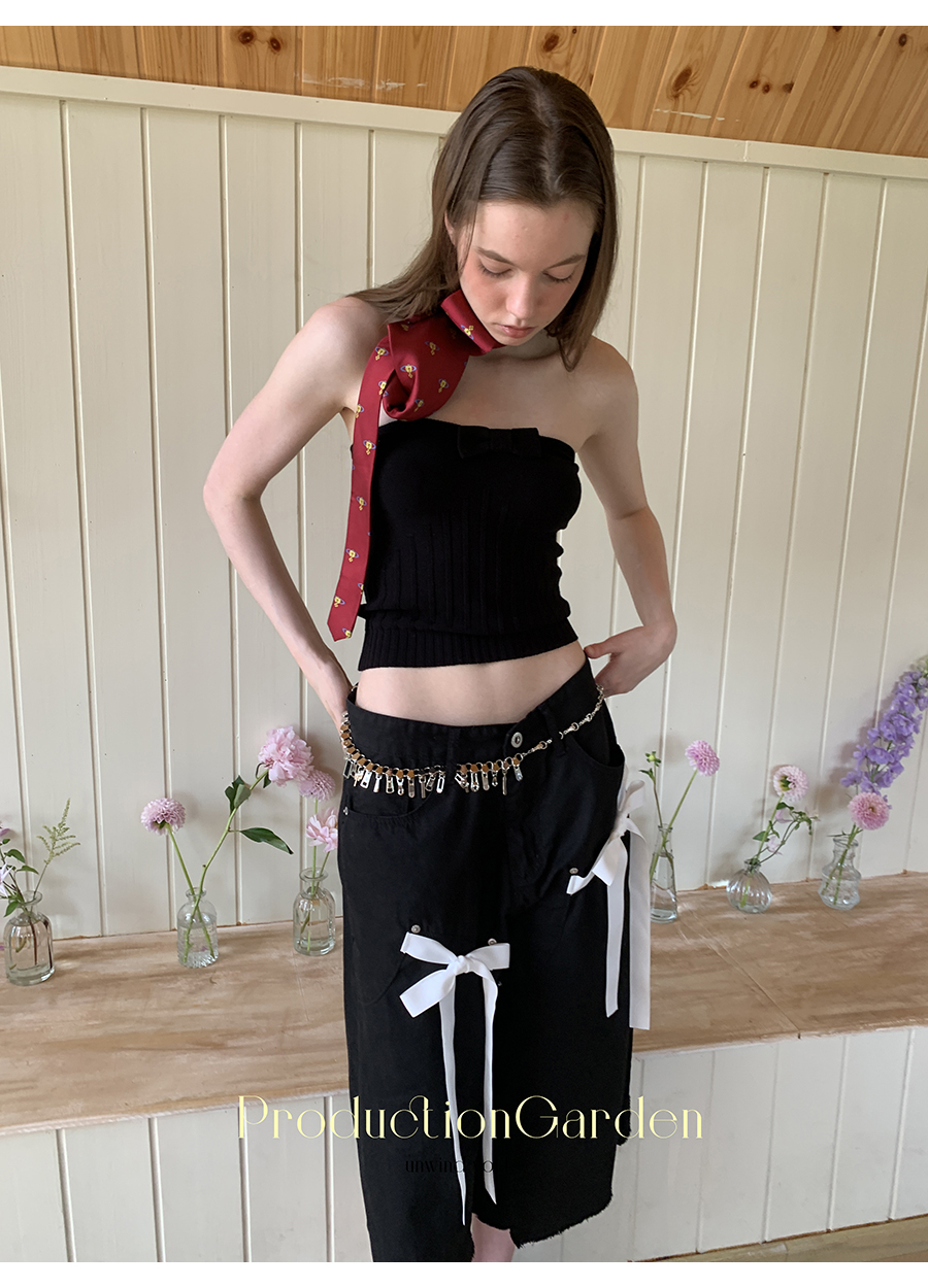 MORN sweet spicy pit jacquard bow slim knitted small tube top